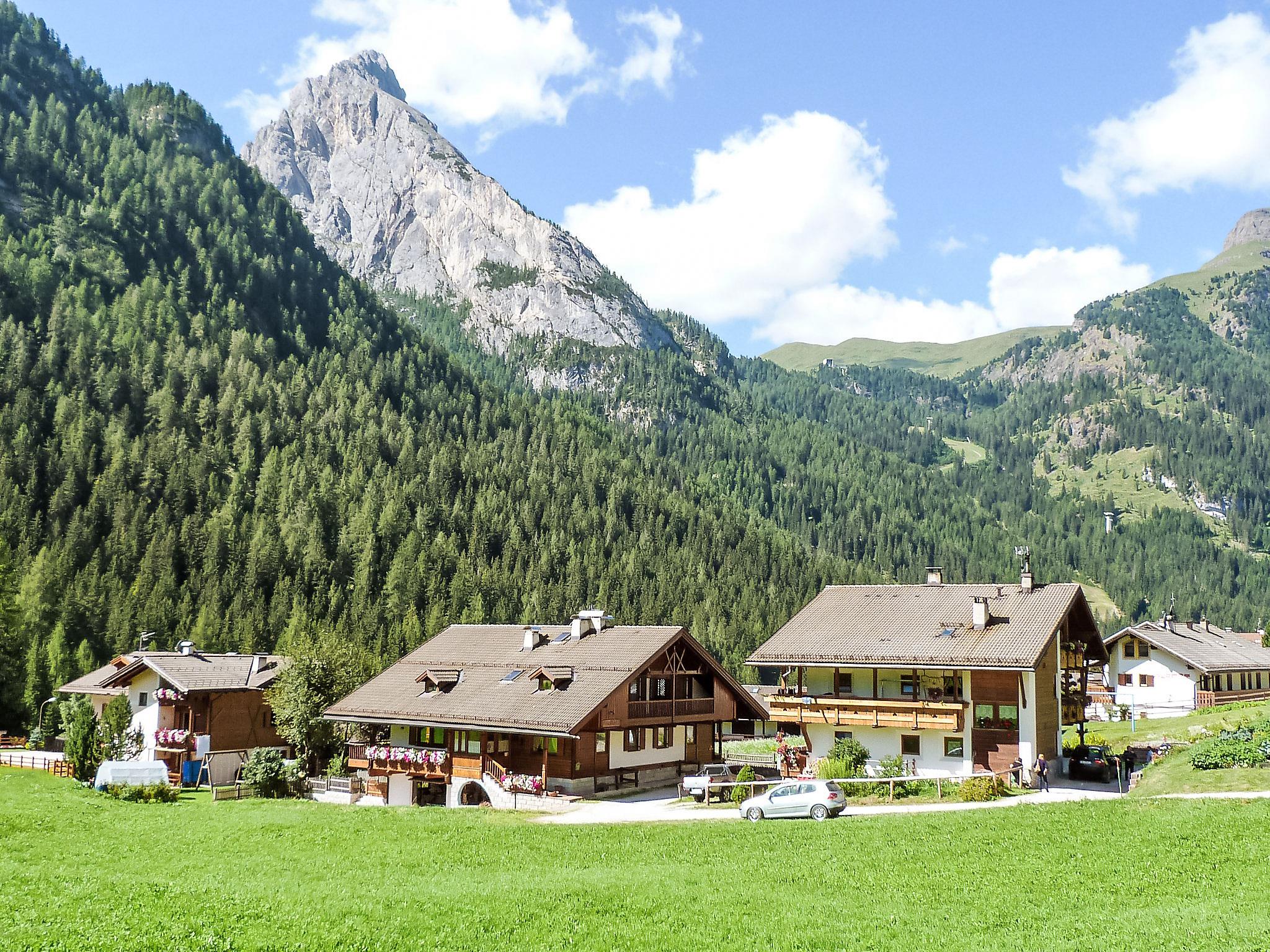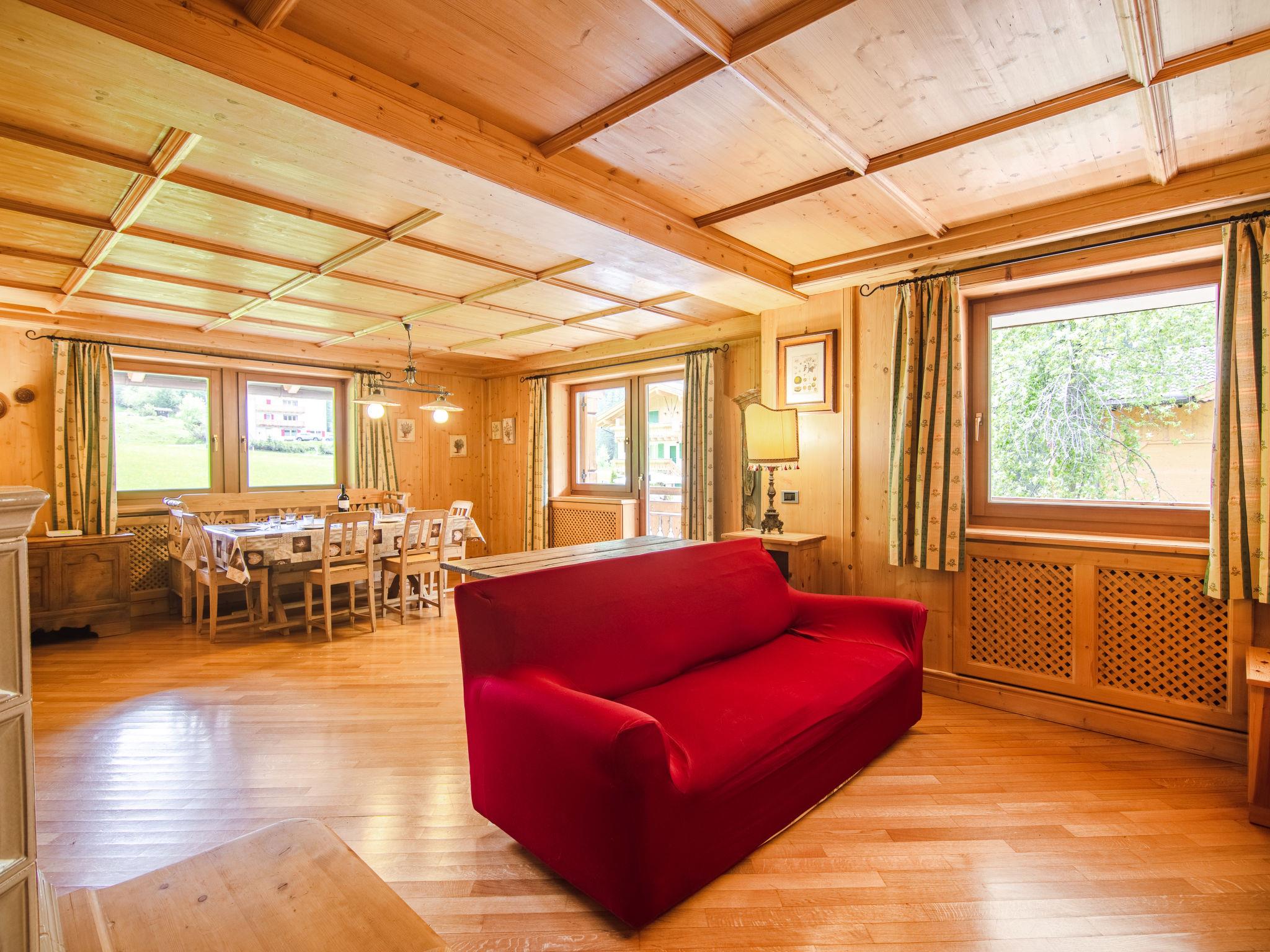 Penia 3 km from Canazei: Child friendly, comfortable chalet "Cesa Galadriel", 1'555 m a.s.l., 2 storeys. 3 apartments in the property. In the hamlet Penia, 1.5 km from the centre of Alba, 3.5 km from the centre of Canazei, in a quiet position, 1 km from the skiing area, south-west facing position. In the house: central heating system, heating available only from 01.Dec. - 01.May.. Parking (limited number of spaces) on the premises, public parking 500 m on the road. Shop 300 m, grocery 100 m, restaurant, bus stop 100 m. Mountain railway 1 km. Please note: car recommended. In case of good snow conditions, the house is accessible on skis.