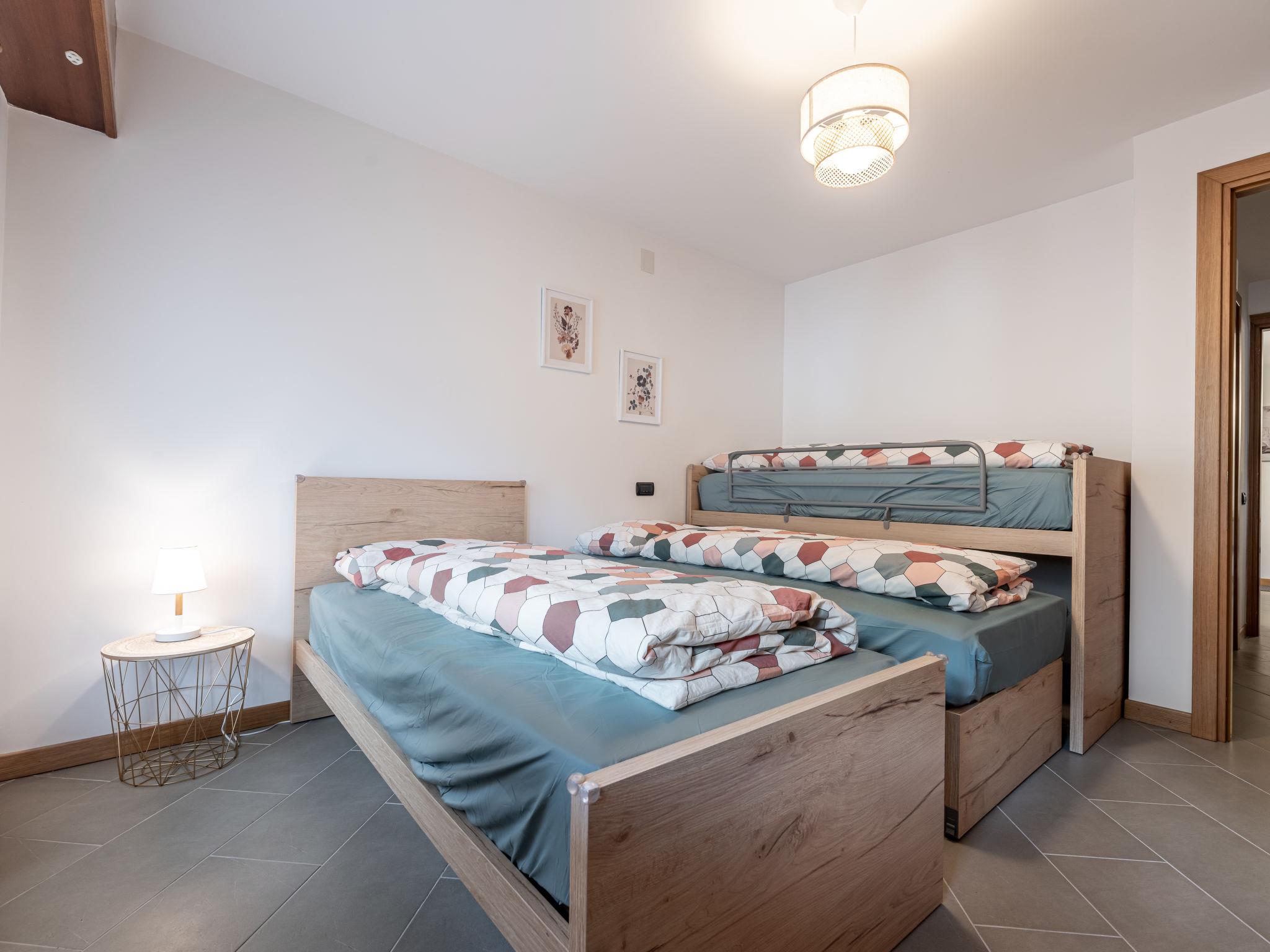 "Condominio Giulia", 3-room apartment on 2nd floor, east facing position. Fully renovated in 2022, very practical and comfortable furnishings: living/dining room with kitchen corner, bath/bidet/WC, hydro massage bath, TV and flat screen. Exit to the balcony. 1 double bedroom with shower/bidet/WC. 1 room with 2 beds, 1 pull-out bed and TV. Kitchenette (oven, dishwasher, 4 induction hot plates, toaster, kettle, microwave, electric coffee machine). Balcony. Balcony furniture. View of the mountains and the valley. Facilities: washing machine, hair dryer. Internet (WiFi). Parking space n 27 (1 car), height 245 cm. Please note: suitable for families. Non-smokers only. Fire extinguisher. IT022039C2FZVB87S4