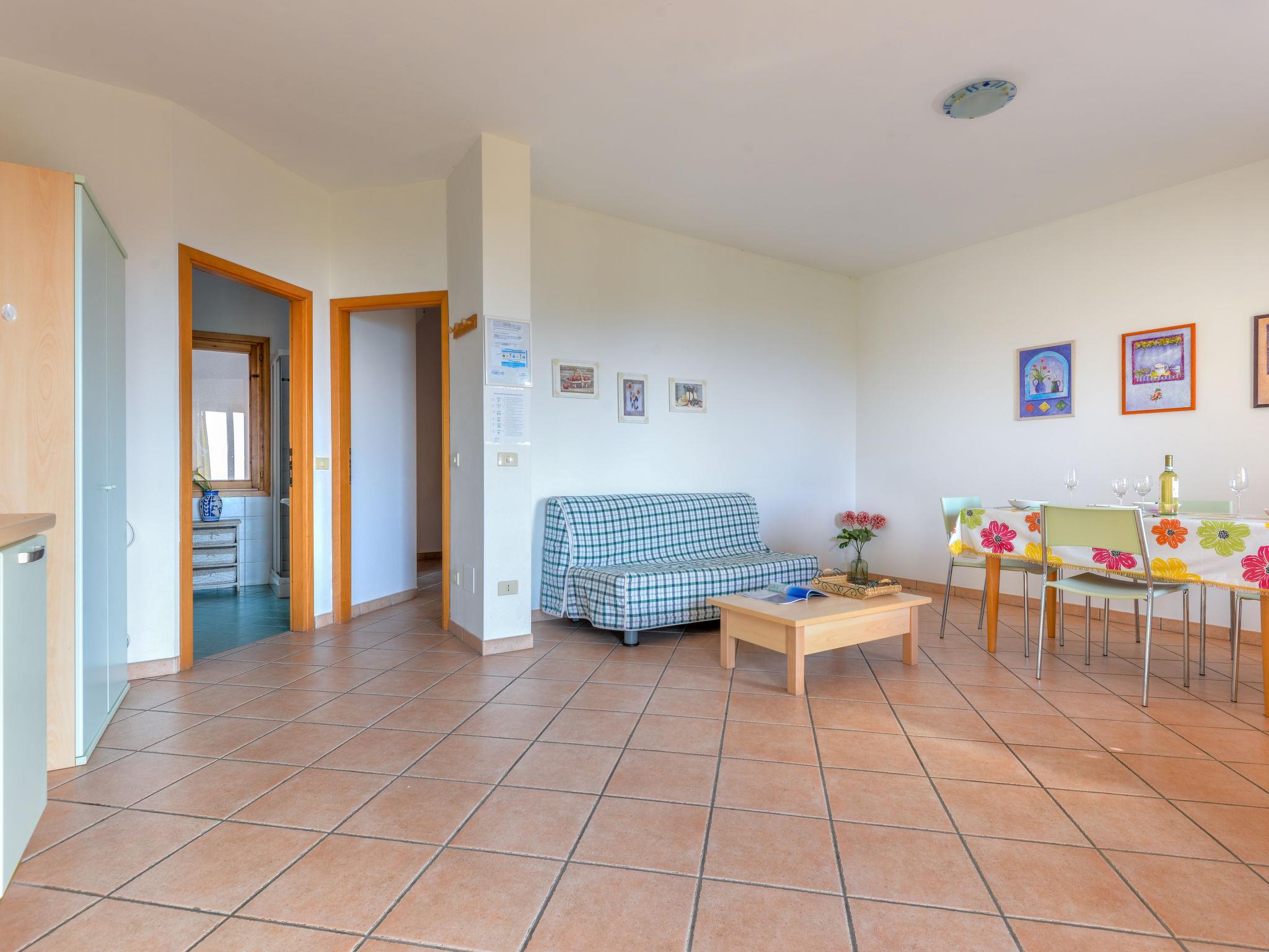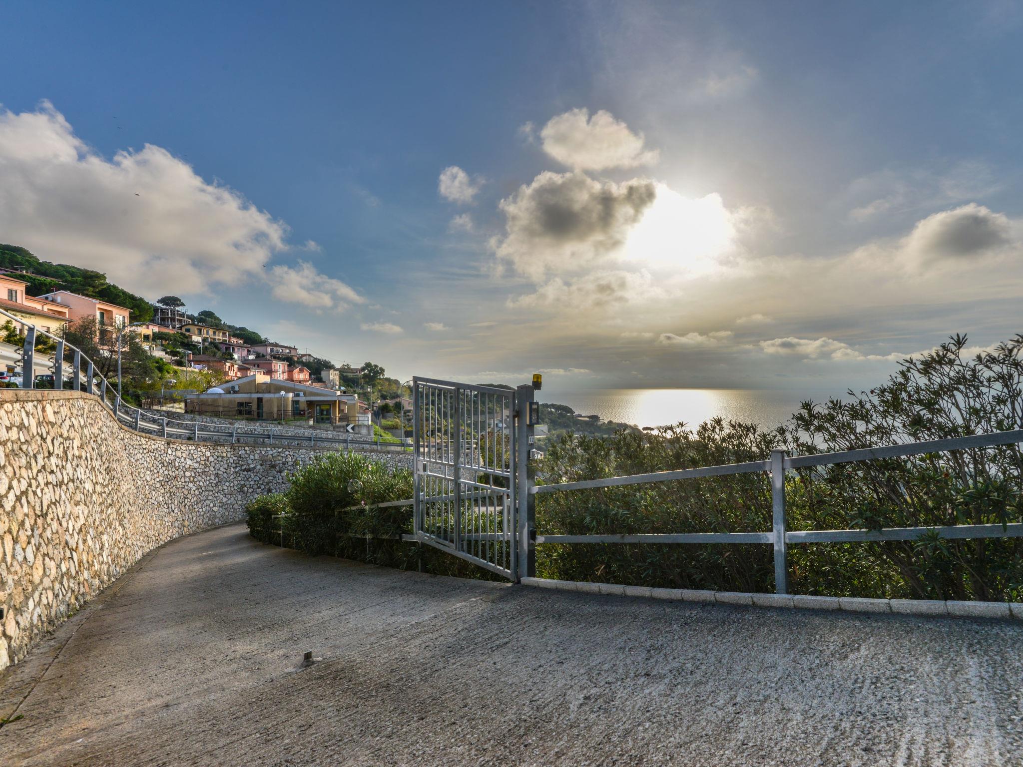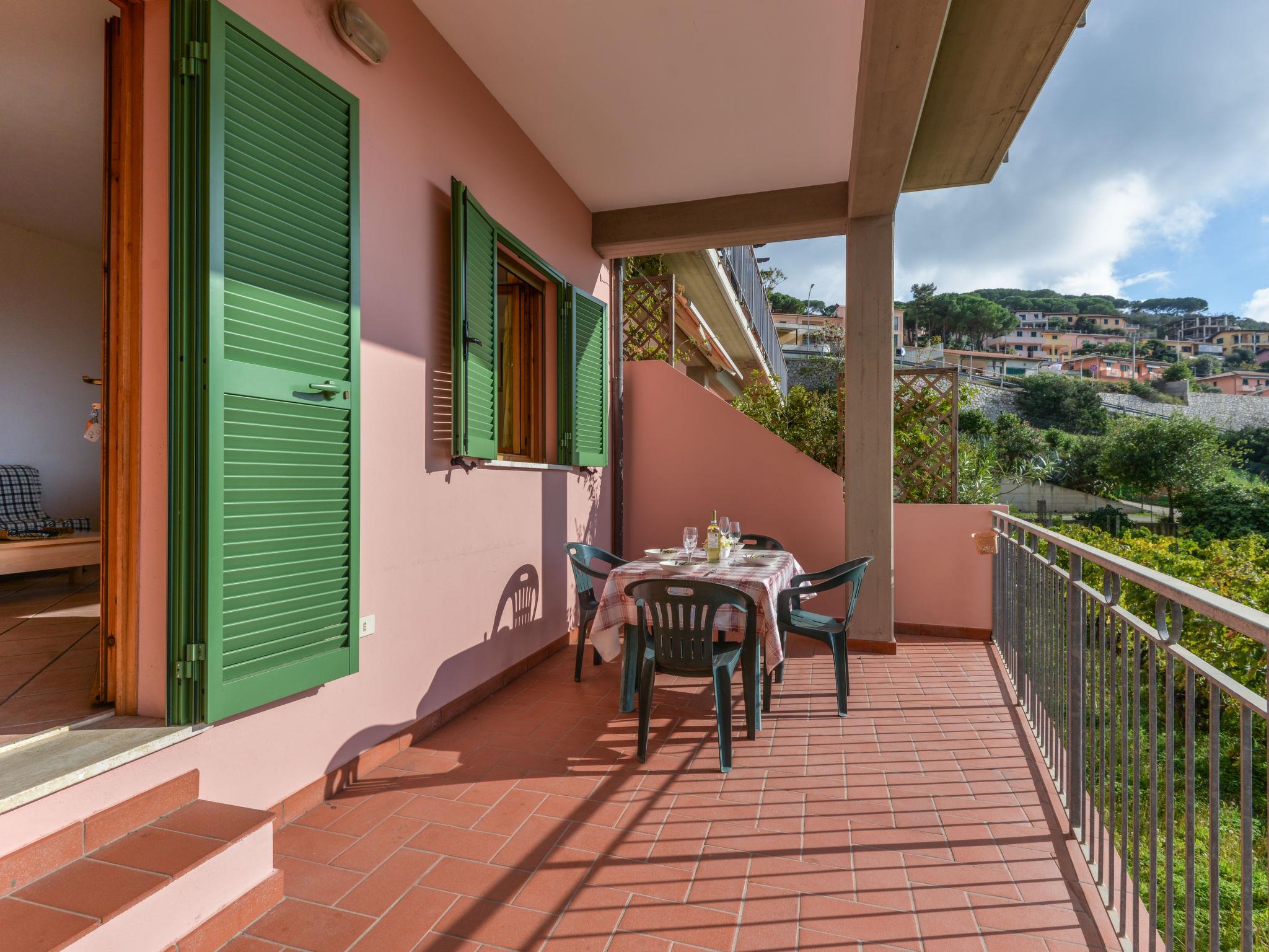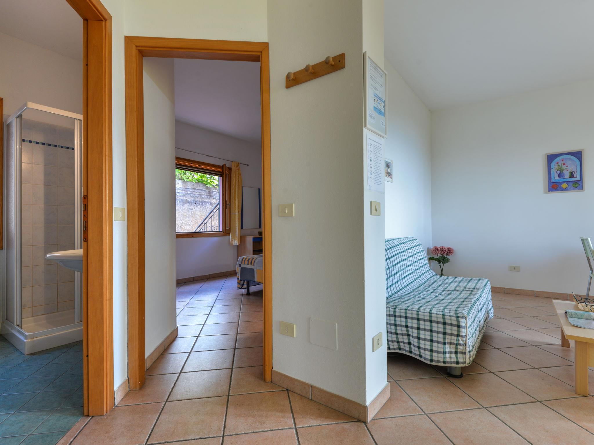2-room apartment 45 m2, on the ground floor. Practical furnishings: living room with 1 double sofabed, dining table and satellite TV. Exit to the terrace. 1 double bedroom. Kitchenette (4 gas rings). Shower/bidet/WC. Heating, air-conditioning. Terrace 17 m2. Terrace furniture. Beautiful view of the sea. Facilities: mosquito net, hair dryer. Internet (WiFi, free). Parking (roofed, fenced 1 car) at 20 m. Please note: non-smokers only. 1 small pet/ dog allowed. Private entrance, smoke alarm, fire extinguisher. No mandatory extra charges to be paid on-site. IT049004C29ZT9TY75