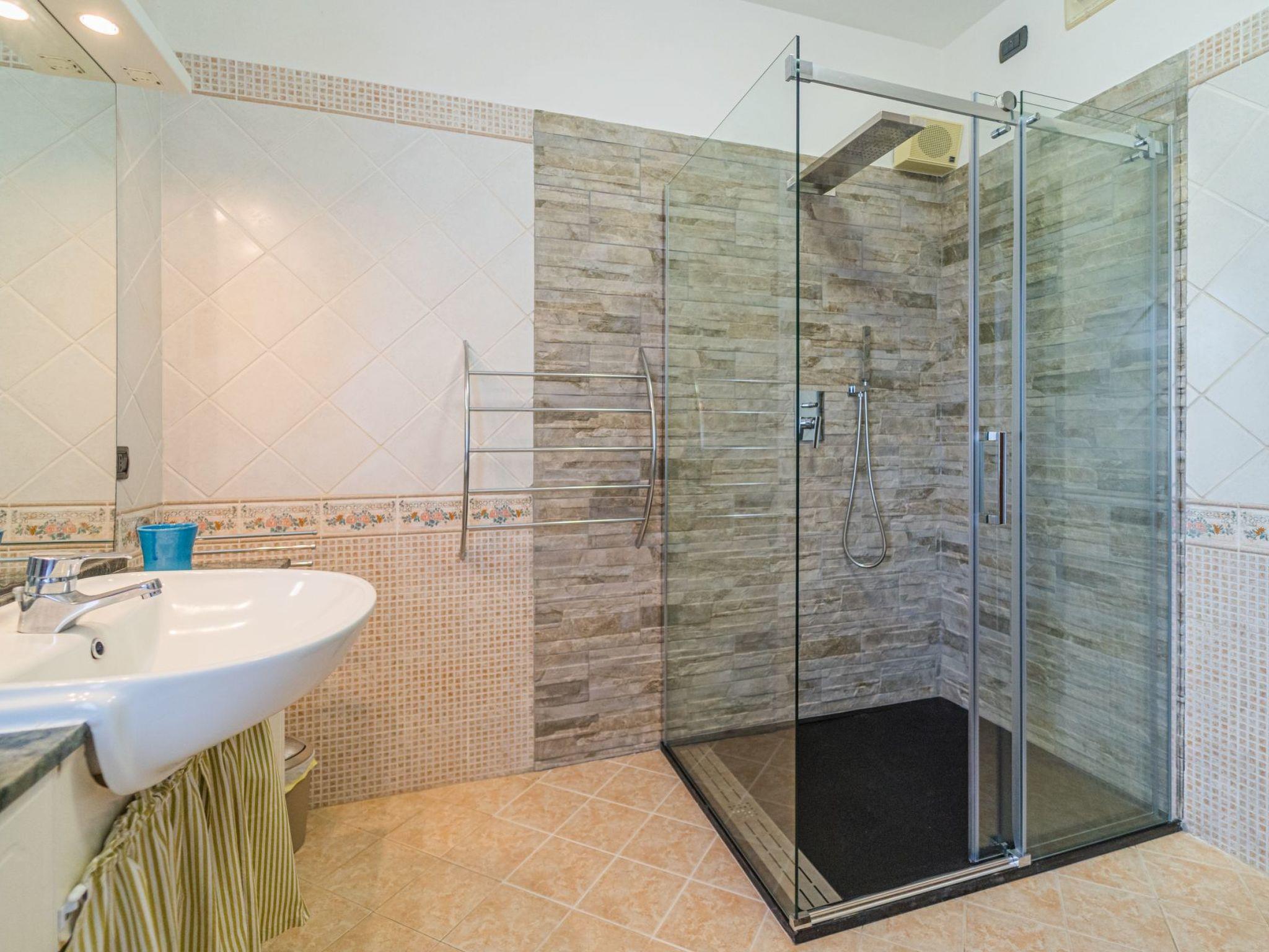 This apartment is the most spacious in the villa, as it can accommodate up to eight people. It is on the upper floor. The living space comprises a living room-kitchen with a dining table, a fireplace, a TV, a sofa bed for two people (160 x 190cm) and a kitchen unit equipped with an oven, gas stove, dishwasher, fridge with freezer compartment and a toaster. There are three bedrooms: two each with a double bed (160 x 190cm) and one with a bunk bed (80 x 190cm). The bathroom has a bathtub with a shower. The apartment has a terrace with a table and chairs and a garden with an outdoor shower, barbecue and garden furniture.Features of the property: Object in residential areaOutside area: Garden available; Grill; Outdoor shower; Parking spaces: 1; Terrace; Veranda;House information: 2nd double bed; Altitude above sea level: 200 m; Bathrooms: 1; Bedroom; Detached building; Floor: 0; Property area: 300 m²; Total number of floors in the building: 1; Year of construction: 2001; Year of renovation: 2013;Living area: Bunk bed(s); Cable-tv; Double sofa; Fireplace; Iron; Sound system; Woodburning stove;Bath/WC: Hairdryers; Shower; Toilet;Kitchen: Dishwasher; Freezer; Fridge; Gas stove; Microwave; Oven; Toaster;Other: Heating; Non-smoking object; Pets allowed: max. 2; View; Washing machine; Wifi all-inclusive package;Distances (linear, approx.): Distance to airport: 18,00 km; Distance to beach: 1,70 km; Distance to cafés/ restaurants: 0,30 km; Distance to food market: 0,30 km; Distance to golfcourt: 6,00 km; Distance to port: 15,00 km; Distance to sand beach: 1,70 km; Distance to the sea: 1,70 km;Short descriptionOther : Non-smoking houseSurroundingNearby sports facilities : Golf courseGarden and outdoorGarden facilities : Grill