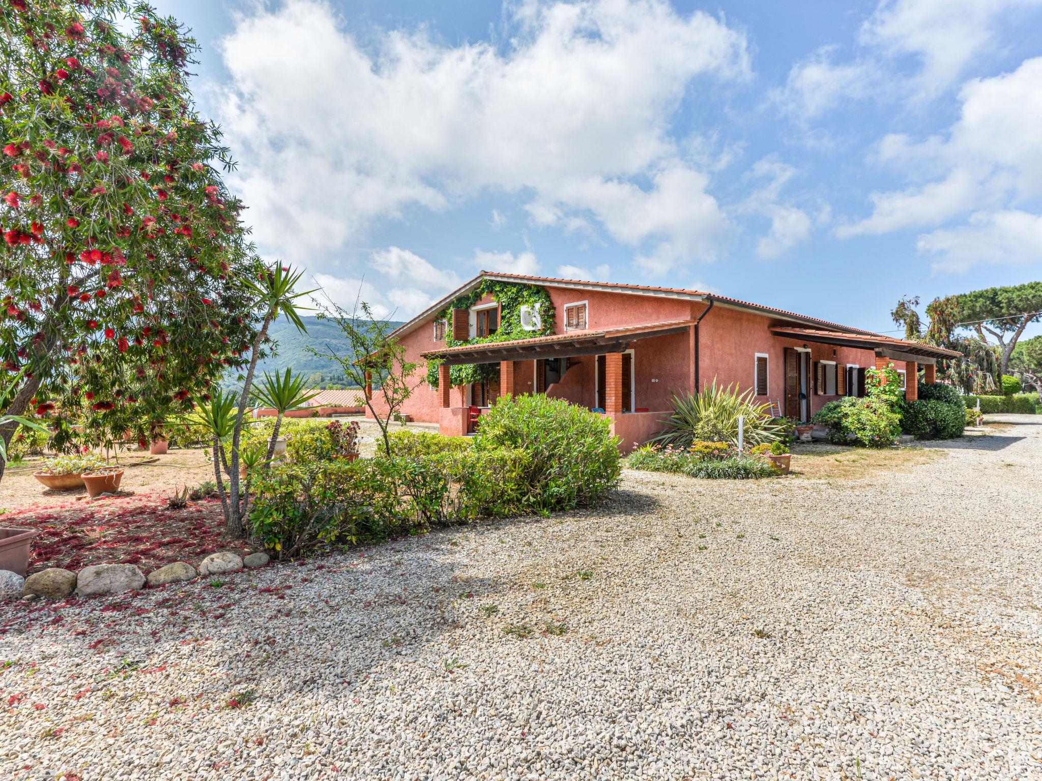Naregno 3 km from Capoliveri: Small residence "Il Melograno", surrounded by trees. 4 houses in the residence. 13 apartments in the residence. Above Naregno 3 km from the centre of Capoliveri, 5 km from the centre of Porto Azzurro, 17 km from the centre of Portoferraio, 800 m from the sea. For shared use: property 15'000 m2 (fenced) with plants and trees, natural garden, swimming pool (14 x 7 m, depth 110 - 250 cm, seasonal availability: 01.Apr. - 30.Oct.). Outdoor shower, hot tub, terrace, barbecue. In the house: reception, WiFi, washing machine (for shared use, extra), bicycle rental. Parking on the premises. Grocery 3 km, bus stop 230 m, ferry "Portoferraio" 17 km, sandy beach "Naregno" 800 m. Please note: residence with electric gates. The owner lives on the same property.
