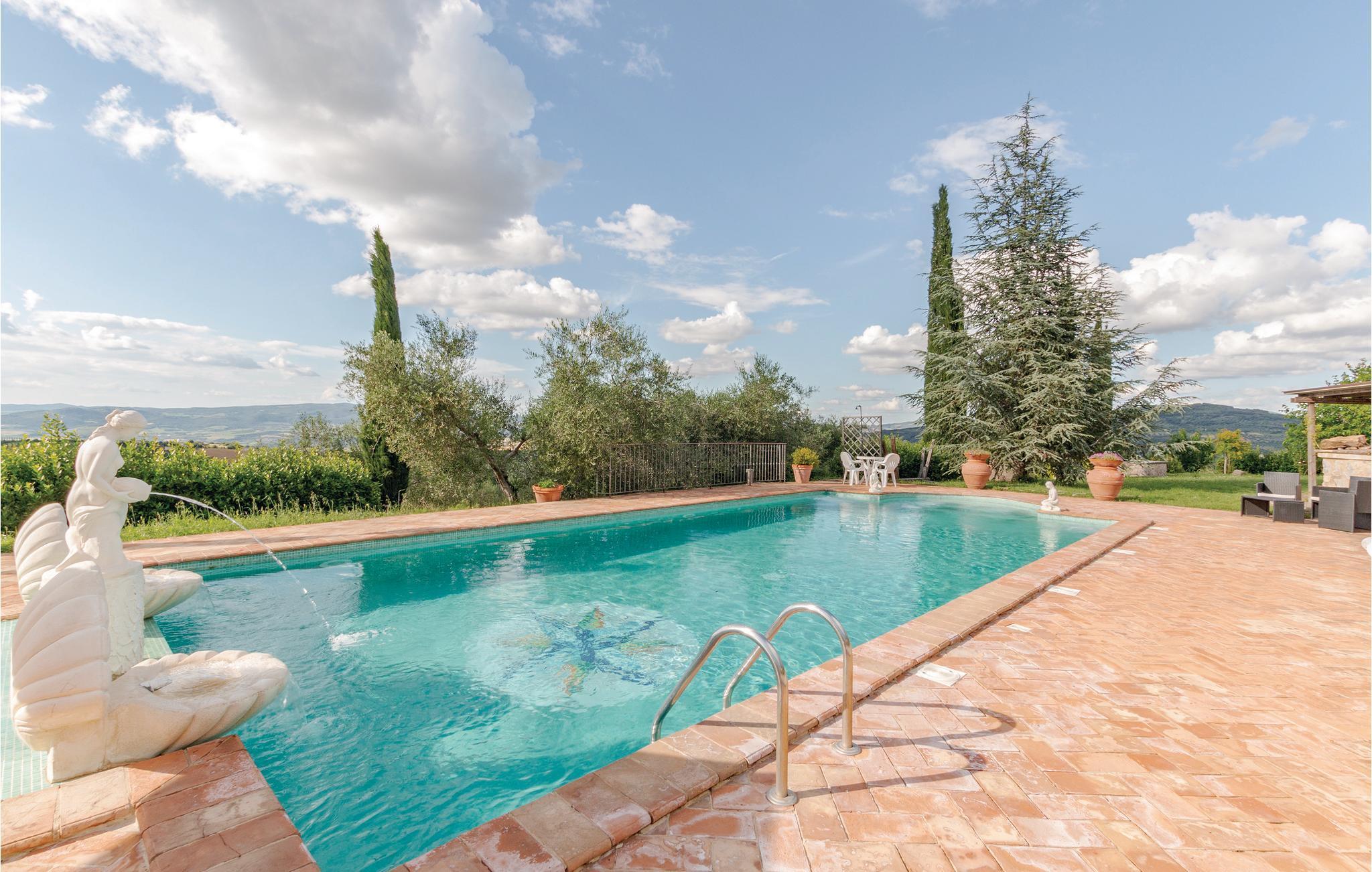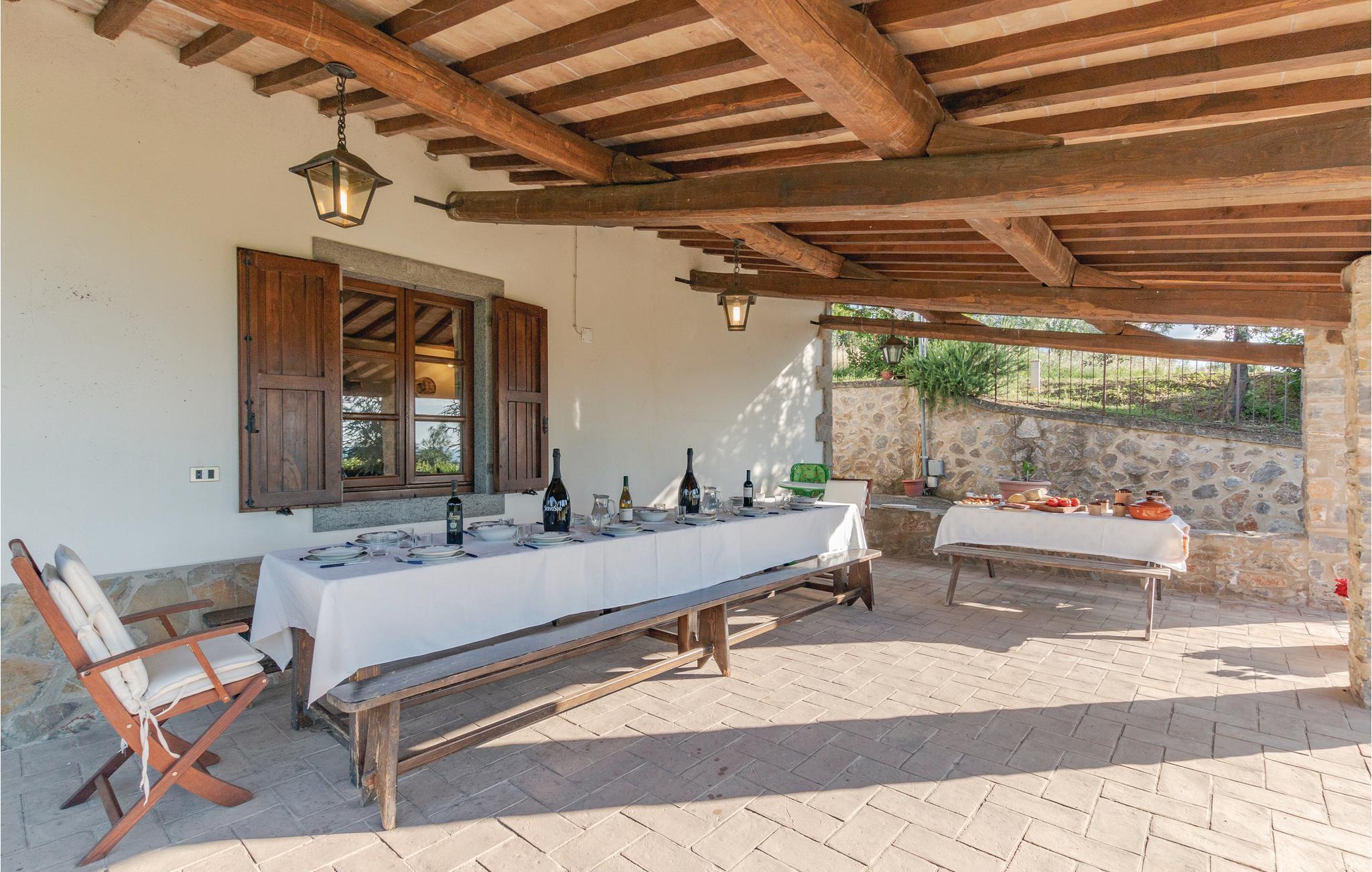 Etwa 6 km unterhalb von Arcidosso liegt dieses rustikale Ferienhaus in malerischer Hügellage, umgeben von Olivenhainen und Weinbergen. Im Erdgeschoss liegt der Wohnbereich mit Küche und großem Wohn-Esszimmer; direkt davor die breite überdachte Terrasse, gut ausgestattet für gemeinsame Mahlzeiten mit Panoramablick. Im 1. Stock (erreichbar über die Außentreppe mit Loggiato) befinden sich drei der vier Schlafzimmer. Die Einrichtung ist rustikal und gemütlich. Die Attraktion dieses Hauses ist der private Poolbereich mit kleinem Springbrunnen, Wassermassage und Wasserfall: auch von hier genießen Sie einen einzigartigen Blick über die einmalige Hügellandschaft . Auf dem weitläufigen Naturgrundstück stehen Ihnen außerdem verschiedene weitere Sitzplätze zur Verfügung, sowie Tischtennis, Bocce und Badminton; Spielgeräte für die Kleinen. Es wird Ihnen schwer fallen, dieses kleine Paradies zu verlassen, aber es bieten sich von hier aus die verschiedensten lockenden Ausflugsziele an: Besuchen und entdecken Sie die charakteristischen Bergdörfer des Monte Amiata wie Castel del Piano, Montenerone und Arcidosso (8-10 km), besuchen Sie die berühmte Weinstadt Montalcino (25 km) - probieren Sie den „Nobile“! An kühleren Tagen locken die die warmen Thermalbäder von Bagno Vignoni (30 km) und Saturnia (35 km). Und falls es einmal richtig heiß werden sollte, finden Sie Kühlung auf dem Monte Amiata (Gipfel 24 km, 1.738 m N.N.) oder an den schönen Sandstränden der Maremma-Küste, die Sie in weniger als einer Stunde Fahrt erreichen können: Principina a Mare und Marina di Grosseto 65 km. Auf Anfrage gegen Bezahlung: Badetücher.