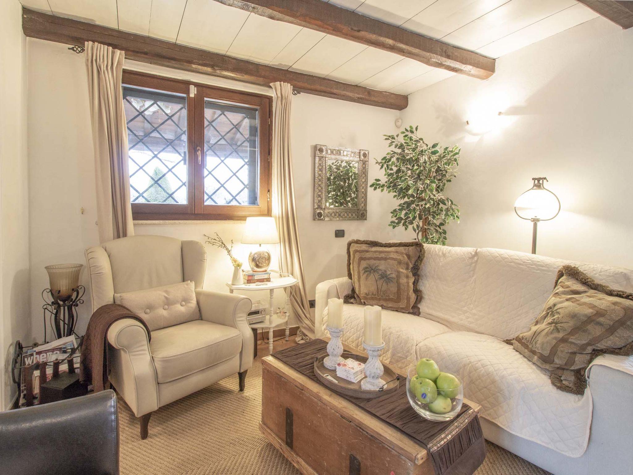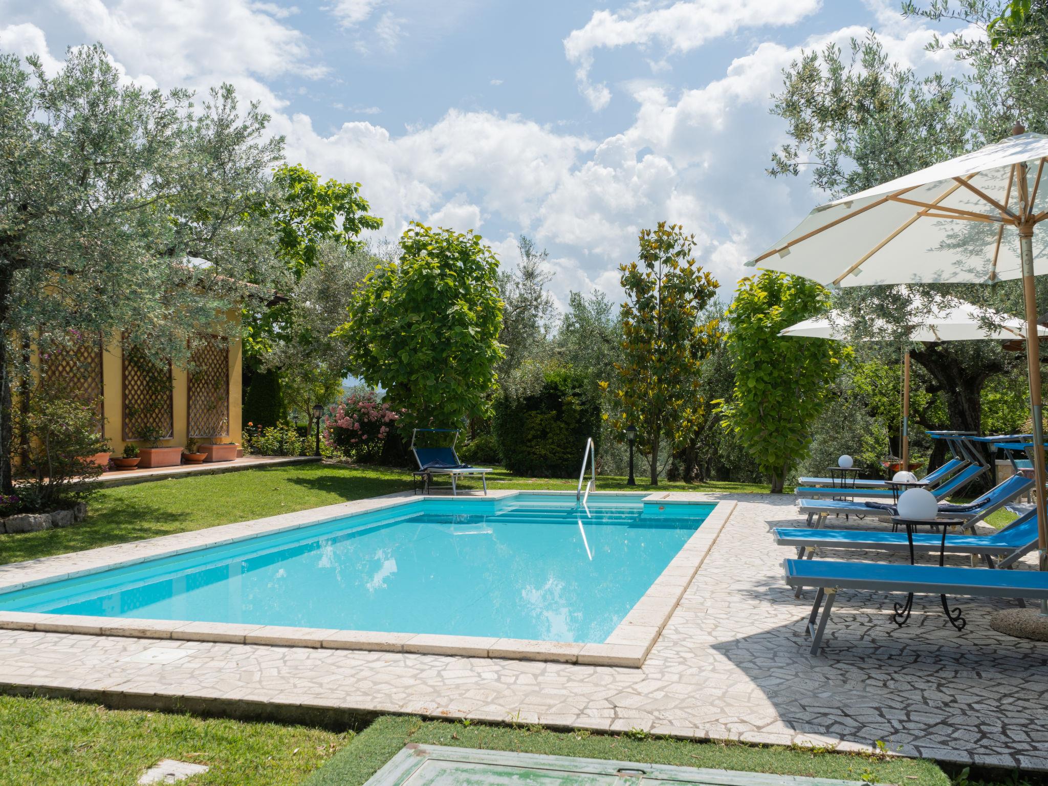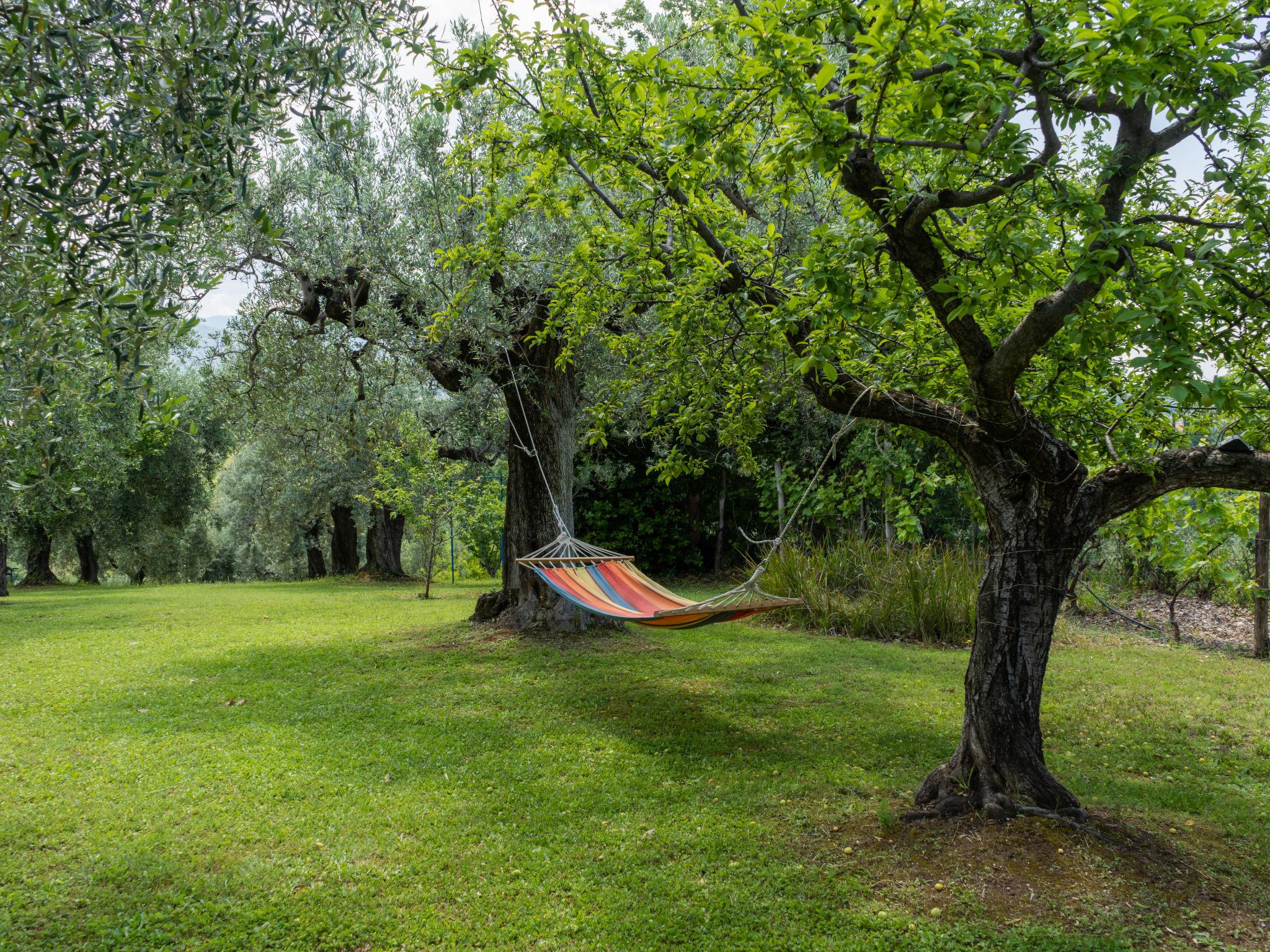 Beautiful, comfortable cottage "Olive Grove Sabina", 2 storeys. Property composed of main house and outbuilding, in the hamlet Canneto 10 km from the centre of Passo Corese, in a secluded, quiet, sunny position, in the countryside. Private: property 1 ha (fenced), garden 1 ha (fenced) with trees, swimming pool (8 x 4 m, depth 120 - 120 cm, seasonal availability: 01.Jun. - 30.Sep.) with salt-electrolysis pool-cleaning system. Shower/WC in the pool area, outdoor shower, table tennis, patio, arbour, pergola, terrace, garden furniture, barbecue, fireplace. Narrow motor access to the house (500 m via unmade road). Shop 1 km, grocery 2 km, supermarket 2 km, bar 2 km, café 2 km, bus stop 1 km, railway station "Fara Sabina FL1 - to Roma" 10 km. Nearby attractions: Roma 45 km, Rieti 30 km, Orvieto 70 km, Tivoli 40 km. Well-known lakes can easily be reached: Lago del Turano 30 km, Lago di Bracciano 40 km. Please note: car recommended. The owner does not accept any youth groups. Residence with electric gates. Yoga/viewing spot available in the olive grove.
