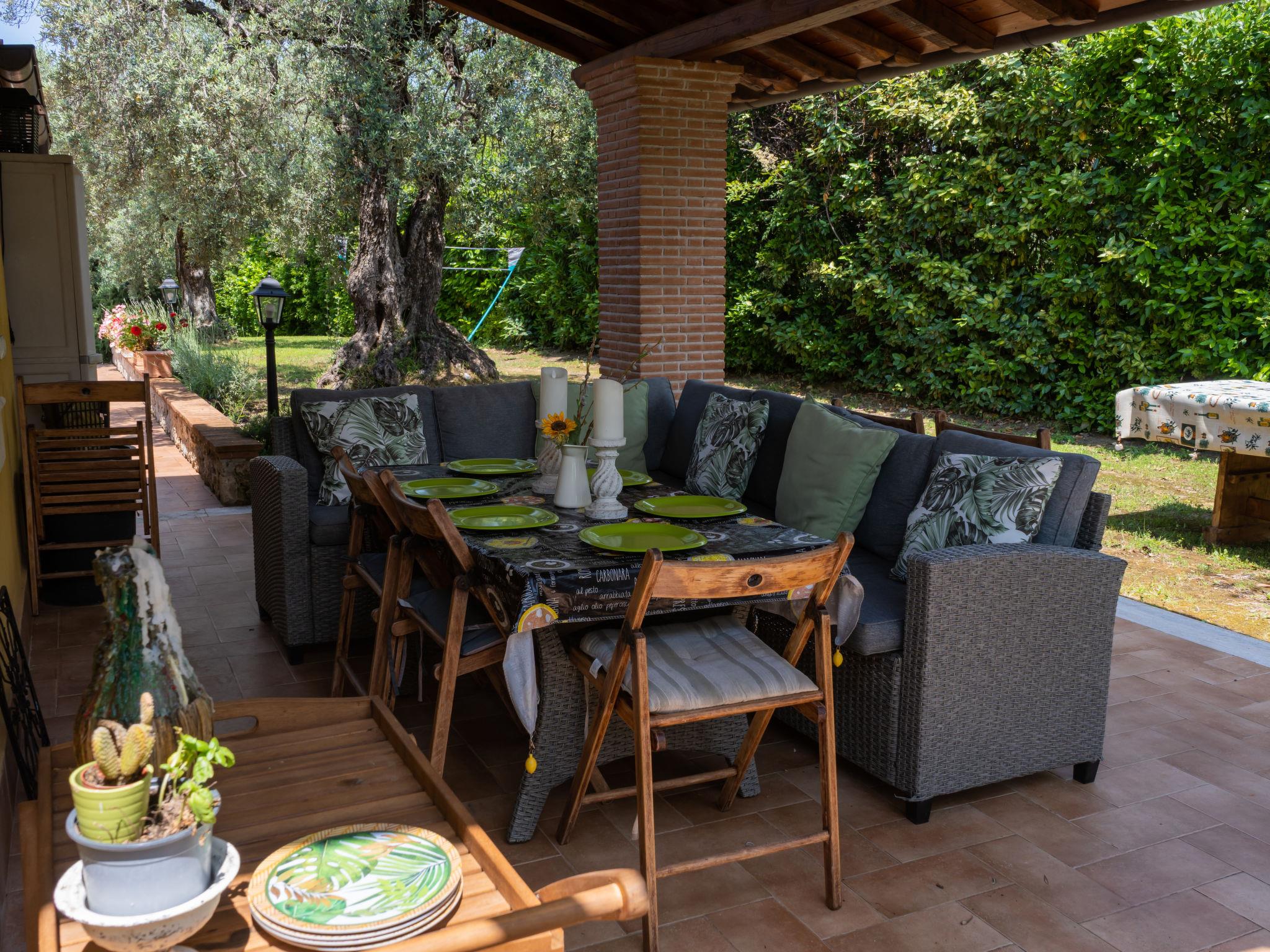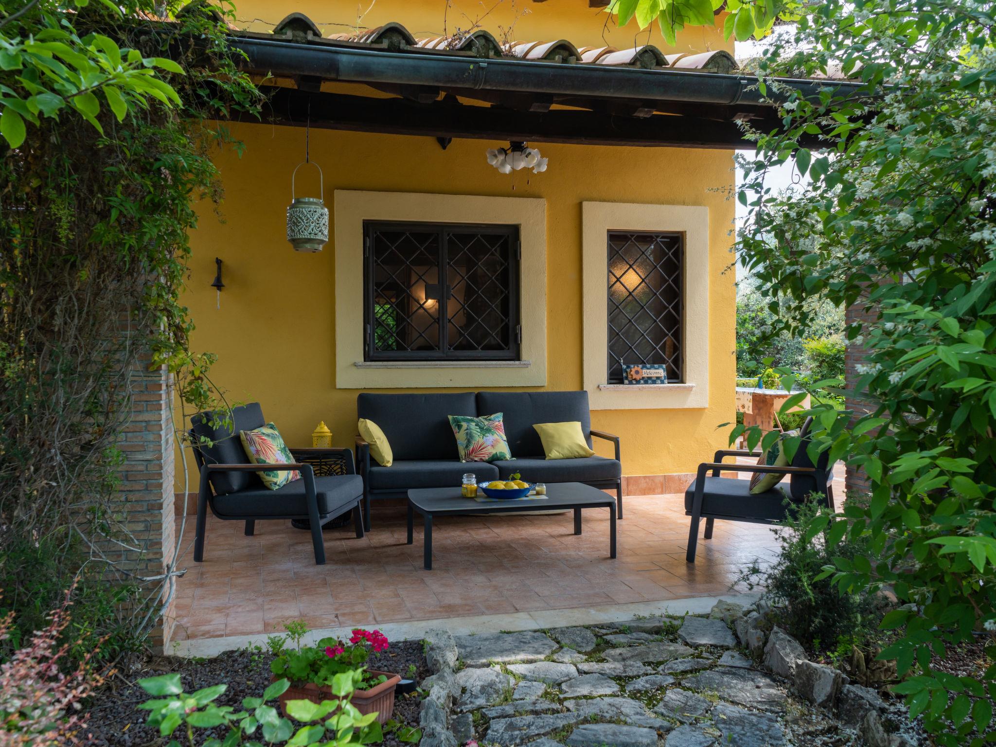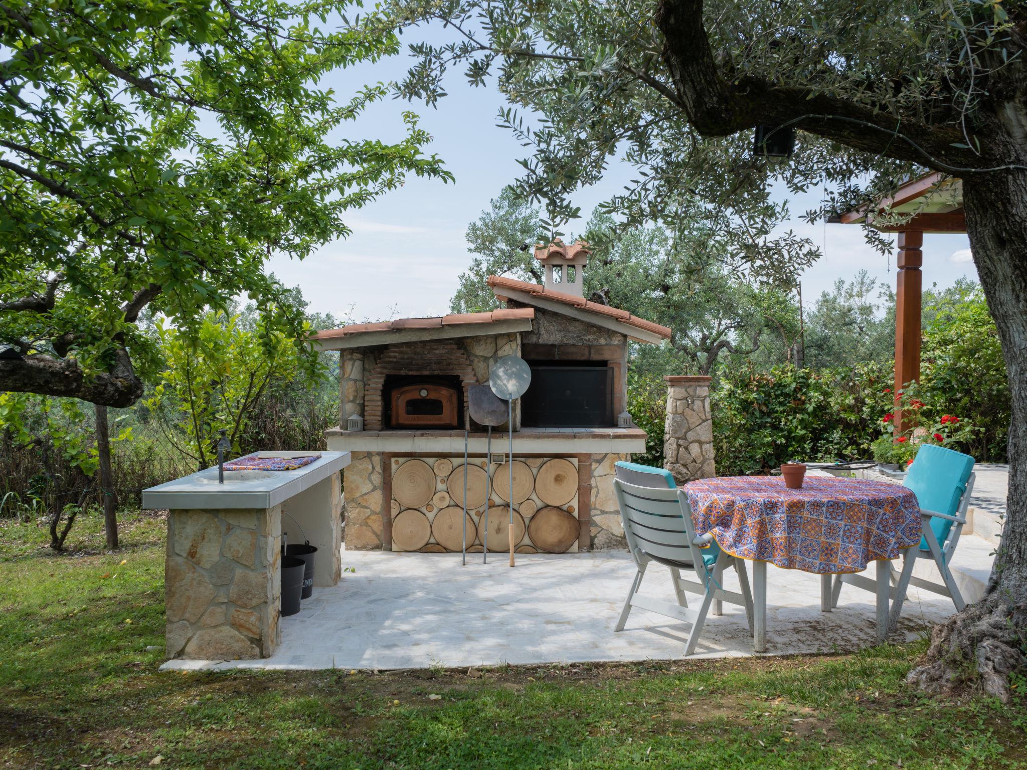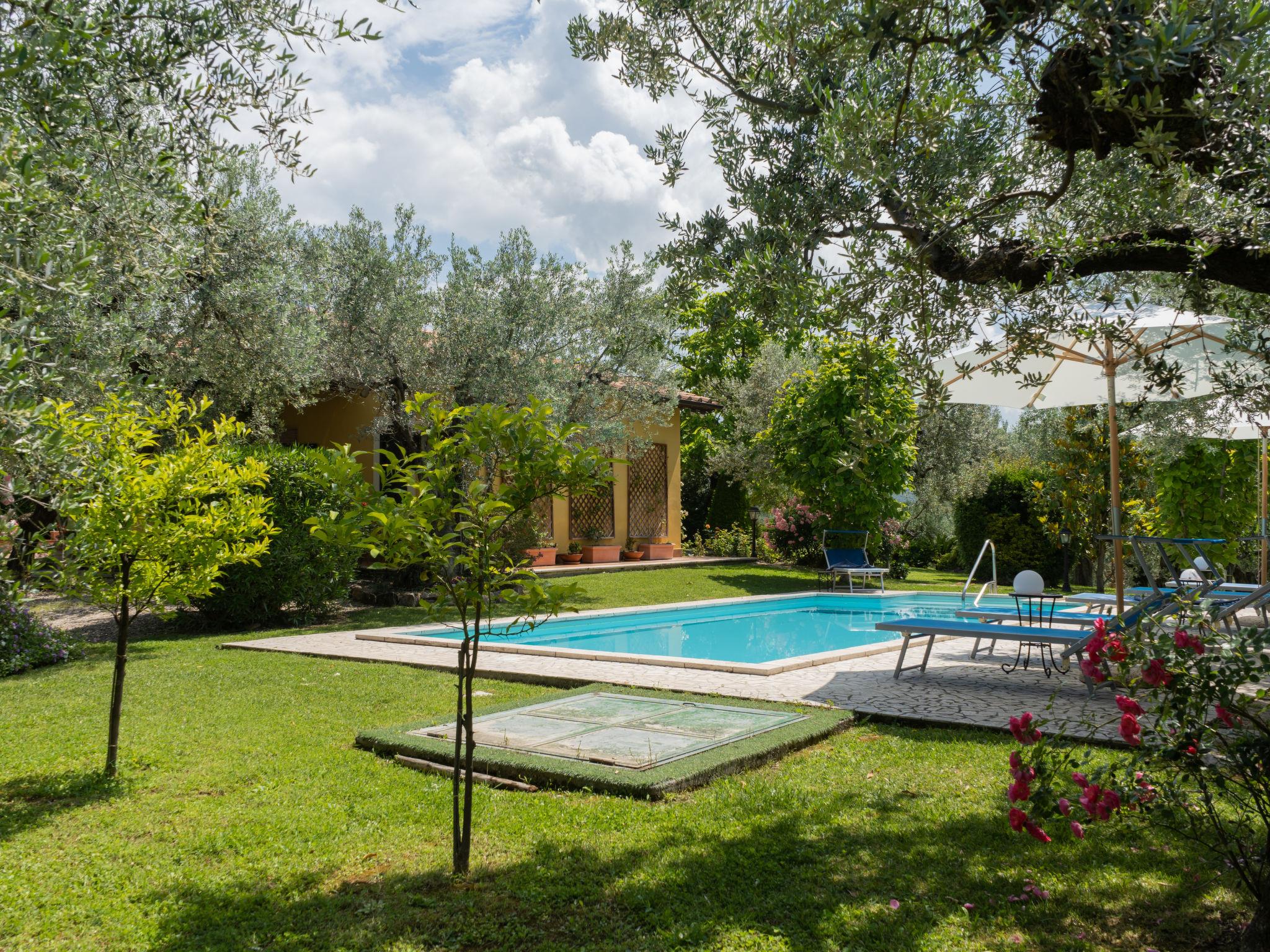 Beautiful, comfortable cottage "Olive Grove Sabina", 2 storeys. Property composed of main house and outbuilding, in the hamlet Canneto 10 km from the centre of Passo Corese, in a secluded, quiet, sunny position, in the countryside. Private: property 1 ha (fenced), garden 1 ha (fenced) with trees, swimming pool (8 x 4 m, depth 120 - 120 cm, seasonal availability: 01.Jun. - 30.Sep.) with salt-electrolysis pool-cleaning system. Shower/WC in the pool area, outdoor shower, table tennis, patio, arbour, pergola, terrace, garden furniture, barbecue, fireplace. Narrow motor access to the house (500 m via unmade road). Shop 1 km, grocery 2 km, supermarket 2 km, bar 2 km, café 2 km, bus stop 1 km, railway station "Fara Sabina FL1 - to Roma" 10 km. Nearby attractions: Roma 45 km, Rieti 30 km, Orvieto 70 km, Tivoli 40 km. Well-known lakes can easily be reached: Lago del Turano 30 km, Lago di Bracciano 40 km. Please note: car recommended. The owner does not accept any youth groups. Residence with electric gates. Yoga/viewing spot available in the olive grove.