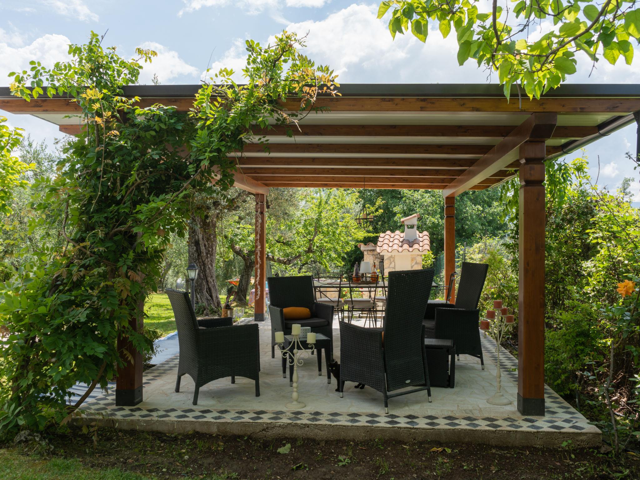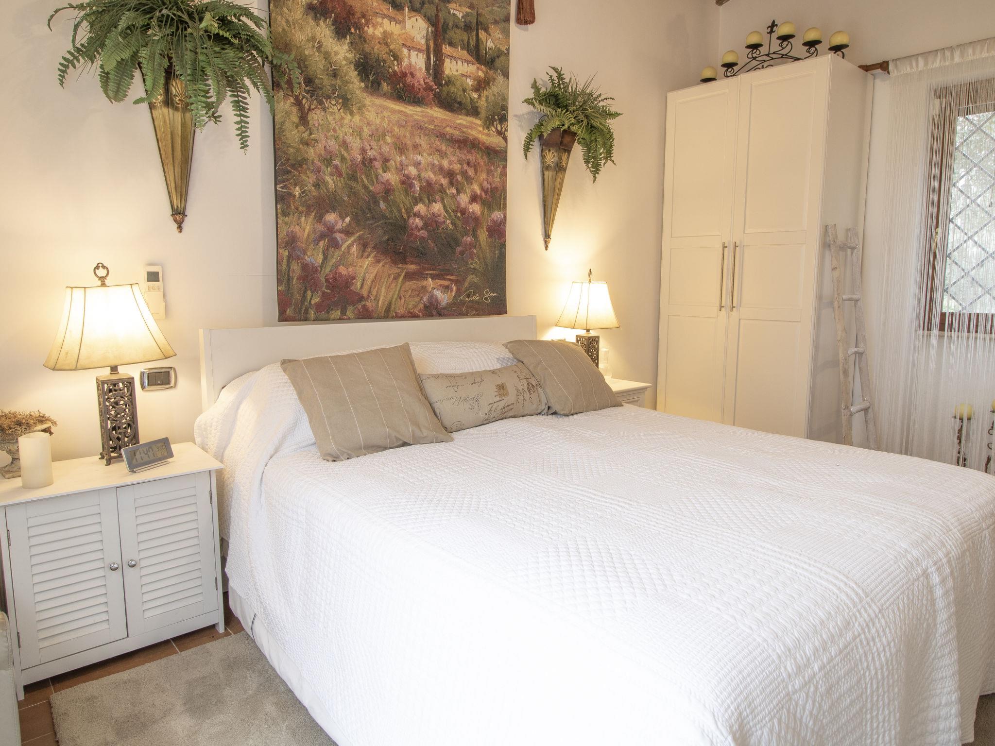 4-room cottage 120 m2 on 2 levels. Comfortable and cosy furnishings: living/dining room with dining table, TV, flat screen, DVD and air conditioning. Exit to the garden, to the loggia with 1 double sofabed. Living room with 1 double sofabed, TV, flat screen, CD-player and air conditioning. Exit to the garden. 1 room with 1 double bed and air conditioning. Exit to the garden. Kitchen (4 hot plates, oven, dishwasher, toaster, microwave, freezer, electric coffee machine). Exit to the garden, to the loggia. 2 showers/WC. Electric heating, air-conditioning. Upper floor: (spiral staircase) open mezzanine with sloping ceilings with 1 double bed (180 cm, length 200 cm). 2 terraces 50 m2, large patio 30 m2, large patio 30 m2. Very beautiful panoramic view of the valley. Facilities: washing machine, mosquito net. Internet (WiFi, free). Parking (fenced 4 cars). The house consists into 2 cottages . One cottage consist in 1 living/dining room , 1 bedroom situated on the mezzanine and 1 shower/WC. The other consists in a living room with sofabed, one bedroom and a shower/WC .The cottages are conneted via video intercom with each other.Apple tv service avaialbe in the house. IT057027C2CUB6S2MK