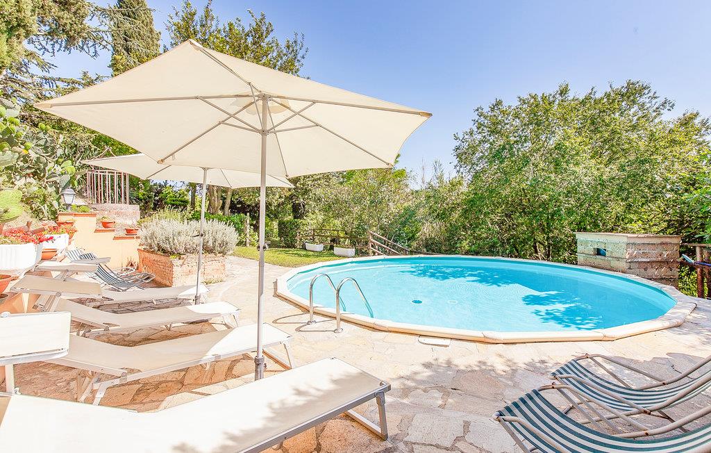 Ferienhaus mit Garten und privatem Aufstellpool 1 km von Crespina entfernt. Das Ferienhaus ist zwischen den Hügeln von Pisa gelegen, mit einem wunderschönen Blick auf die umliegende Landschaft: Wälder, Olivenhaine, Weinberge und Sonnenblumenfelder erfreuen das Auge. Auf vielen Landgütern in der Umgebung kann man Wein und ortstypische Produkte verkosten. Empfehlenswert ist selbstverständlich eine Besichtigung von Pisa mit seinem weltberühmten schiefen Turm (20 Km, Flughafen). Diejenigen, die etwas Entspannung suchen, werden in der nur 10 km entfernten Kleinstadt Casciana Terme schöne Thermaleinrichtungen. Im Ort Casciana (1 km) und Cenaia (ca. 2 km) befinden sich alle Geschäfte und Supermärkt. Die Kunststadt Florenz erreicht man leicht mit dem Auto in weniger als eine Stunde . Der Zufahrt zum Haus ist über eine kurze Strecke Schotterstraße.