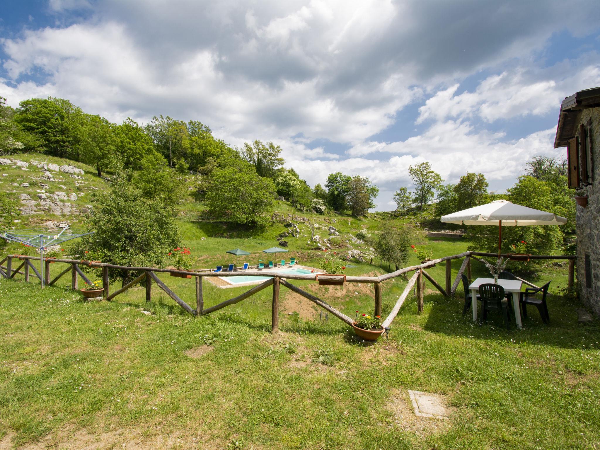 Rustic country house "Paradiso", 950 m a.s.l., detached, surrounded by trees and meadows. 2 houses in the resort. 8 km from the centre of Fabbriche di Vallico, 45 km from the centre of Lucca, 63 km from the centre of Pisa, in a secluded, elevated position, 73 km from the sea, in the countryside, in the woods. For shared use: property 10'000 m2, terraced garden (not fenced) with trees, natural garden, meadow, swimming pool (10 x 5 m, depth 140 cm, seasonal availability: 29.Apr. - 15.Oct.). Terrace, barbecue. In the house: washing machine (for shared use). 600 m long bumpy, narrow motor access to 20 m from the house (mountain road). Stepped path to the house. Parking on the premises. Shop 8 km, supermarket 20 km, restaurant 3.5 km, bus stop 3 km, sandy beach "Lido di Camaiore" 73 km, outdoor swimming pool 20 km, indoor swimming pool 20 km. Walking paths from the house 50 m.
