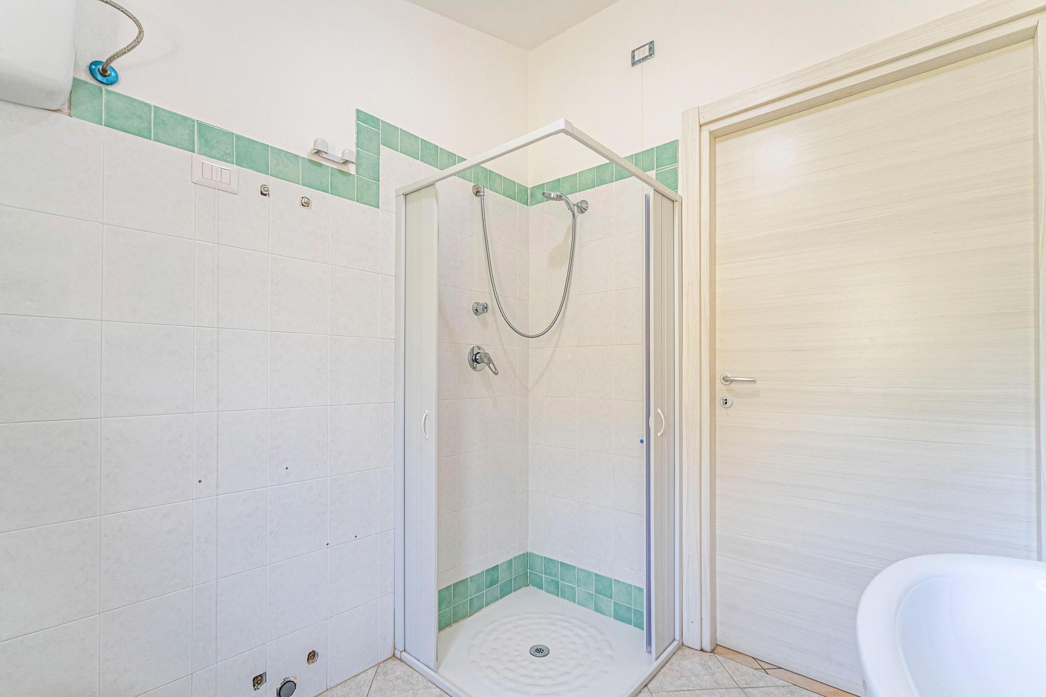 Ground floor: (Large kitchen(TV, fridge), bedroom(double bed or 2 single beds), bedroom(double bed or 2 single beds), bathroom(shower, washbasin, toilet, bidet), terrace) shared room(shared with other guests), washing machine(shared with other guests), garden(shared with other guests), garden furniture, BBQ(shared with other guests), deckchairs, swimming pool(shared with other guests), play equipment