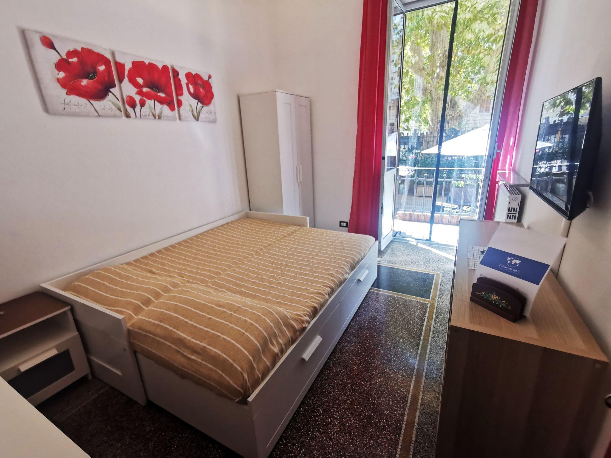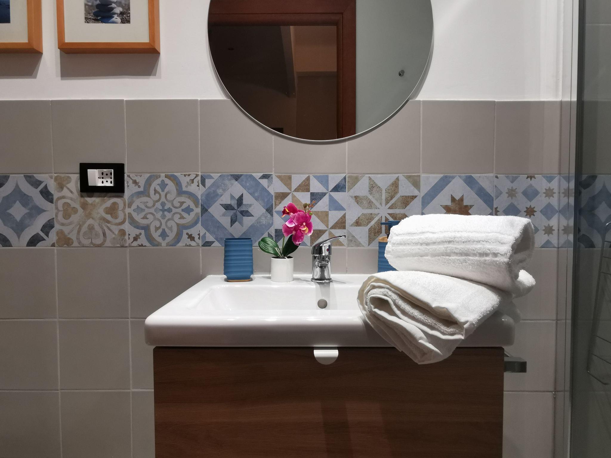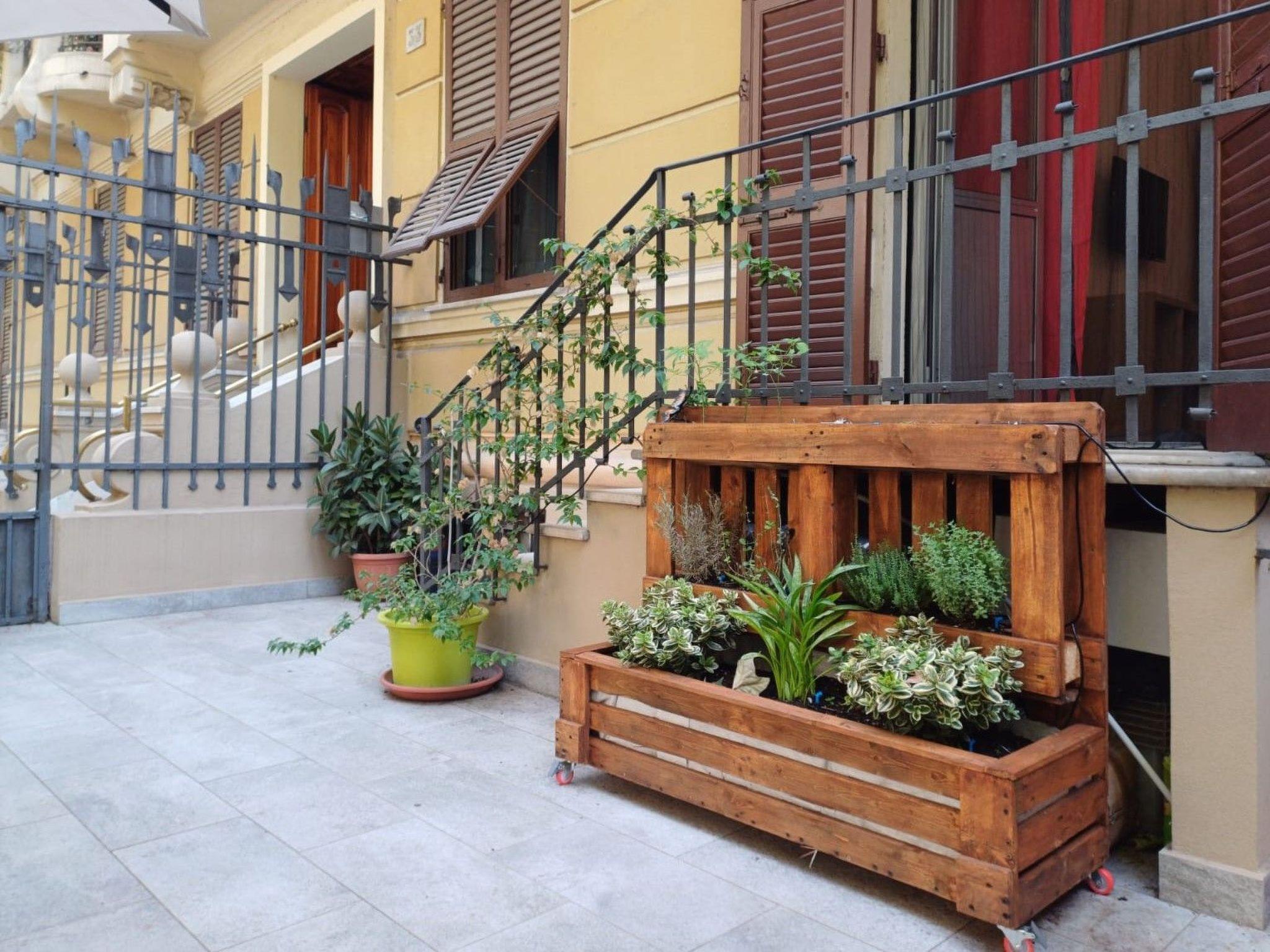 La Casa di Lina is a comfortable flat located on the mezzanine floor of an elegant Art Nouveau building in the Foce district of Genoa. The flat consists of a large entrance hall pleasantly furnished as a dining room and relaxation area with sofa and smart TV, a fully equipped eat-in kitchen, a double bedroom, a twin bedroom with a single bed that can be converted into a double bed (not divisible) and a bathroom with shower and bidet. Casa di Lina also has a very comfortable and spacious terrace of about 40 square metres, perfect for relaxing breakfasts and pleasant dinners with family or friends. The interiors are tastefully furnished, combining classic and contemporary elements, ensuring a comfortable and relaxing living experience. This flat is ideal for a family of 4 or two couples of friends.