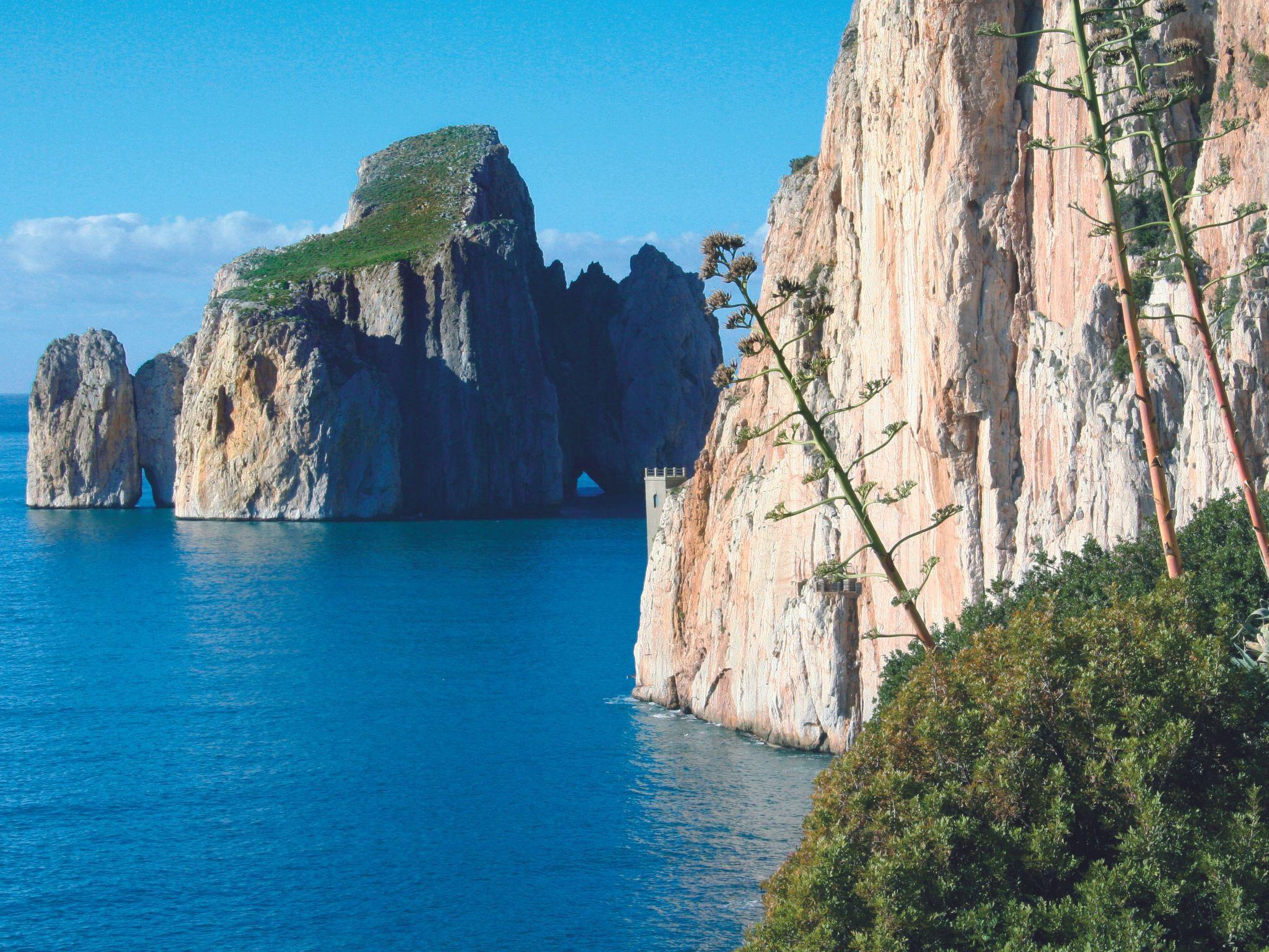 The village is adjacent to the village, where you can find markets, bars, restaurants, a chemist's shop and a post office. The splendid and evocative location makes the Village an excellent starting point for any activity guests wish to carry out during their holiday. They can indulge in their favourite sports, such as kitesurfing and windsurfing lessons, sailing, mountain biking, quad biking or off-road excursions, trekking, climbing or, for the less adventurous, simple cultural walks, visiting various historical sites. A few minutes' walk along the private park path leads to a rocky cove with emerald-green waters, while about three kilometres away are the beautiful beaches of Masua, Fontanamare, Plagemesu and Portopaglia. Also in the vicinity of the village are the majestic Pan di Zucchero cliff and a very interesting example of mining archaeology: Porto Flavia.