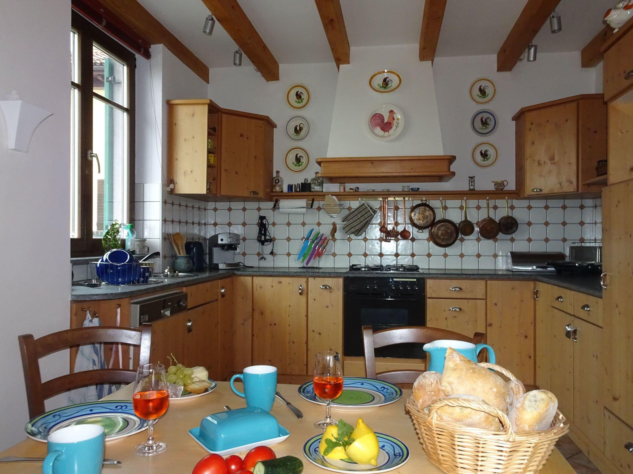 The 100 m² "Toce" holiday flat is located on the upper floor of the house. The terrace with lake view overlooks the gardens of the "Casa Degli Amici" below, which are also accessible to guests of the Vecchia Scuderia. The flat is comfortable and cosy, it is centrally heated and can therefore also be used in winter. The spacious 37 m² living area is divided into a seating area around the open fireplace (with sofa bed for two people), the spacious kitchen and the dining area by the window. In the kitchen, guests will find a 4-burner gas hob with electric oven, a microwave with grill, dishwasher and fridge with freezer compartment. An espresso machine and toaster are also available. The digital satellite reception system provides Europe-wide TV programmes. There is also a DVD/CD player and a Bluetooth box. The two double bedrooms have plenty of wardrobe space, a writing desk and wide shelves for personal belongings. The two double beds in the two bedrooms are each 1.60 metres wide - each with two 200 x 80 cm mattresses. The additional children's bed measures 70cm x 140cm. The bathroom has a walk-in shower with glass wall, WC and bidet. Of course as prescribed: Fire extinguishers in the flat and carbon monoxide gas detectors in every room.