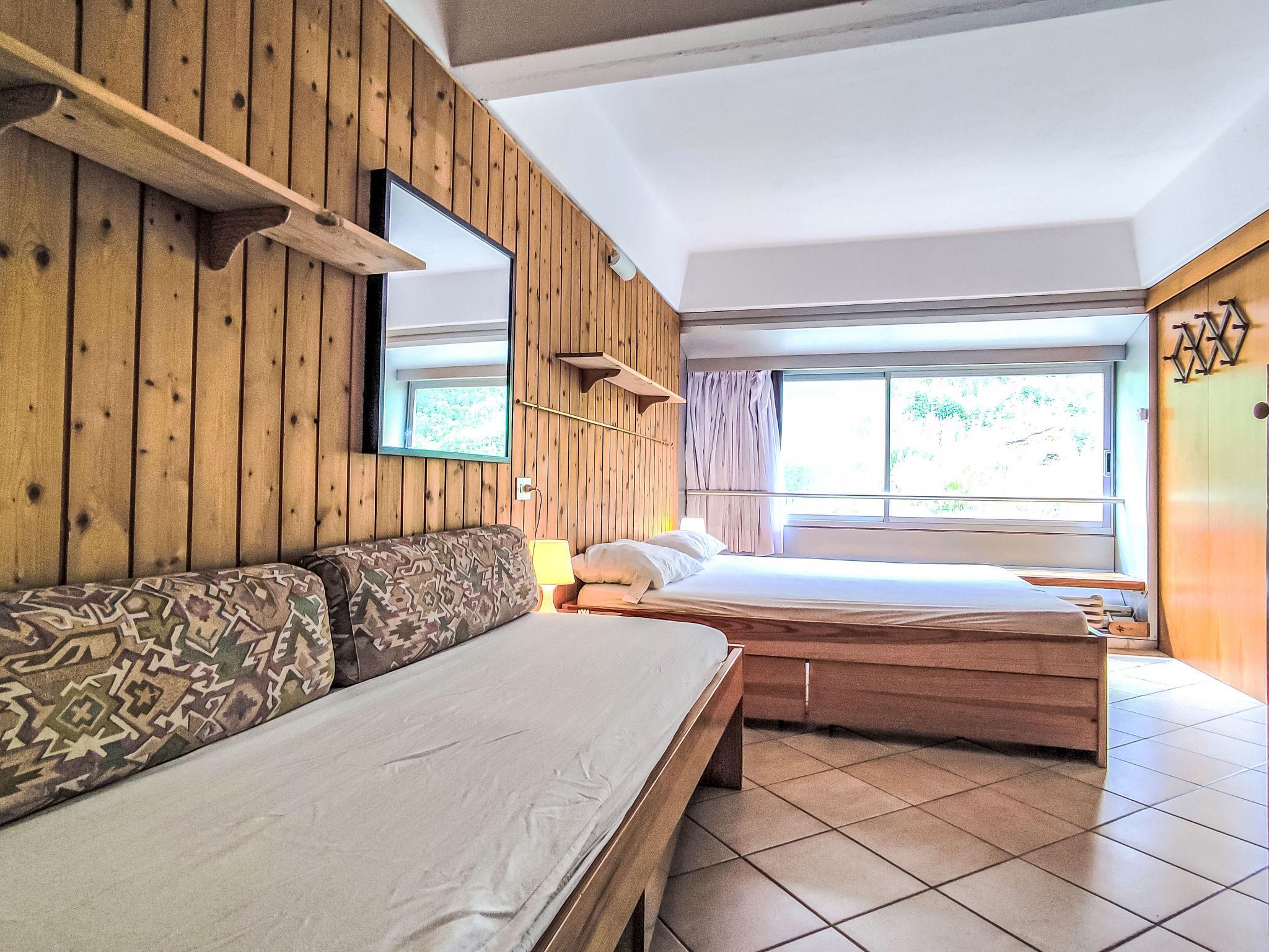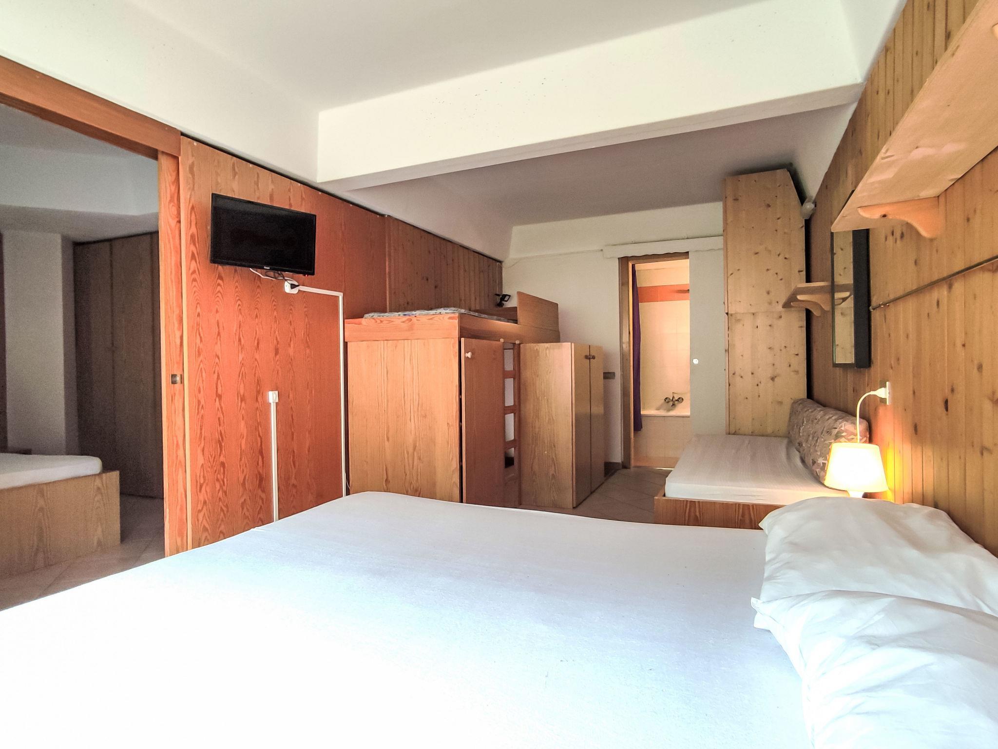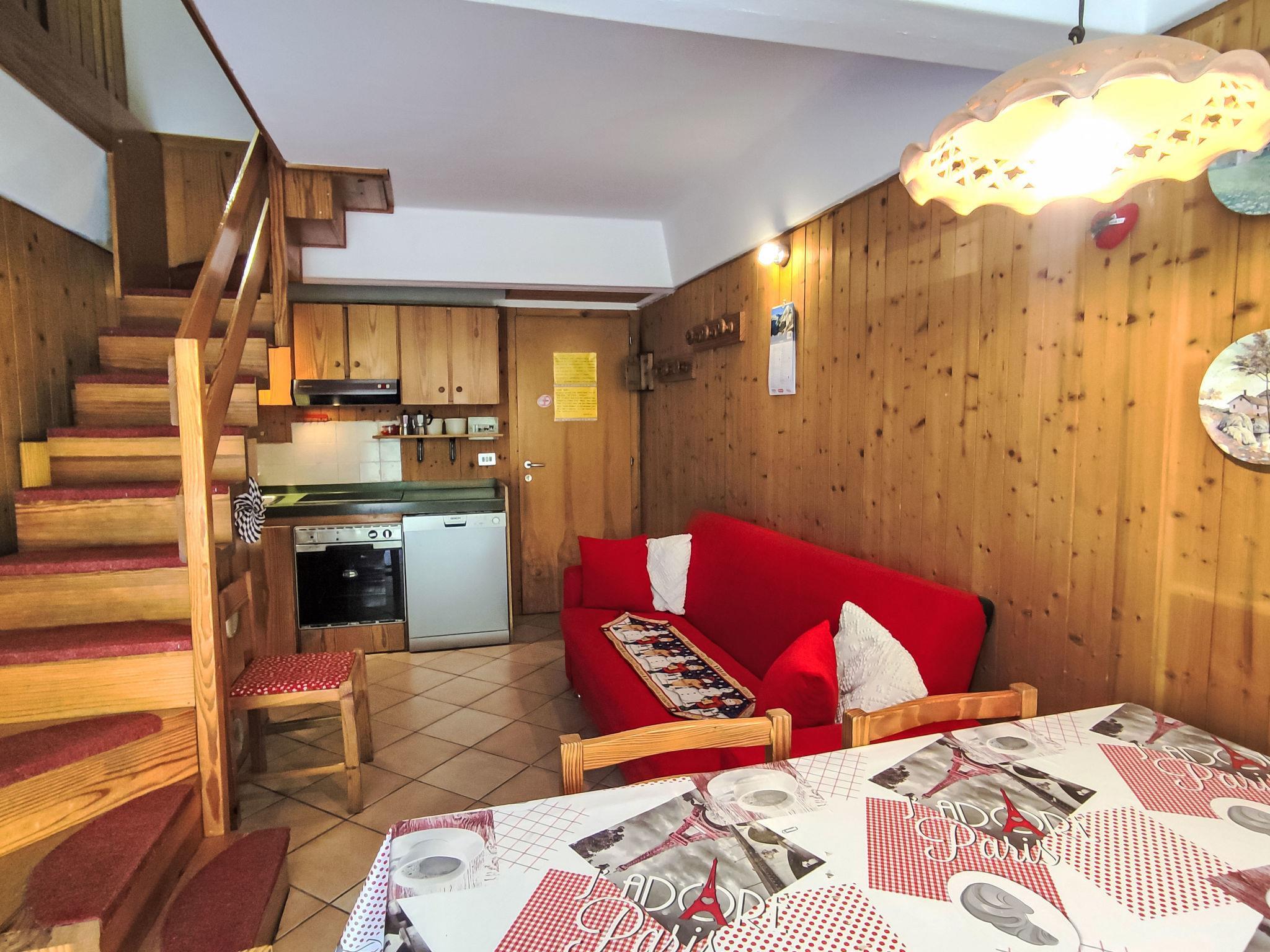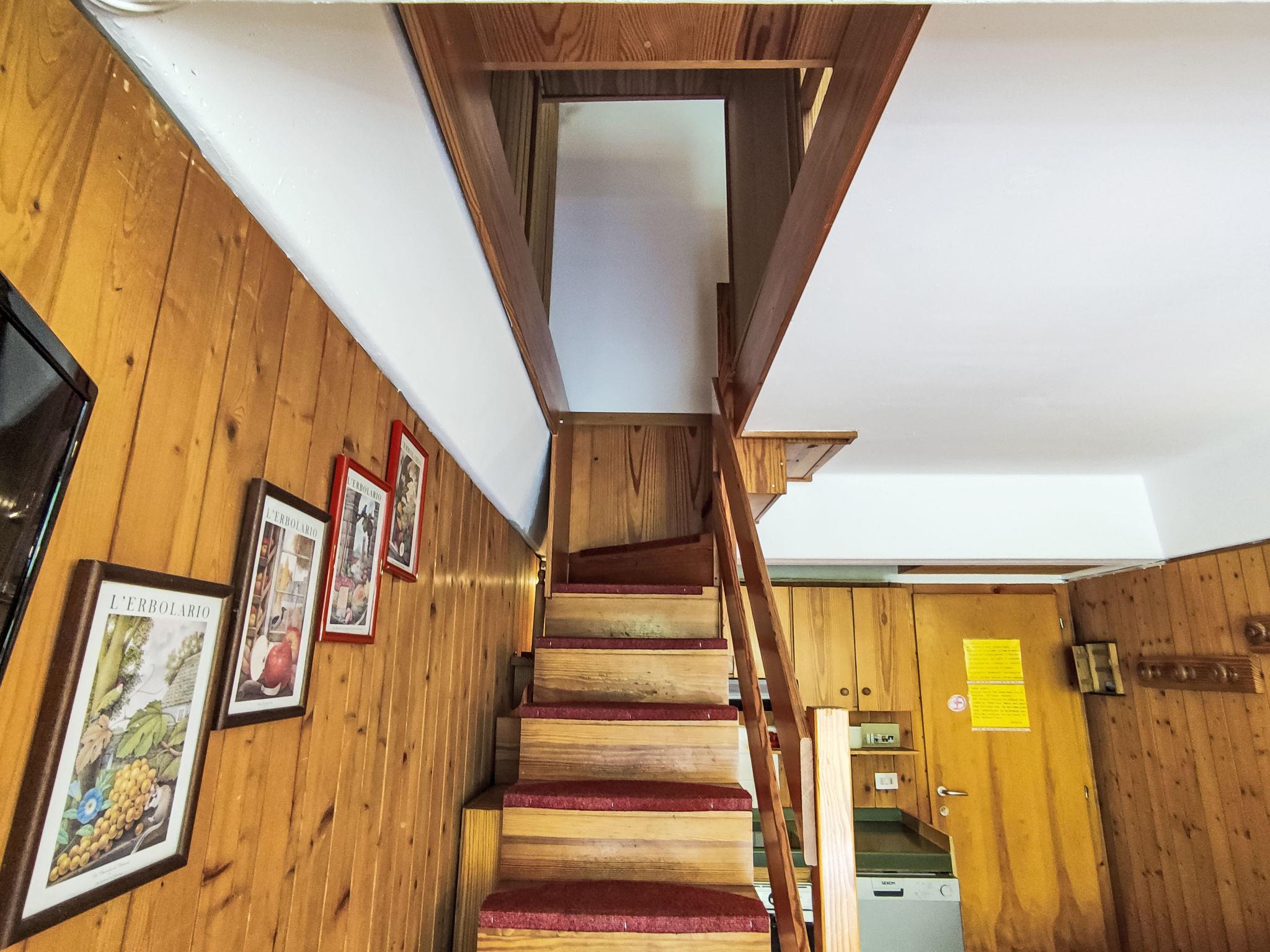 "Tra le Piste", 3-room maisonette 60 m2 on 1st floor. Bright, partly renovated in 2025, simple and comfortable furnishings: living/dining room with TV. Exit to the balcony. Kitchenette in the entrance (dishwasher, 4 induction hot plates, kettle, microwave). Exit to the balcony. Upper floor: 1 double bedroom. 1 double bedroom with 1 bed. Shower/bidet/WC. Heating. Heating available only from 15.11. to 31.05. Small balcony. Sitting area. Beautiful panoramic view of the mountains and the ski run. Facilities: iron, hair dryer. Internet (WiFi, free). Parking space n 62 (roofed, 1 car). Please note: non-smokers only. Fire extinguisher. IT022114C2CB3OA8HP