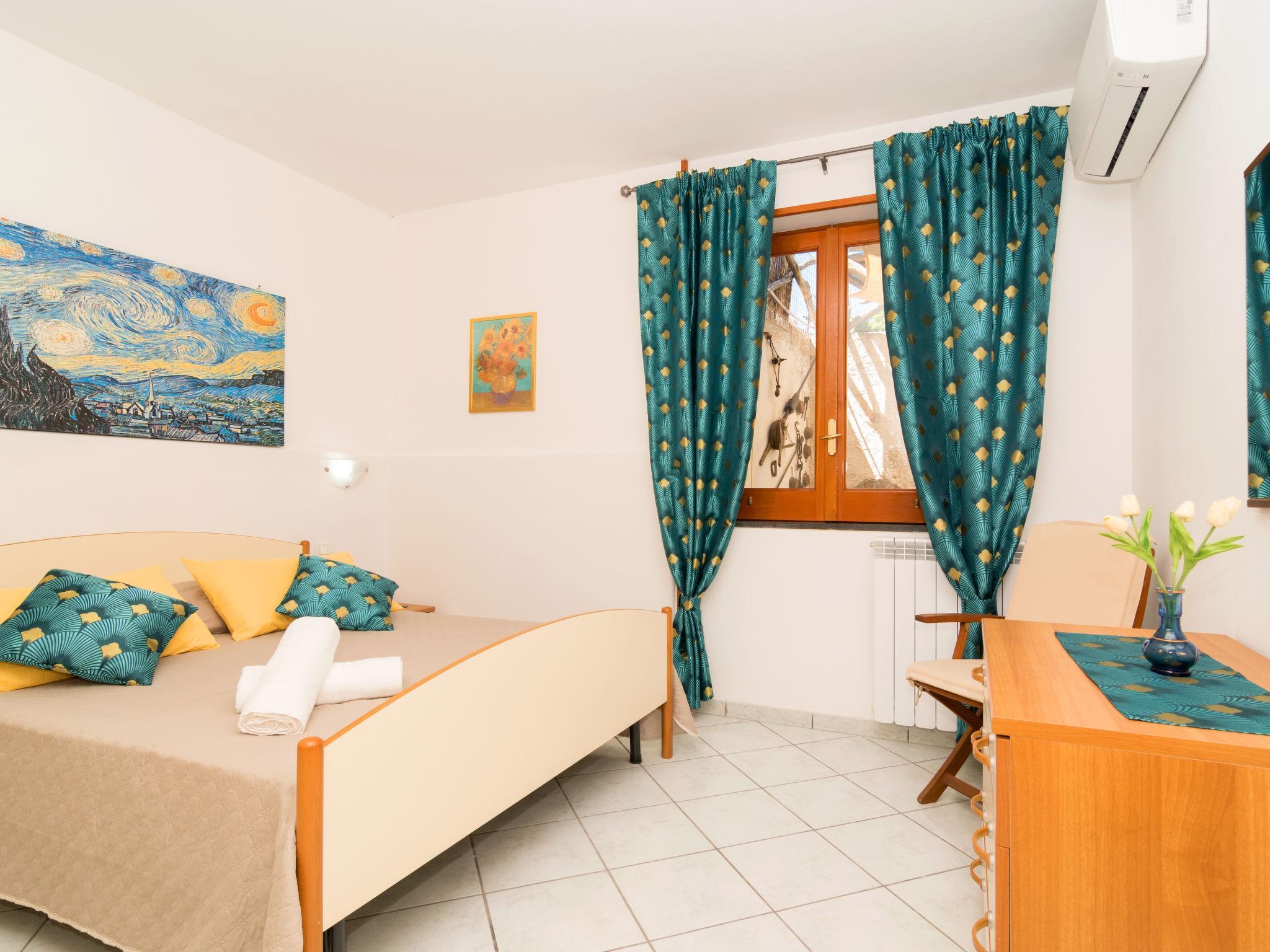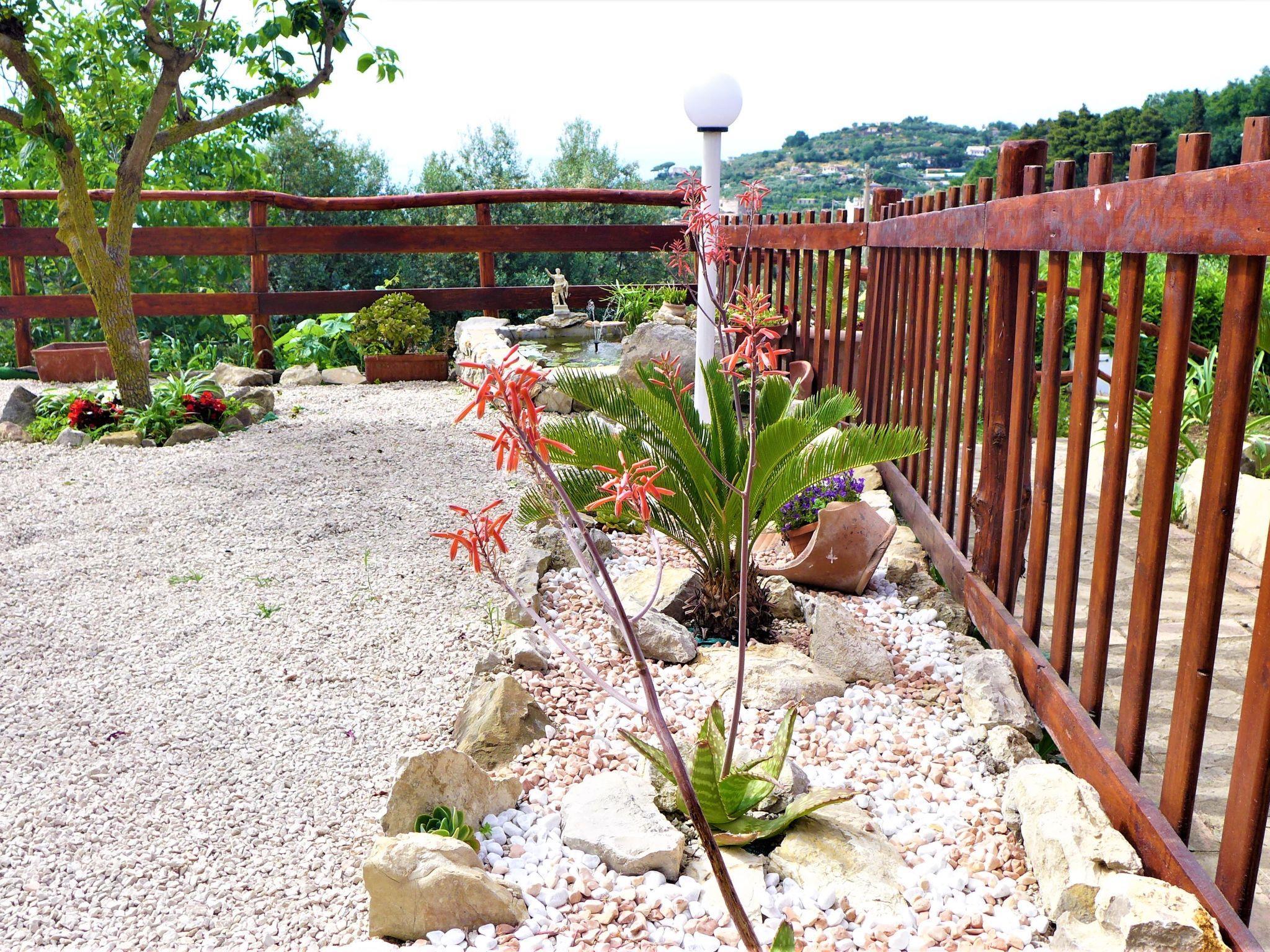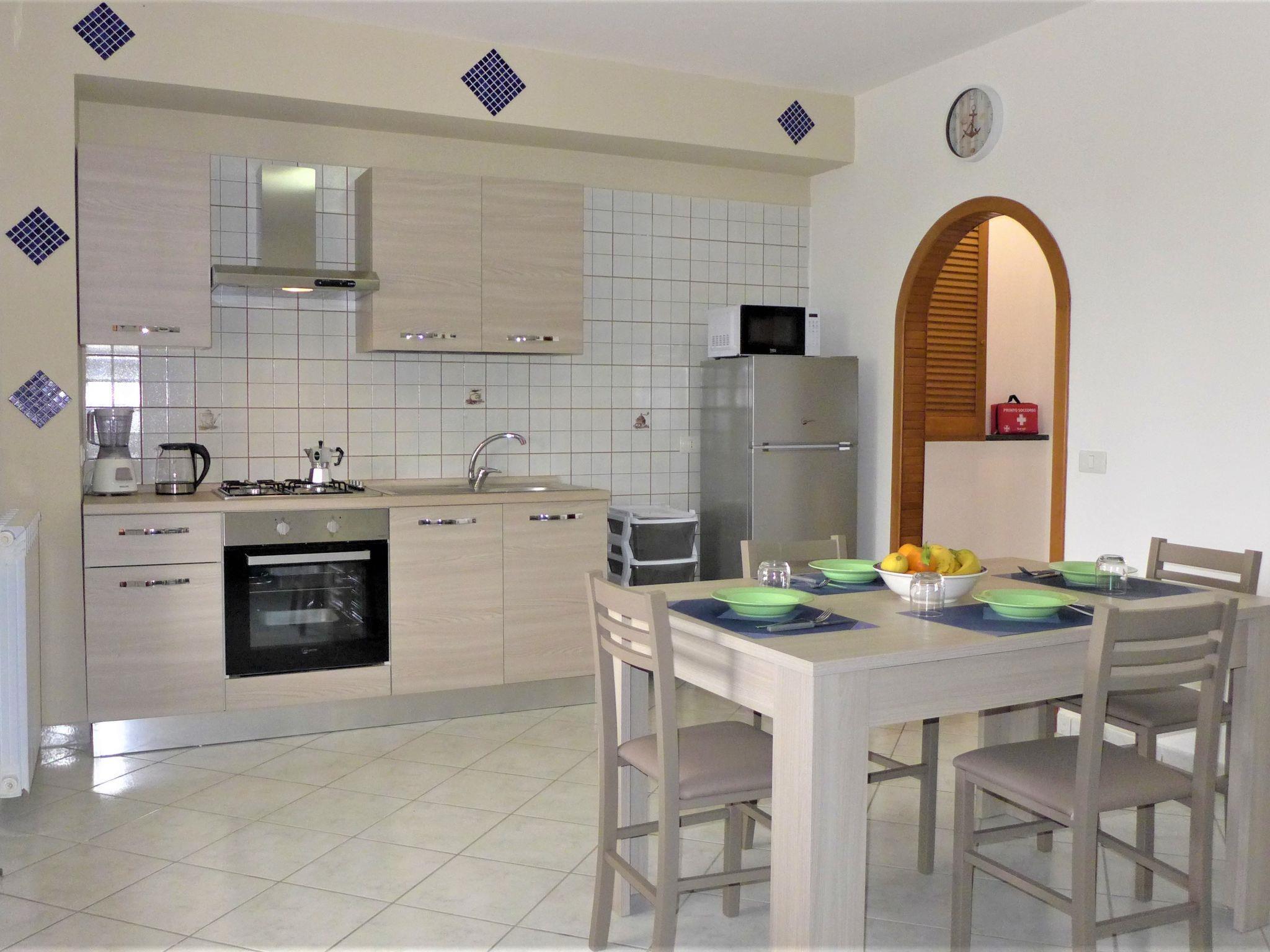 2-room apartment 50 m2, on the ground floor. Fully renovated in 2022, simple and practical furnishings: living/dining room with 1 double sofabed, dining table, kitchen corner, TV and flat screen. Exit to the garden, to the patio. 1 double bedroom. Kitchenette (oven, 4 gas rings, kettle, microwave). Shower/WC, shower/bidet/WC. Air-conditioning, forced-air heating. Heating available only from 01.11. to 31.03. Patio, large garden. Terrace furniture, barbecue, deck chairs. Panoramic view of the sea, the countryside and the resort. Facilities: washing machine, hair dryer. Internet (WiFi, free). Parking (fenced) at the house. Please note: maximum 1 pet/ dog allowed. Smoke alarm. The pool mentioned in the description is for private use. Bedlinen, towels, final cleaning and all energy costs are included. IT063044C2Q38WDOKI