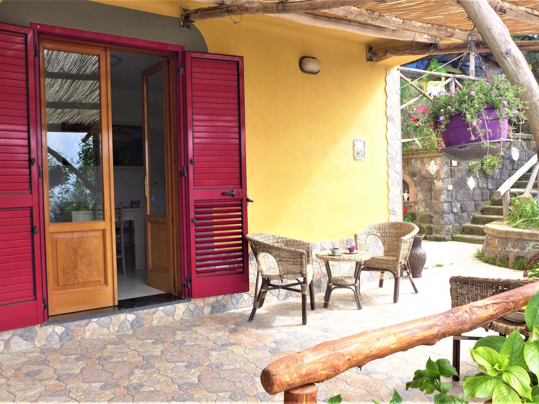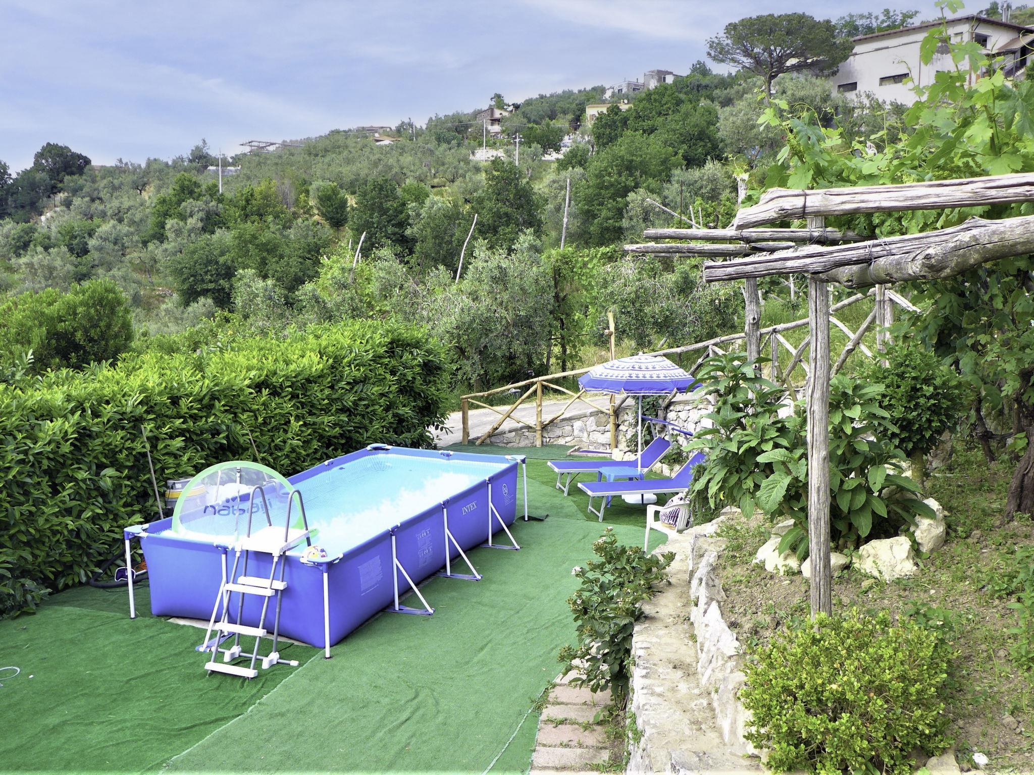 Monticchio 4 km from Massa Lubrense: Beautiful, rustic 2-family house "Nataly Country House", surrounded by trees and fields. 2 apartments in the property. In a sunny, elevated position, 5 km from the sea, 5 km from the beach, in the countryside. Private: beautiful, well-kept garden 300 m2 (fenced) with flowers and trees, lawn for sunbathing, swimming pool (above ground) fenced (2 x 4 m, depth 110 - 110 cm, seasonal availability: 01.May. - 30.Sep.). Outdoor shower, patio (30 m2), garden furniture, barbecue, pool maintenance by the owner/gardener. In the house: WiFi, air conditioning, heating available only from 01.Nov. - 31.Mar.. Parking space n 2 at the house. Grocery, supermarket 50 m, restaurant, bar 100 m, bus stop 20 m, railway station "Sorrento" 9 km, ferry 9 km, pebble beach "Marina del Cantone" 5 km, diving center 5 km. Nearby attractions: Sorrento 9 km, Positano 18 km, Amalfi 35 km, Ischia, Capri, Napoli 60 km. Please note: car recommended. Baby equipment on request (extra), childminding in the season (extra). The keys‘ handover takes place by the agency Interhome in Sant'Agnello, 12 km. The owner lives on the same property. The owner has a dog.
