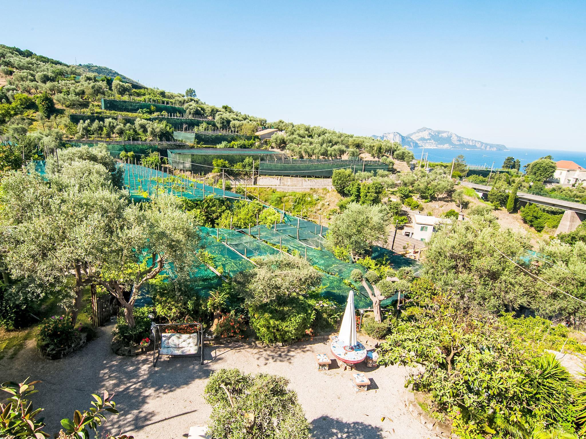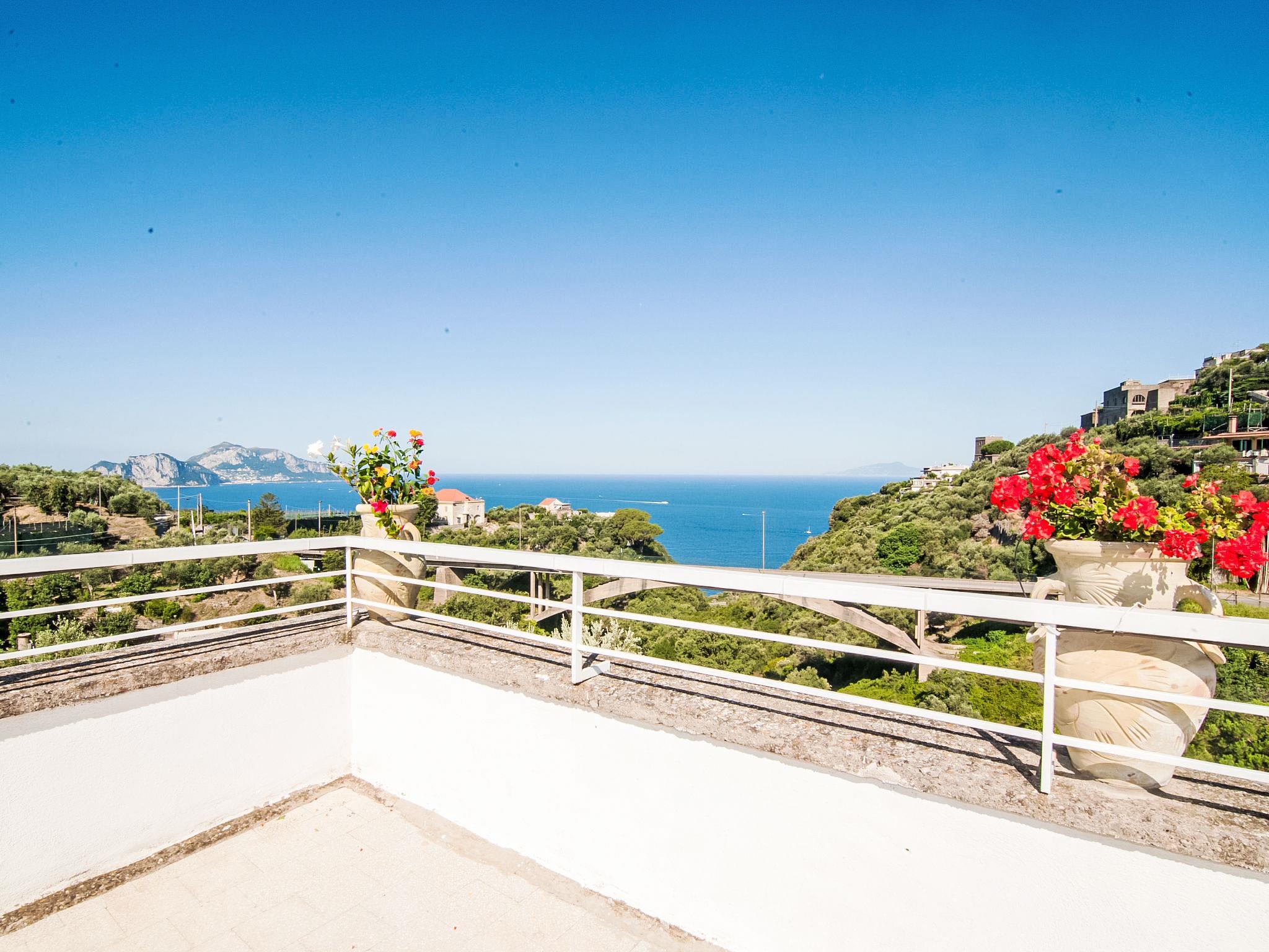 5-room house 110 m2 on 2 levels. Practical and rustic furnishings: living/dining room with open-hearth fireplace, dining table and kitchen corner. Exit to the garden. 1 double bedroom with shower/bidet/WC. Kitchenette (5 hot plates, oven, dishwasher, microwave, freezer). Exit to the garden. Shower/WC. (extra), air-conditioning, forced-air heating (extra). Heating available only from 01.11. to 31.03. Upper floor: 1 double bedroom with shower/bidet/WC and air conditioning. Exit to the balcony. 1 room with 3 beds and air conditioning. Exit to the balcony. 1 double bedroom with 1 bed, 1 double bed, shower/bidet/WC and air conditioning. Exit to the balcony. Open small living/sleeping room. Large terrace 70 m2, patio, garden. Terrace furniture, barbecue, deck chairs. Marvellous panoramic view of the sea, the garden, the countryside and Capri Island. Facilities: washing machine, hair dryer. Internet (WiFi, free). Parking (2 cars) at the house. Suitable for families. Maximum 1 pet/ dog allowed. IT063044C2OKLQ99DB