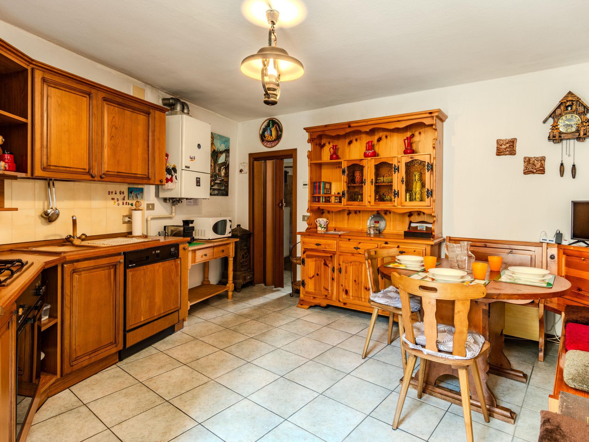 "Casa Vista Cascata", 3-room apartment 55 m2 on 1st floor. Simple and rustic furnishings: dining room with dining table. 1 double bedroom with panoramic window. 1 room with 1 bed (80 cm, length 190 cm). Exit to the balcony. Kitchen-/living room (oven, Gas stove, 4 gas rings, microwave, freezer) with dining nook and TV. Shower/bidet/WC. Gas heating. Heating available only from 15.10. to 15.04. Parquet floors, natural stone floors. Small balcony. Balcony furniture. Very beautiful view of the lake, the mountains and the resort. Facilities: washing machine. Please note: non-smokers only, no parking. IT013161C28456Q8W5