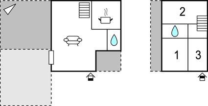 Badezimmer 4m2 (nr. 1) - WC. Warmes und kaltes Wasser. Dusche
