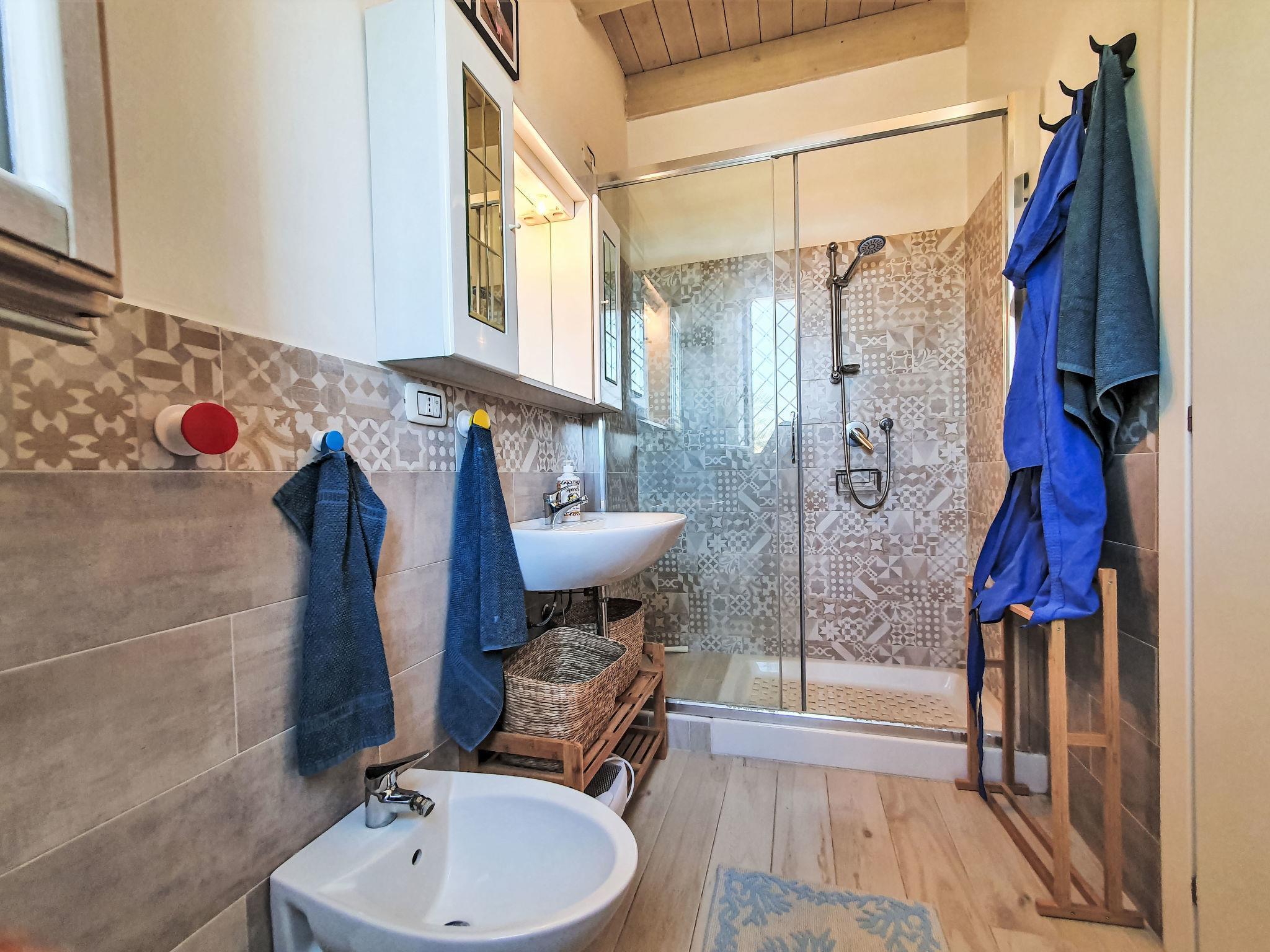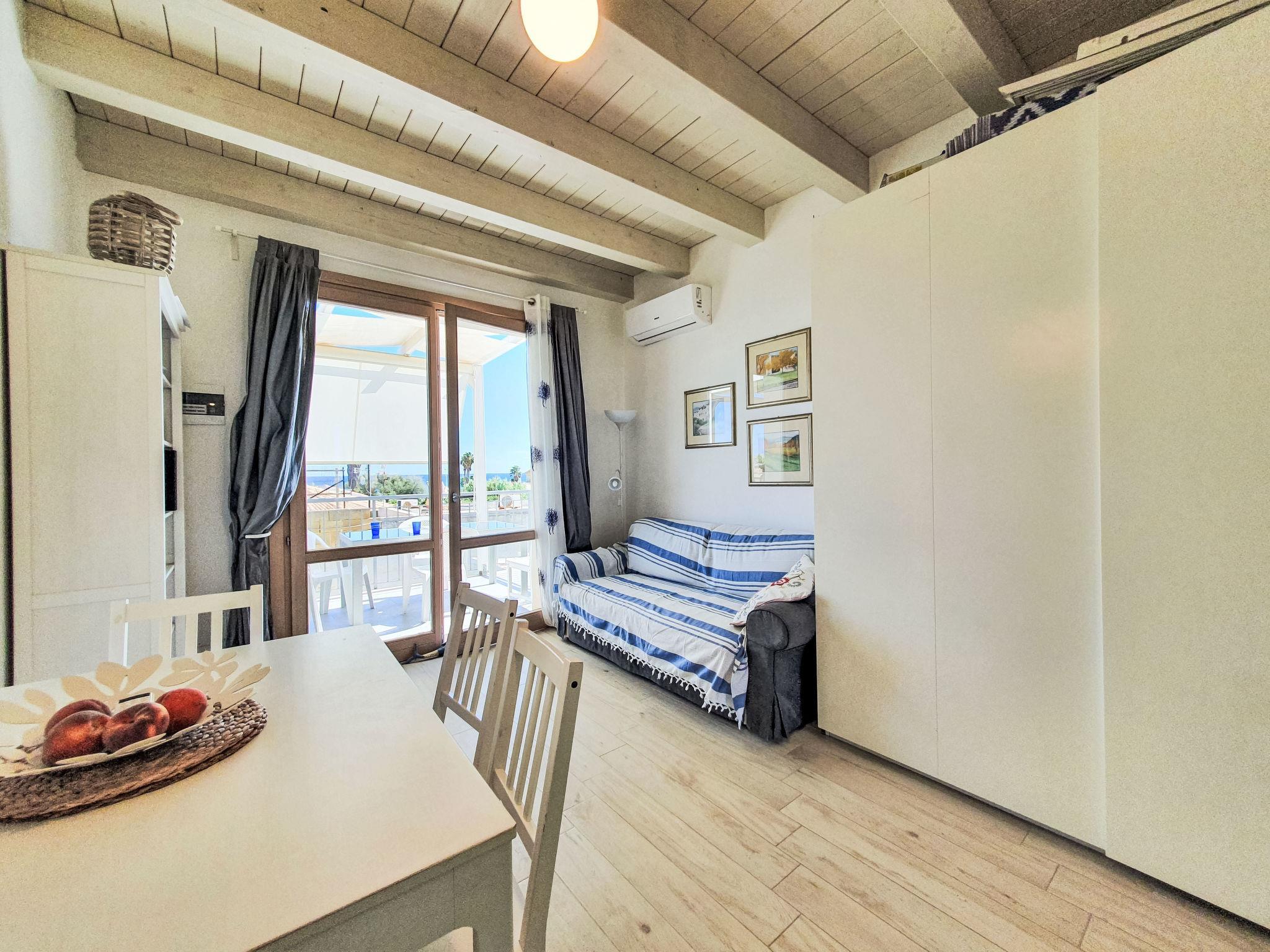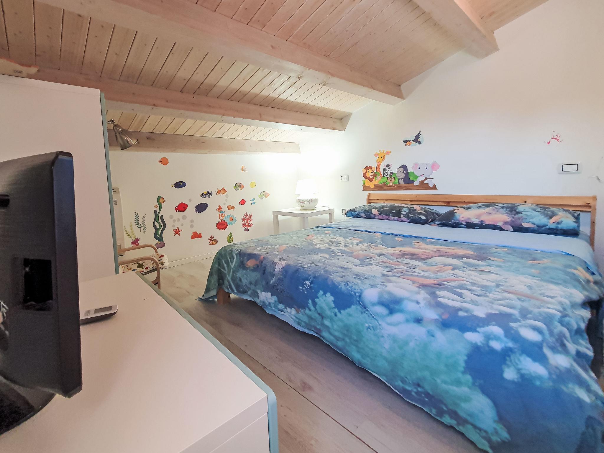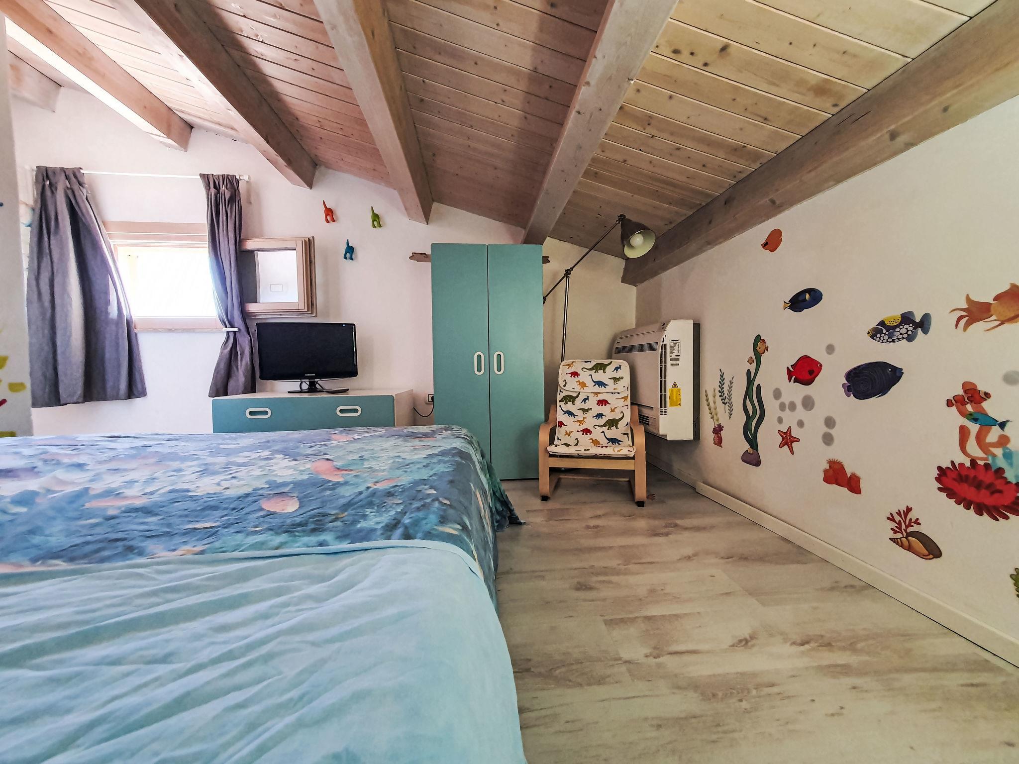 "Casa di Arianna", 3-room apartment 50 m2 on 2 levels on 1st floor. Partly with sloping ceilings, comfortable and beautiful furnishings: living/dining room with TV, air conditioning and forced-air heating. Exit to the terrace. Small kitchen in the entrance (oven, dishwasher, 4 induction hot plates, electric coffee machine). Shower/bidet/WC. Boiler (50 litres). Upper floor: 1 double bedroom with sloping ceilings, ceiling height 110 - 180 cm with TV, air conditioning and forced-air heating. 1 double bedroom with sloping ceilings, ceiling height 110 - 180 cm with air conditioning and forced-air heating. Heating, forced-air heating. Heating available only from 01.12. to 31.03. Terrace 15 m2 partly roofed. Terrace furniture. Partial view of the sea. Facilities: washing machine, iron, mosquito net, children's high chair, baby cot for up to 2 year olds (extra), hair dryer. Internet (WiFi, free). Parking space n 15 (1 car). IT089013C247KRDZ3D