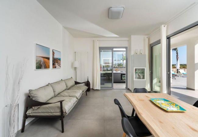 Villa Nica is a beautiful villa with private pool situated just a stone’s throw away from the beach of San Lorenzo, a popular seaside resort in the south-east of Sicily, halfway between the Vendicari nature reserve and the fishing village of Marzamemi. Surrounded by a well-tended garden with lawn and a large terrace equipped with outdoor kitchen and bbq, this cosy dwelling has a delightful salt-purified pool (chlorine-free). Recently built, Villa Nica features bright, comfortable rooms, all on one level and open to the outside, including a modern living-dining room with kitchen, three bedrooms and three bathrooms with shower. The villa comes also with air conditioning, internet Wi-Fi, 4 TVs, satellite receiver, washing machine and dishwasher. The location of the property, which is within easy walking distance of San Lorenzo’s beach, allows visitors to explore the south-east of Sicily, from Noto to Syracuse and the baroque towns of the Val di Noto, to Taormina and Mount Etna’s Park.
