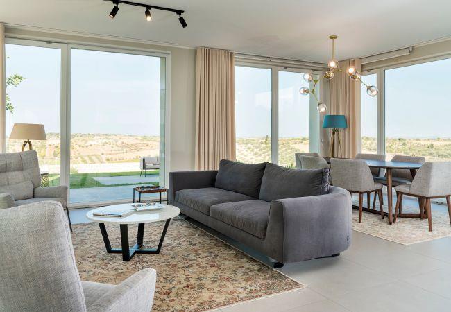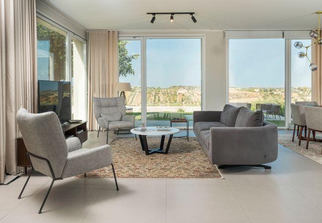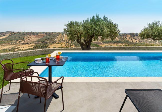 Set in a lovely rural setting, framed by olive and carob trees and dry stone walls, ColleVerde offers a large garden, a beautiful private pool and a terrace equipped for al fresco dining. Spread over one level, its cosy and comfortable interiors include a bright living area with a sofa, a dining table, a kitchen and a small bathroom, a master bedroom with a king size bed, a TV and an en-suite bathroom with tub, and two double bedrooms with en-suite shower. The villa comes also with Wi-Fi, satellite receiver, microwave, dishwasher and washing machine. All rooms are air-conditioned.