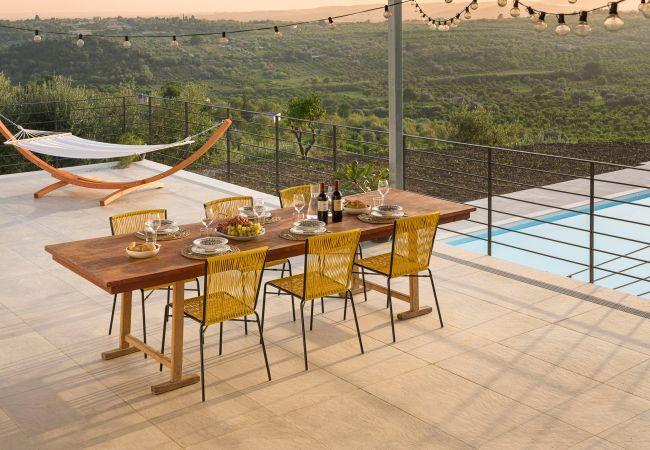 Exclusive villa with swimming pool situated in a commanding position, not far from Noto. Nestled in the Sicilian countryside, Casa Tancredi is surrounded by a well-tended garden and large, equipped terraces, offering wonderful, panoramic views over the surrounding landscape and the sea. Recently renovated with great attention to details, the property consists of a main house and a detached annex. Its cosy, welcoming rooms include a kitchen/living room, two bedrooms and two bathrooms with shower in the main house, and a third bedroom with minibar and en-suite shower in the annex. Fully air-conditioned, the villa features Wi-Fi, two smart TVs, two fridges, a dishwasher and a washing machine. The villa is conveniently located just a few minutes’ drive from the baroque towns of the Noto Valley, the unspoiled Vendicari nature reserve and the picturesque seaside resorts of Portopalo di Capo Passero and Marzamemi.