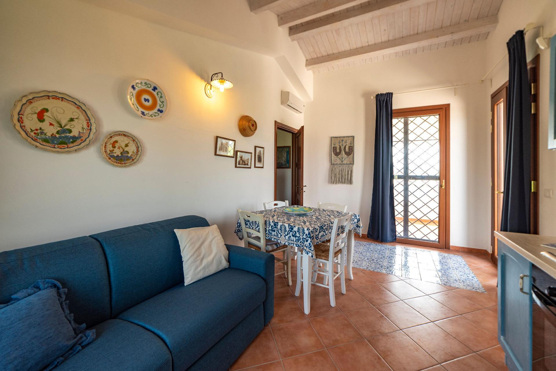 Spacious two-room apartment consisting of a double bedroom, large living room/kitchen with double sofa bed. The house is mainly furnished with poor antiques, with great attention to detail (ceramics from S. Stefano di Camastra, antique ornaments, handmade typical dishes). The kitchen is equipped with an oven and all the accessories and utensils you may need for cooking