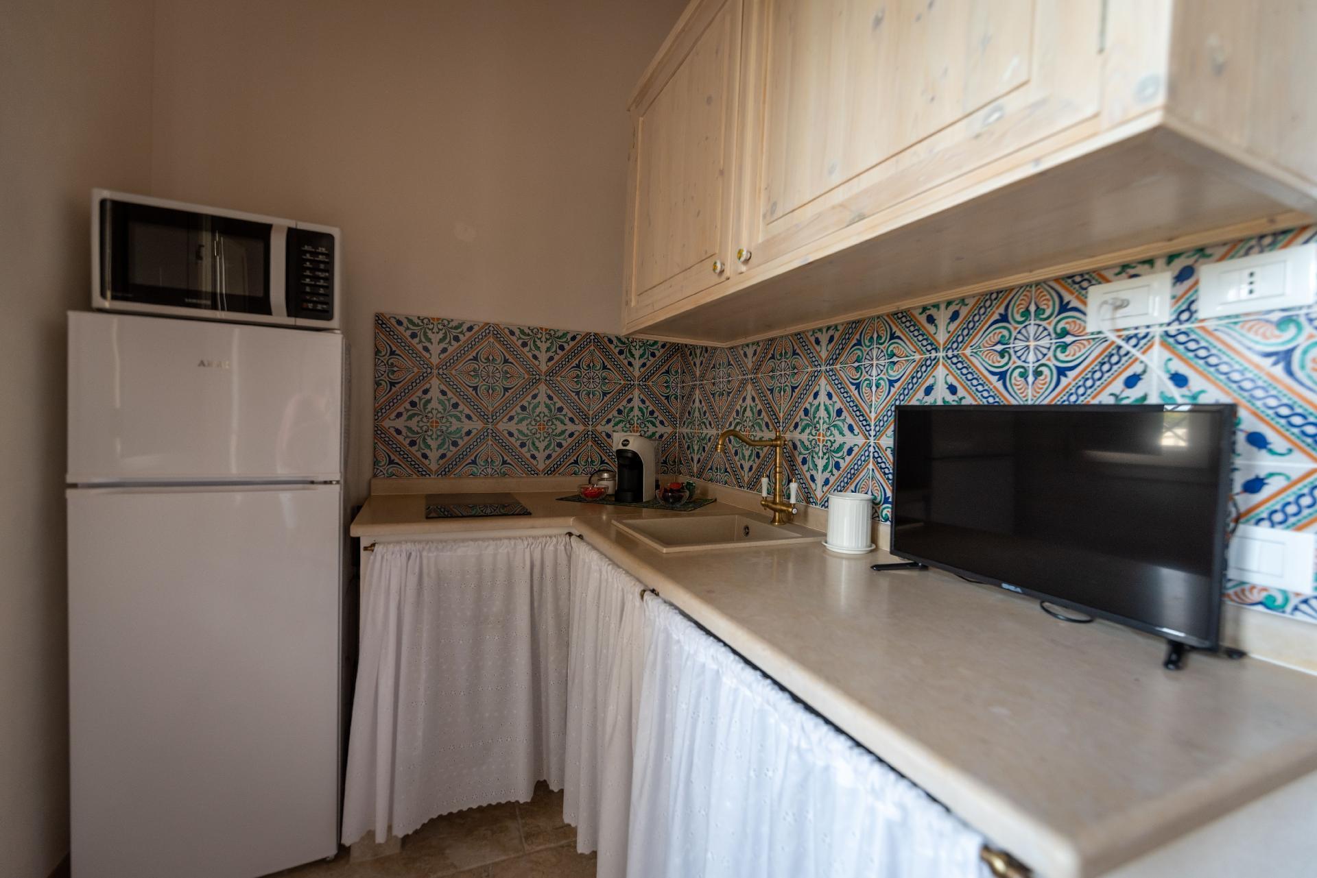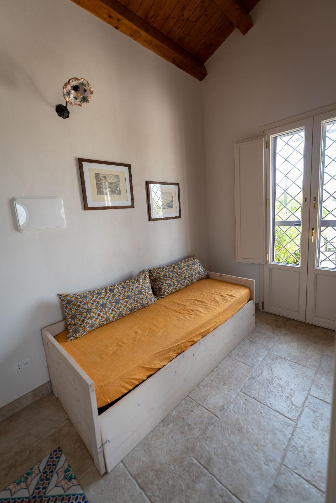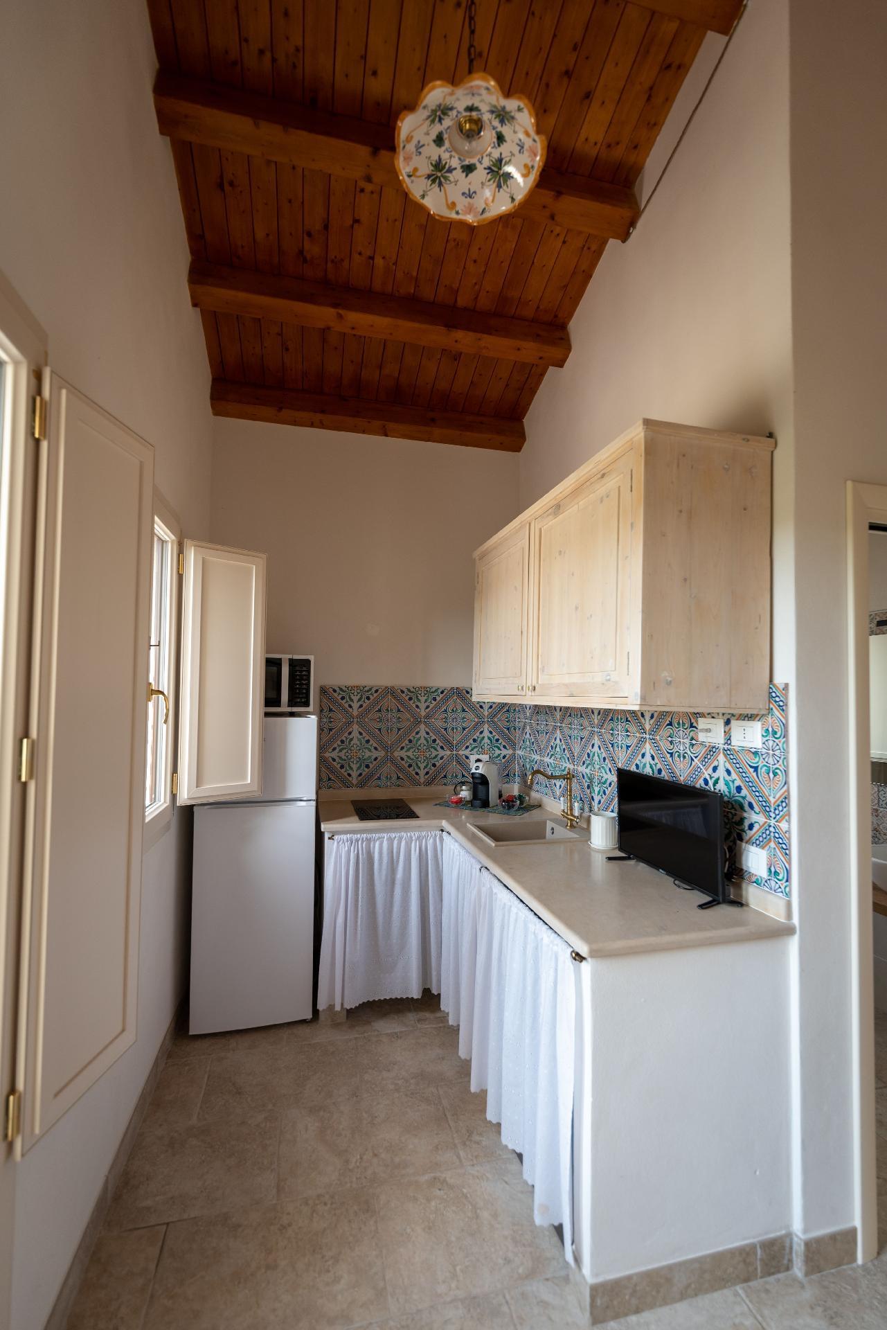Two-room apartment consisting of double bedroom, bathroom with shower, living room/kitchen with sofa bed for 1/2 person. Brickwork kitchen with induction hob, dishwasher, microwave oven, with all the accessories and utensils needed for cooking. The house is mainly furnished with poor antique furniture, with great attention to detail (ceramics from S. Stefano di Camastra, period photos, typical dishes), accessories made by local craftsmen