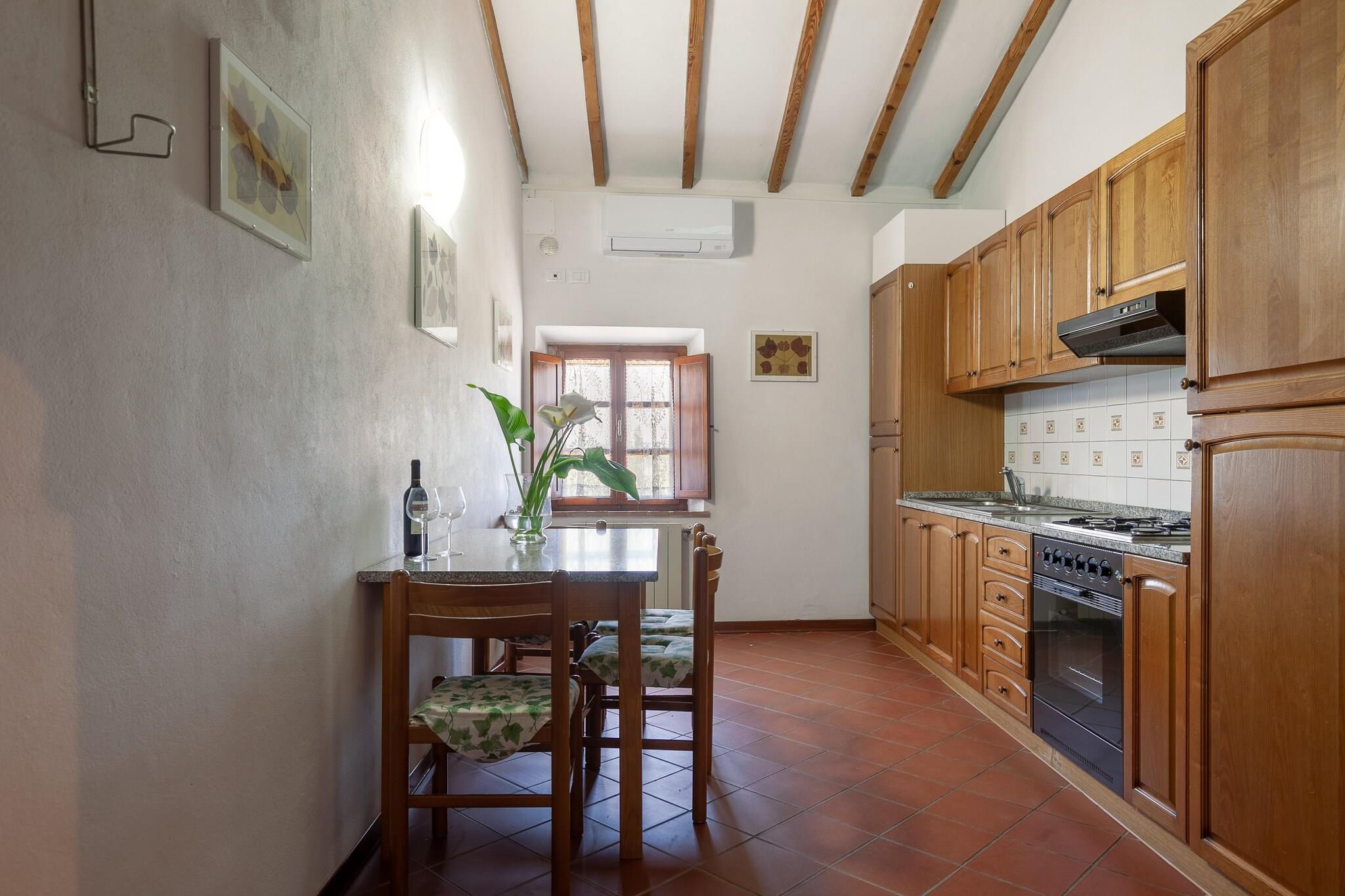 Nestled amidst rolling green hills, this inviting apartment in Fabbrica offers the perfect blend of rustic character and comfort. The open kitchen and living area create a cozy space for unwinding, while the mezzanine with additional beds adds a touch of charm. Outside, a well-kept garden with a BBQ corner is ideal for leisurely afternoons, and the shared swimming pool is perfect for a refreshing dip under the Tuscan sun. A children's bed is available on request, making this a family-friendly retreat. Just 9 km away lies the enchanting village of Peccioli—brimming with artisan shops and medieval character. The apartment is an ideal base for exploring Tuscany’s iconic destinations, including Pisa’s Leaning Tower, the artistic heart of Florence, and the dramatic skyline of San Gimignano. Volterra’s Etruscan charm and Siena’s Gothic beauty are also within reach. For outdoor lovers, scenic cycling trails wind through cypress-lined roads, and the beaches of the Tyrrhenian coast are just a short drive away. Tuscan traditions come alive here—not just in scenery, but on the plate. Every Monday, guests can enjoy an authentic Tuscan dinner on-site, and Thursdays are reserved for wood-fired pizza nights. Local wineries offer tastings by request, allowing you to sample Chianti and other regional wines. In Peccioli, try "La Vecchia Carraia" for hearty local fare or "Pasticceria Ferretti" for unforgettable desserts. Simple, flavorful, and rooted in tradition—this is Tuscany at its tastiest.