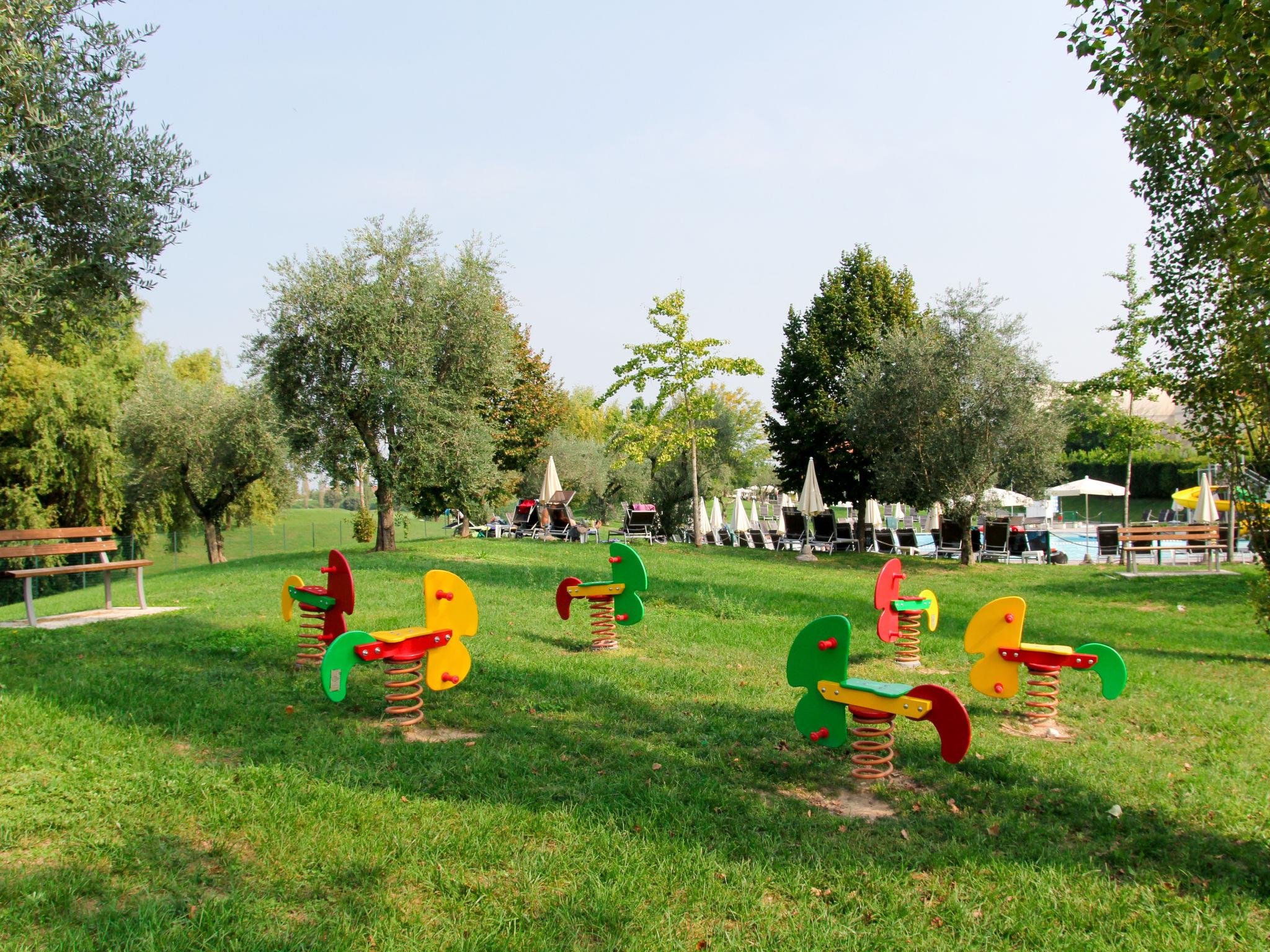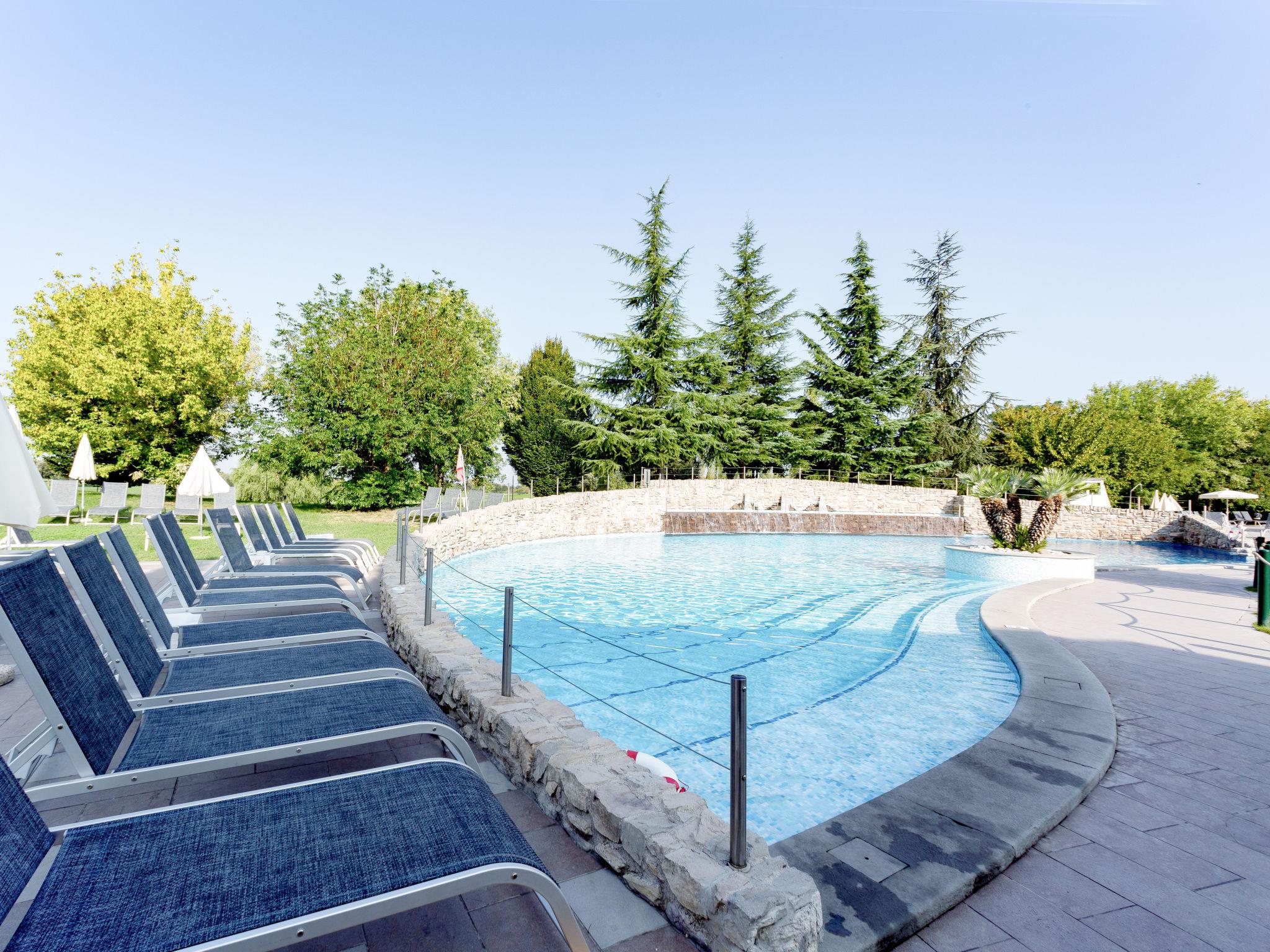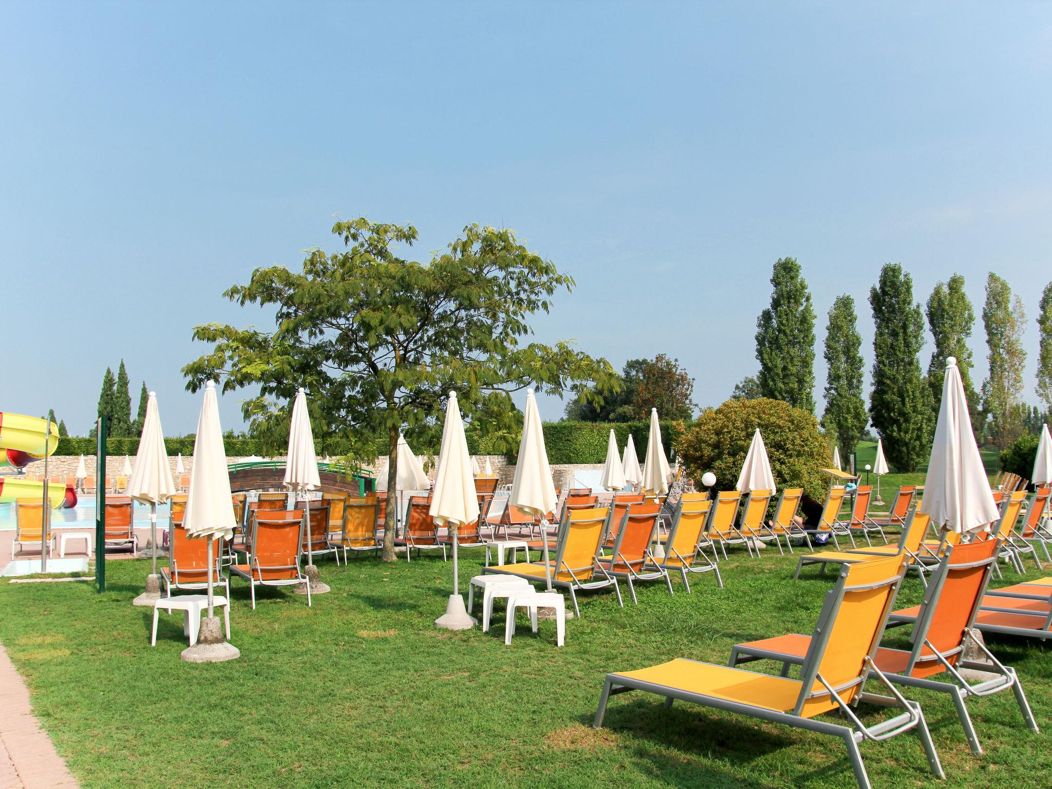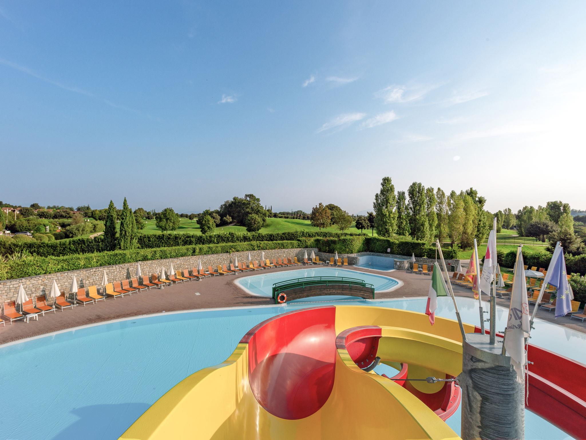 Very large resort "Eden", 2 storeys. 173 apartments in the residence. Outside the resort, 4 km from the centre of Peschiera del Garda, 4 km from the lake, 4 km from the beach, on the golf course. For shared use: property 80 ha, well-kept garden with meadow, lawn for sunbathing, 4 swimming pools, indoor pool (seasonal availability: 28.Mar. - 02.Nov.). WC in the pool area, children's pool, slide, outdoor shower, tennis (extra), children's playground. In the complex: reception, restaurant, bar, lounge, WiFi, sauna (extra). Fitness room, steam room (extra). Hot tub (extra). Spa area (extra) table tennis, storage room for bicycles, washing machine (extra), tumble dryer (for shared use, extra), bicycle rental. Room cleaning on request (extra). Bread roll service, breakfast and half board possible on request (extra). Parking on the premises, communal covered parking at 700 m. Supermarket 4 km, bus stop "Shuttle Bus Peschiera gratis" 500 m, railway station "Peschiera del Garda" 4 km, ferry "Peschiera del Garda" 4 km, pebble beach 4 km. Golf course (18 hole) 1.5 km. Nearby attractions: Lazise 13 km, Sirmione 17 km, Verona 30 km, Mantova 35 km, Gardaland 5 km. Please note: entertainment in the season. Suitable for families.