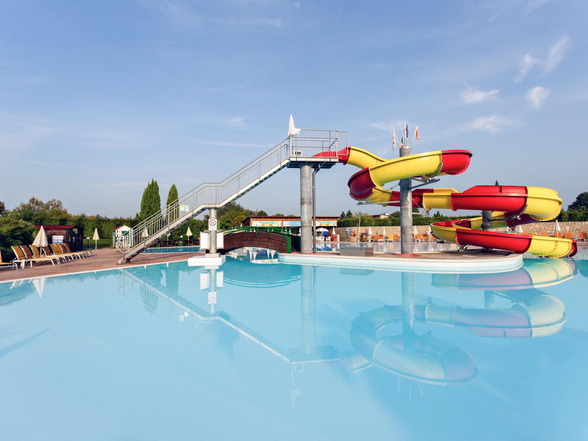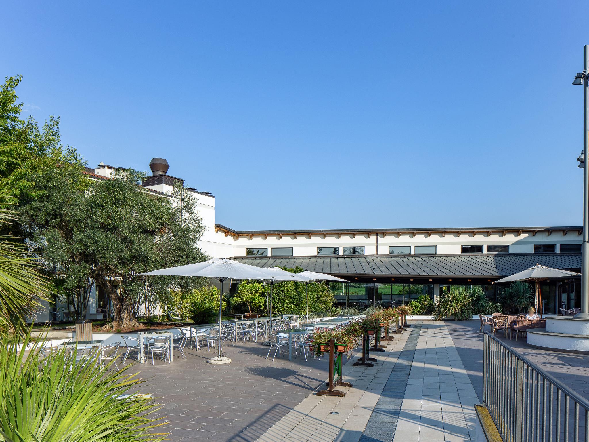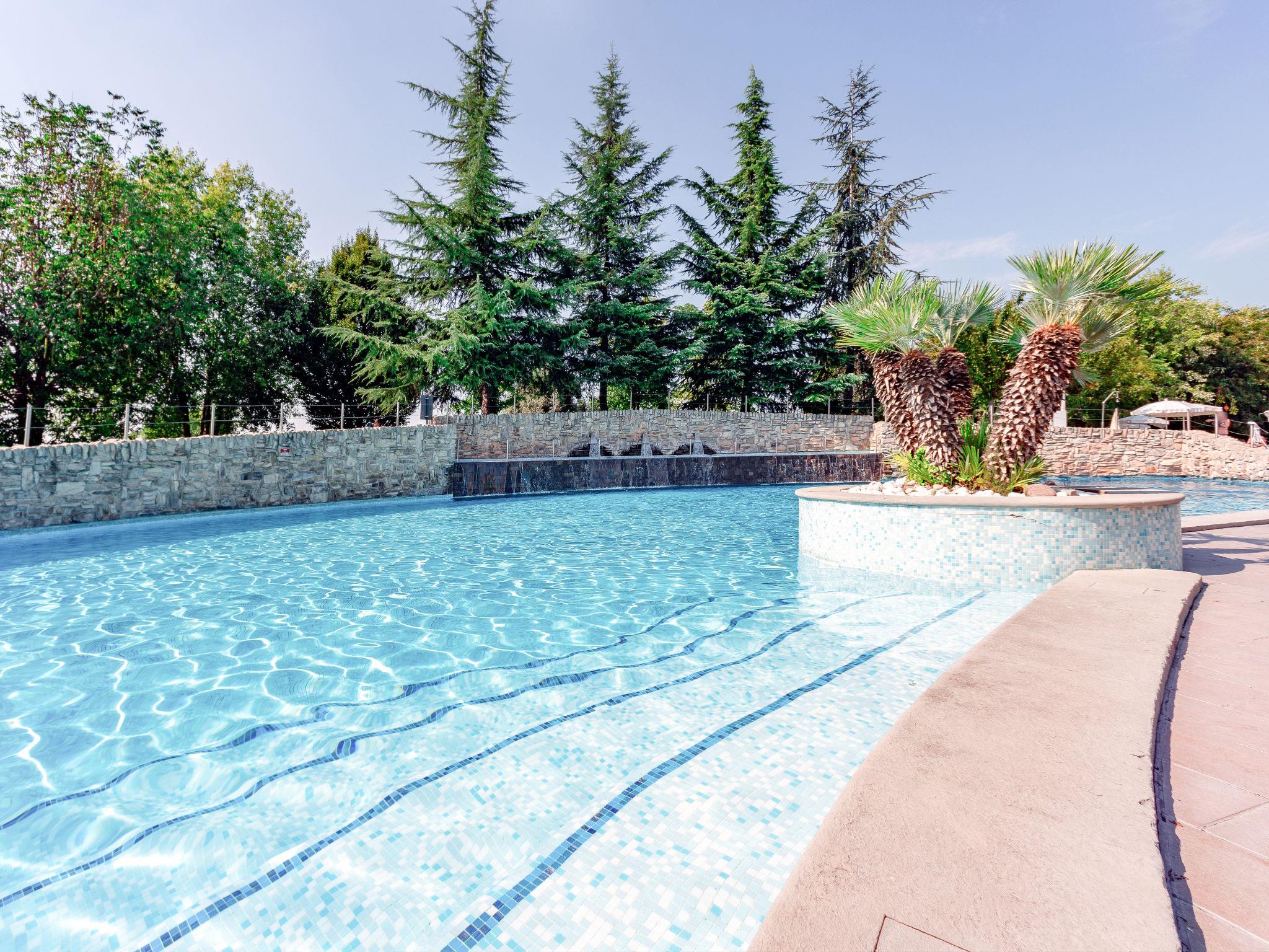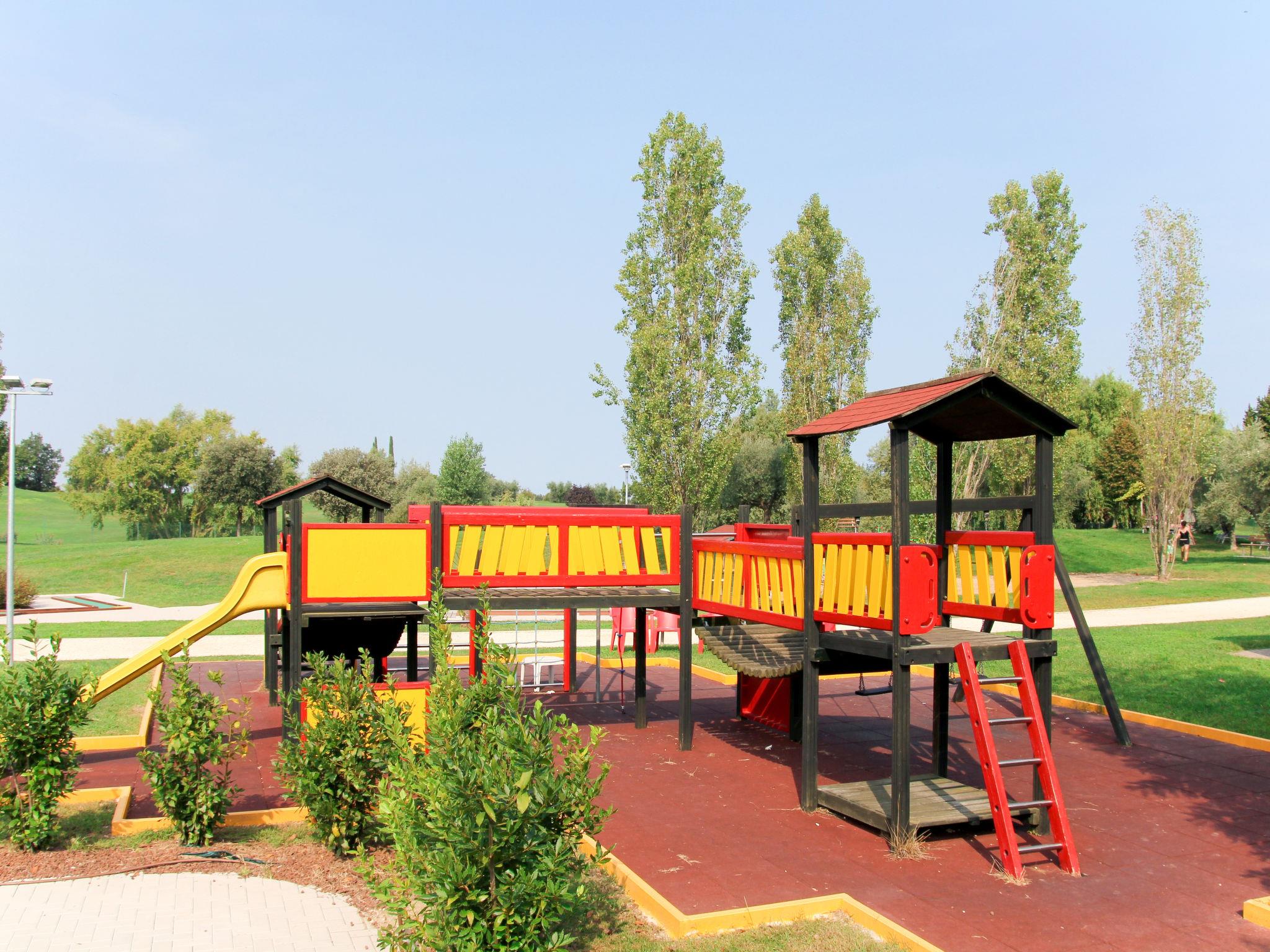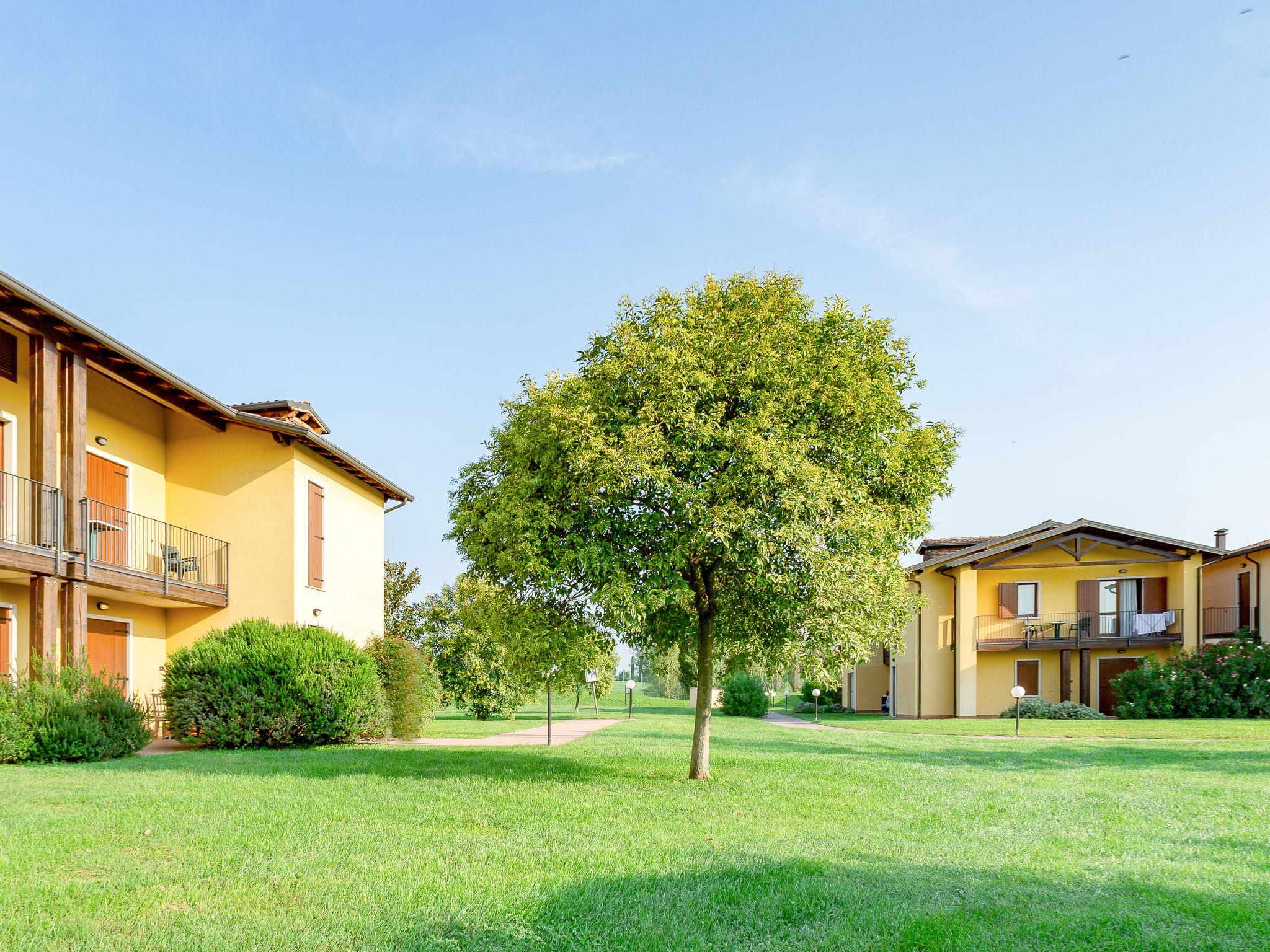 Very large resort "Eden", 2 storeys. 173 apartments in the residence. Outside the resort, 4 km from the centre of Peschiera del Garda, 4 km from the lake, 4 km from the beach, on the golf course. For shared use: property 80 ha, well-kept garden with meadow, lawn for sunbathing, 4 swimming pools, indoor pool (seasonal availability: 28.Mar. - 02.Nov.). WC in the pool area, children's pool, slide, outdoor shower, tennis (extra), children's playground. In the complex: reception, restaurant, bar, lounge, WiFi, sauna (extra). Fitness room, steam room (extra). Hot tub (extra). Spa area (extra) table tennis, storage room for bicycles, washing machine (extra), tumble dryer (for shared use, extra), bicycle rental. Room cleaning on request (extra). Bread roll service, breakfast and half board possible on request (extra). Parking on the premises, communal covered parking at 700 m. Supermarket 4 km, bus stop "Shuttle Bus Peschiera gratis" 500 m, railway station "Peschiera del Garda" 4 km, ferry "Peschiera del Garda" 4 km, pebble beach 4 km. Golf course (18 hole) 1.5 km. Nearby attractions: Lazise 13 km, Sirmione 17 km, Verona 30 km, Mantova 35 km, Gardaland 5 km. Please note: entertainment in the season. Suitable for families.
