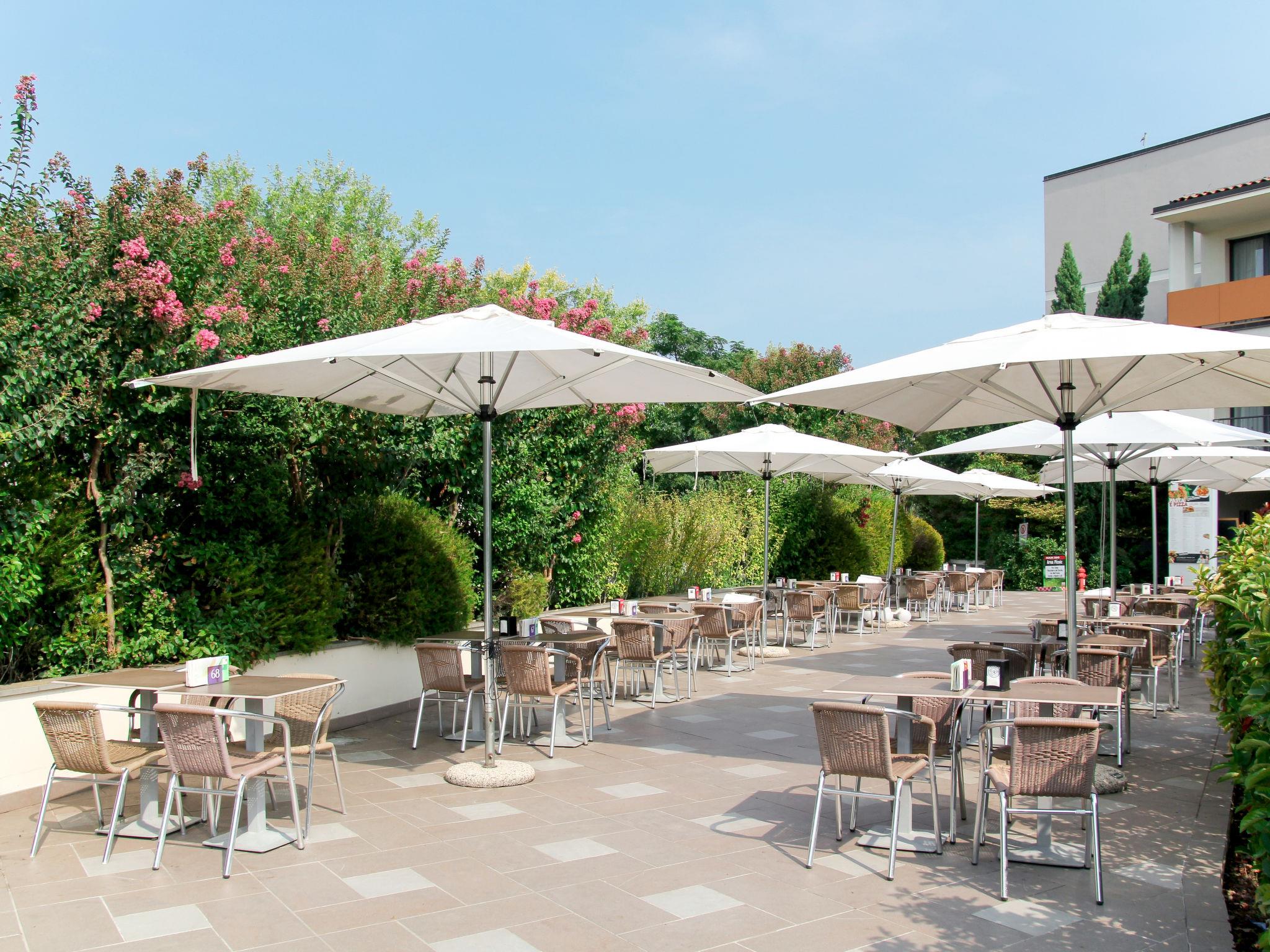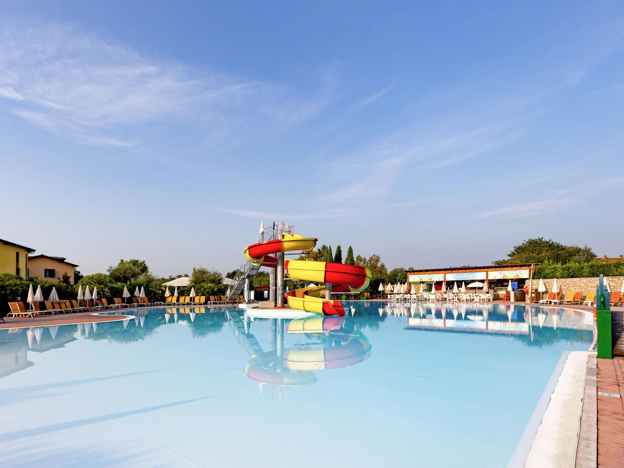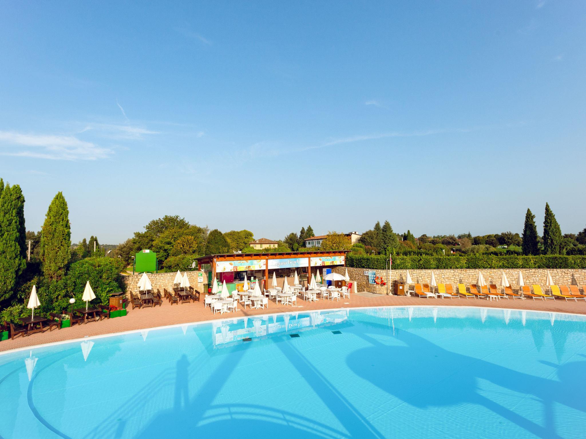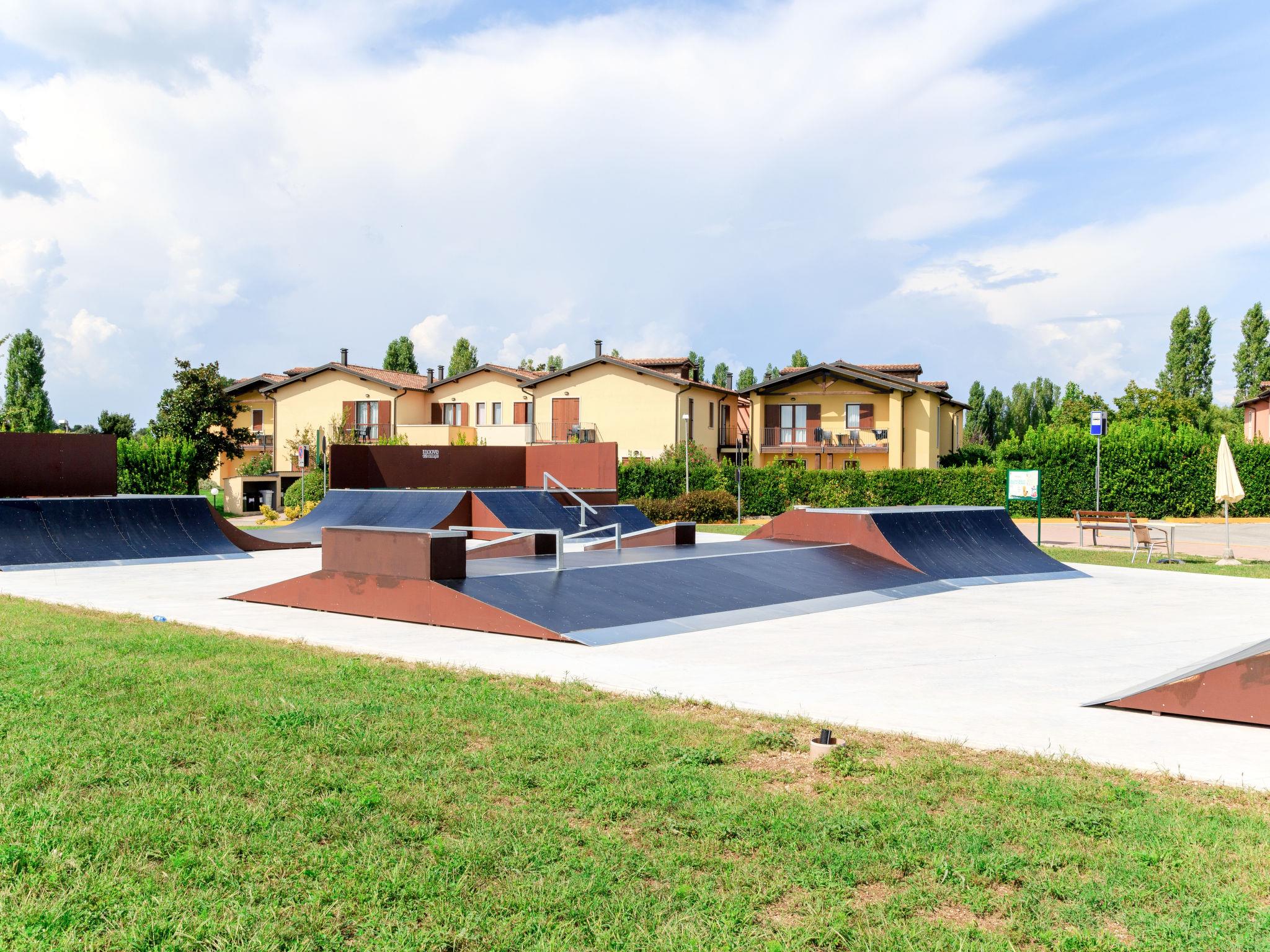 Very large resort "Eden", 2 storeys. 173 apartments in the residence. Outside the resort, 4 km from the centre of Peschiera del Garda, 4 km from the lake, 4 km from the beach, on the golf course. For shared use: property 80 ha, well-kept garden with meadow, lawn for sunbathing, 4 swimming pools, indoor pool (seasonal availability: 28.Mar. - 02.Nov.). WC in the pool area, children's pool, slide, outdoor shower, tennis (extra), children's playground. In the complex: reception, restaurant, bar, lounge, WiFi, sauna (extra). Fitness room, steam room (extra). Hot tub (extra). Spa area (extra) table tennis, storage room for bicycles, washing machine (extra), tumble dryer (for shared use, extra), bicycle rental. Room cleaning on request (extra). Bread roll service, breakfast and half board possible on request (extra). Parking on the premises, communal covered parking at 700 m. Supermarket 4 km, bus stop "Shuttle Bus Peschiera gratis" 500 m, railway station "Peschiera del Garda" 4 km, ferry "Peschiera del Garda" 4 km, pebble beach 4 km. Golf course (18 hole) 1.5 km. Nearby attractions: Lazise 13 km, Sirmione 17 km, Verona 30 km, Mantova 35 km, Gardaland 5 km. Please note: entertainment in the season. Suitable for families.