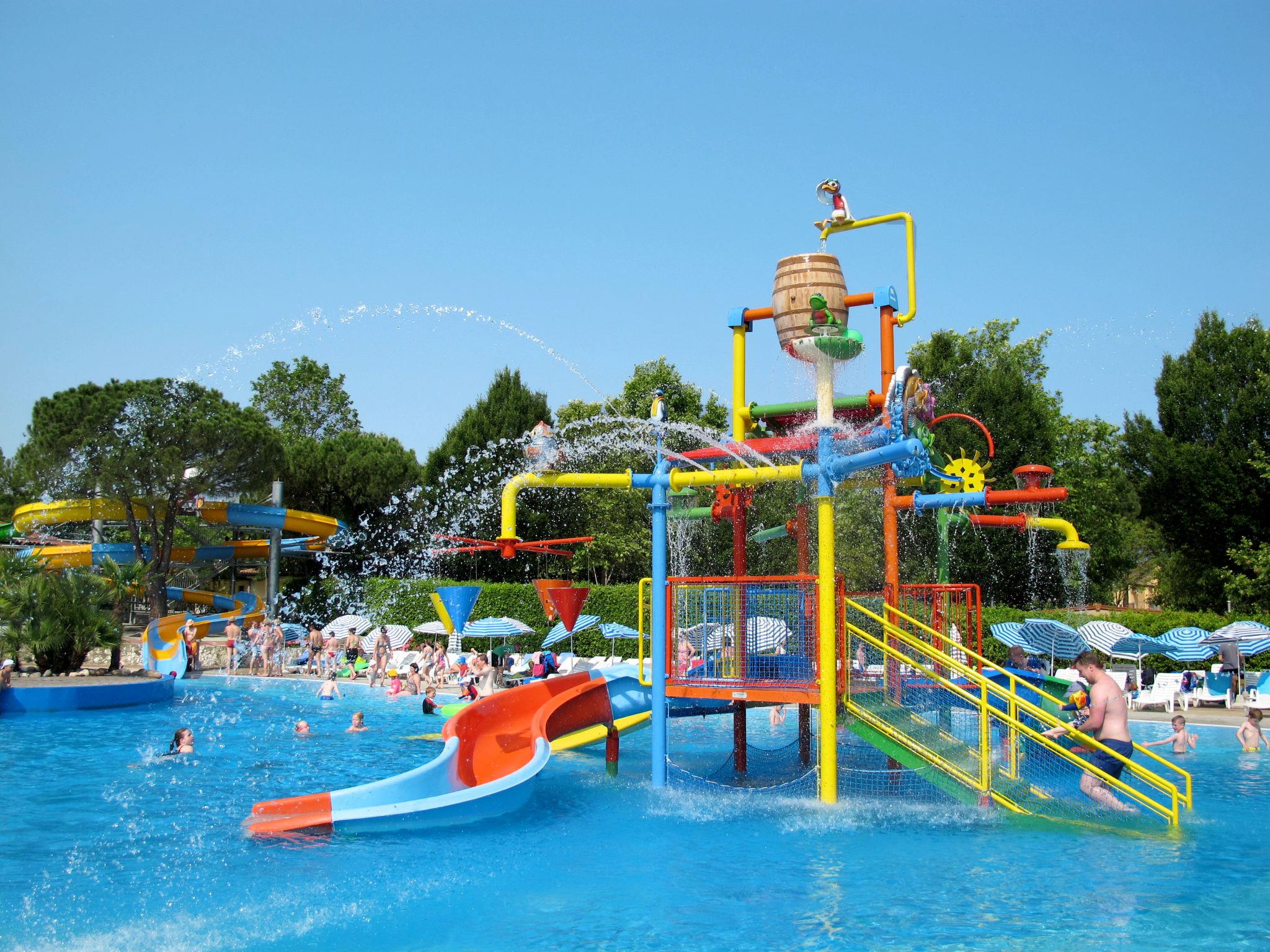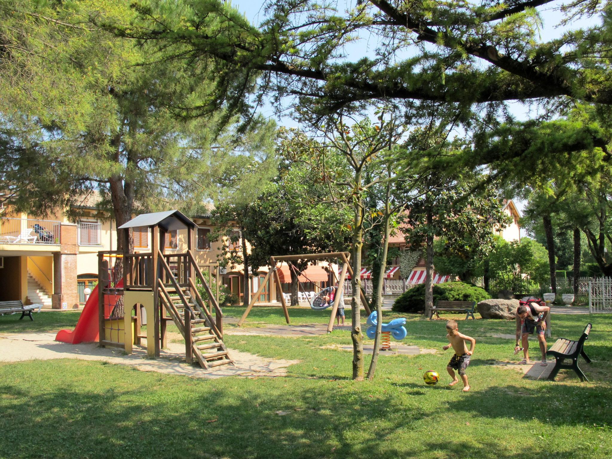 Very large, child friendly resort "Bella Italia". 1 km from the centre of Peschiera del Garda, 270 m from the lake, 270 m from the beach, direct access to the beach. For shared use: property 30 ha (fenced) with lawn and trees, 4 swimming pools (seasonal availability: 01.Apr. - 30.Sep.). WC in the pool area, children's pool, slide, outdoor shower, tennis (1 x hard court), table tennis, basketball, beach volleyball, children's playground. In the complex: reception, restaurant, bar, WiFi, table tennis, shopping facilities, boutique, kiosk, washing machine, tumble dryer (for shared use, extra), bicycle rental. Available: boat (extra). Linen change weekly (suppl. charge extra). Towel change weekly (suppl. charge extra). Half board possible on request (extra). Parking on the premises. Bus stop 500 m, pebble beach 270 m. Golf course (18 hole) 20 km. Nearby attractions: Sirmione 13 km, Verona 31 km. Please note: reception open 08:00-22:00 hrs. Entertainment. Suitable for families, baby equipment on request (included). Groups of teenagers on request only.