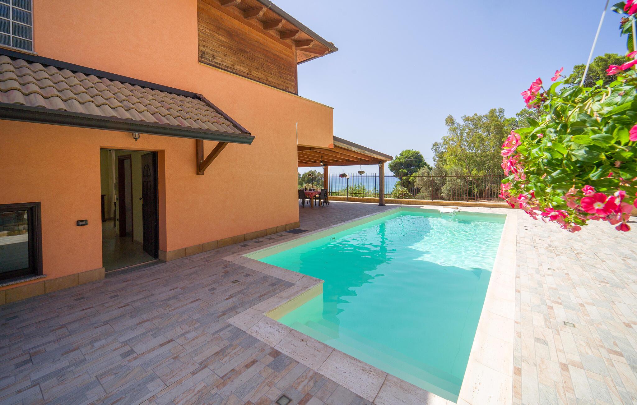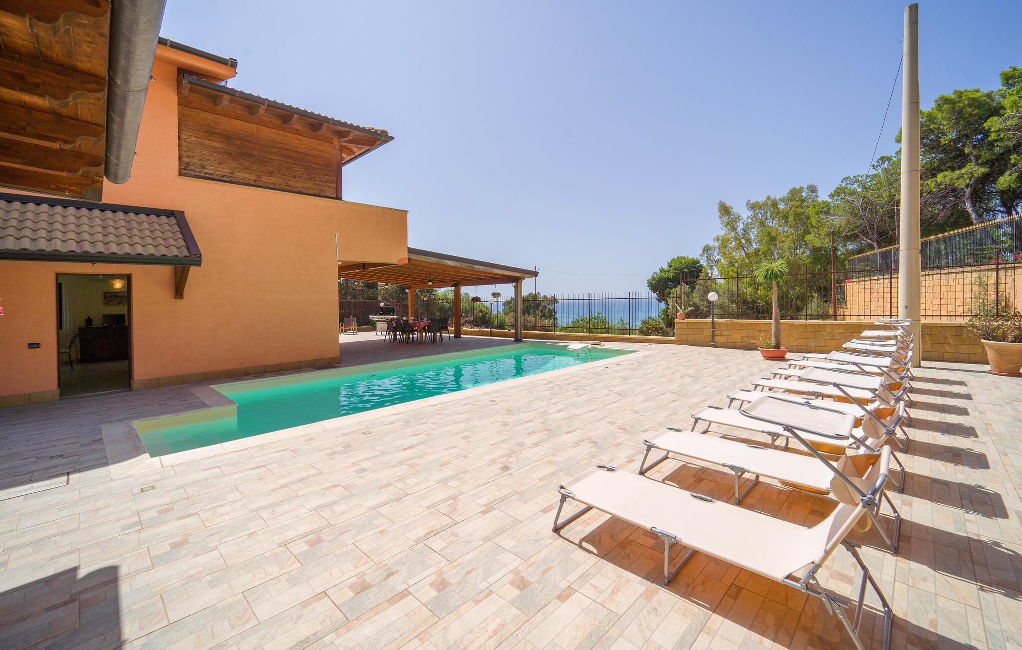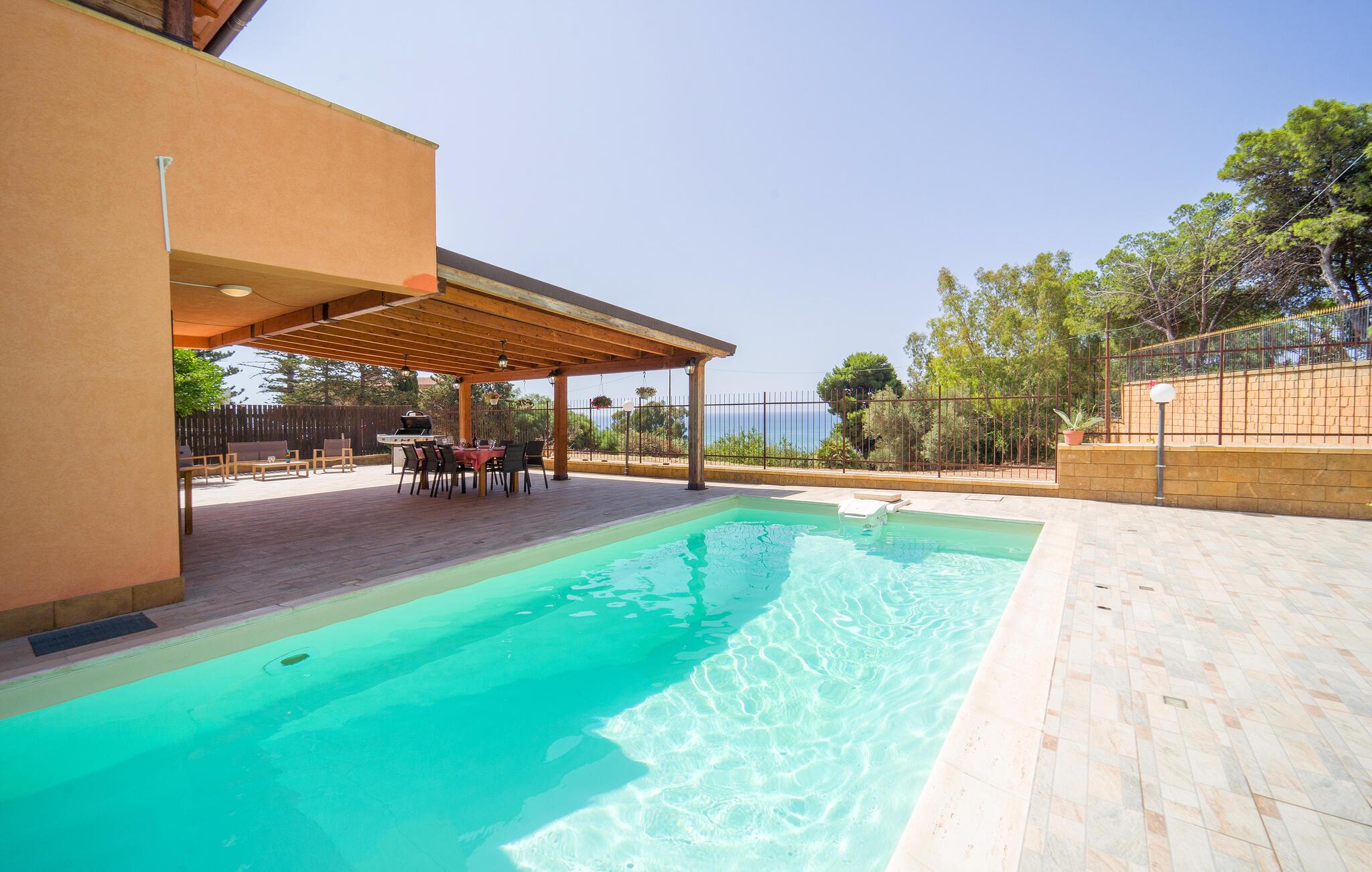 Genießen Sie einen unvergesslichen Urlaub in diesem komfortablen Ferienhaus mit Pool und bezauberndem Meerblick.