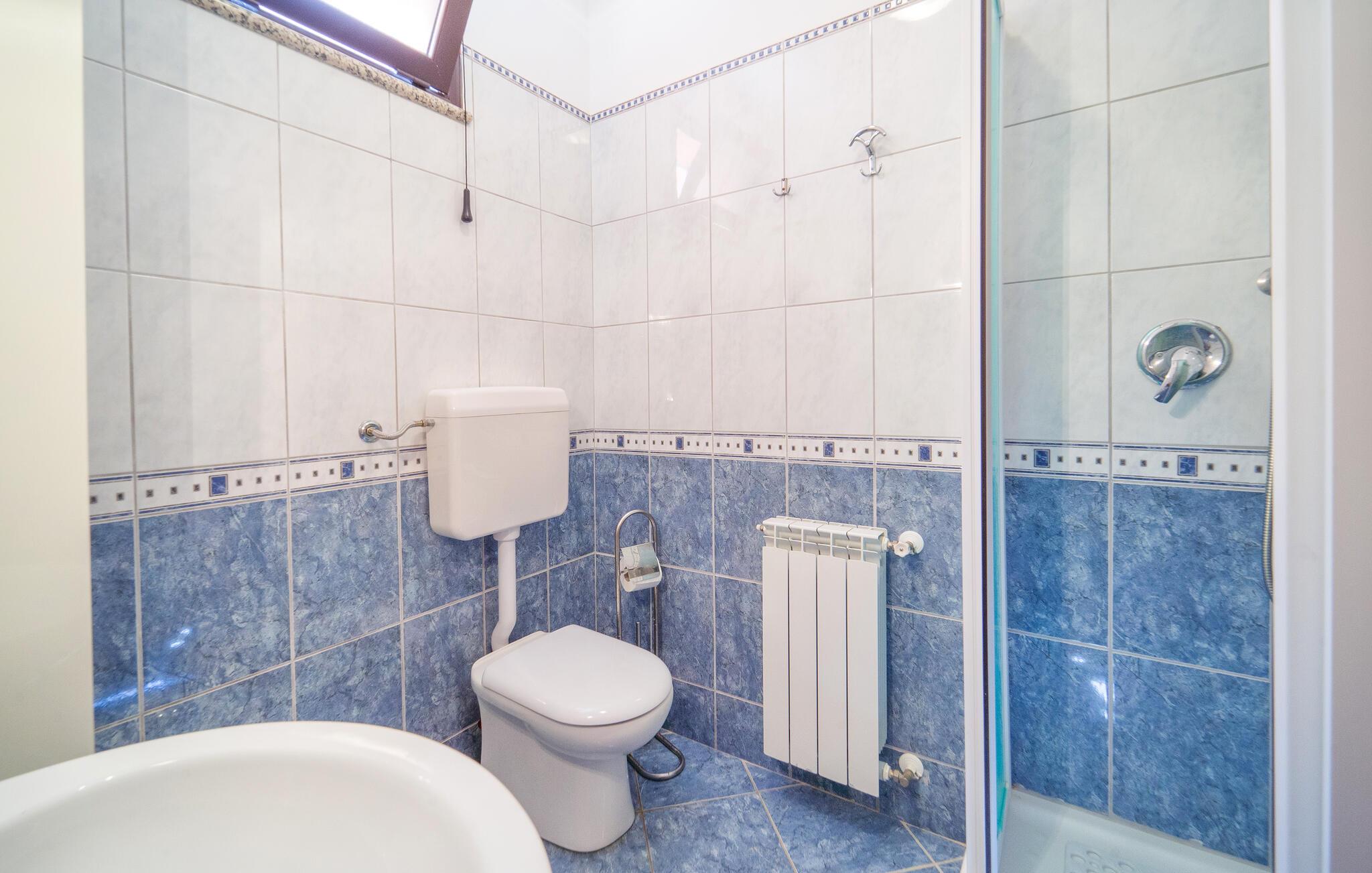 - WC mit warmem und kaltem Wasser, Dusche