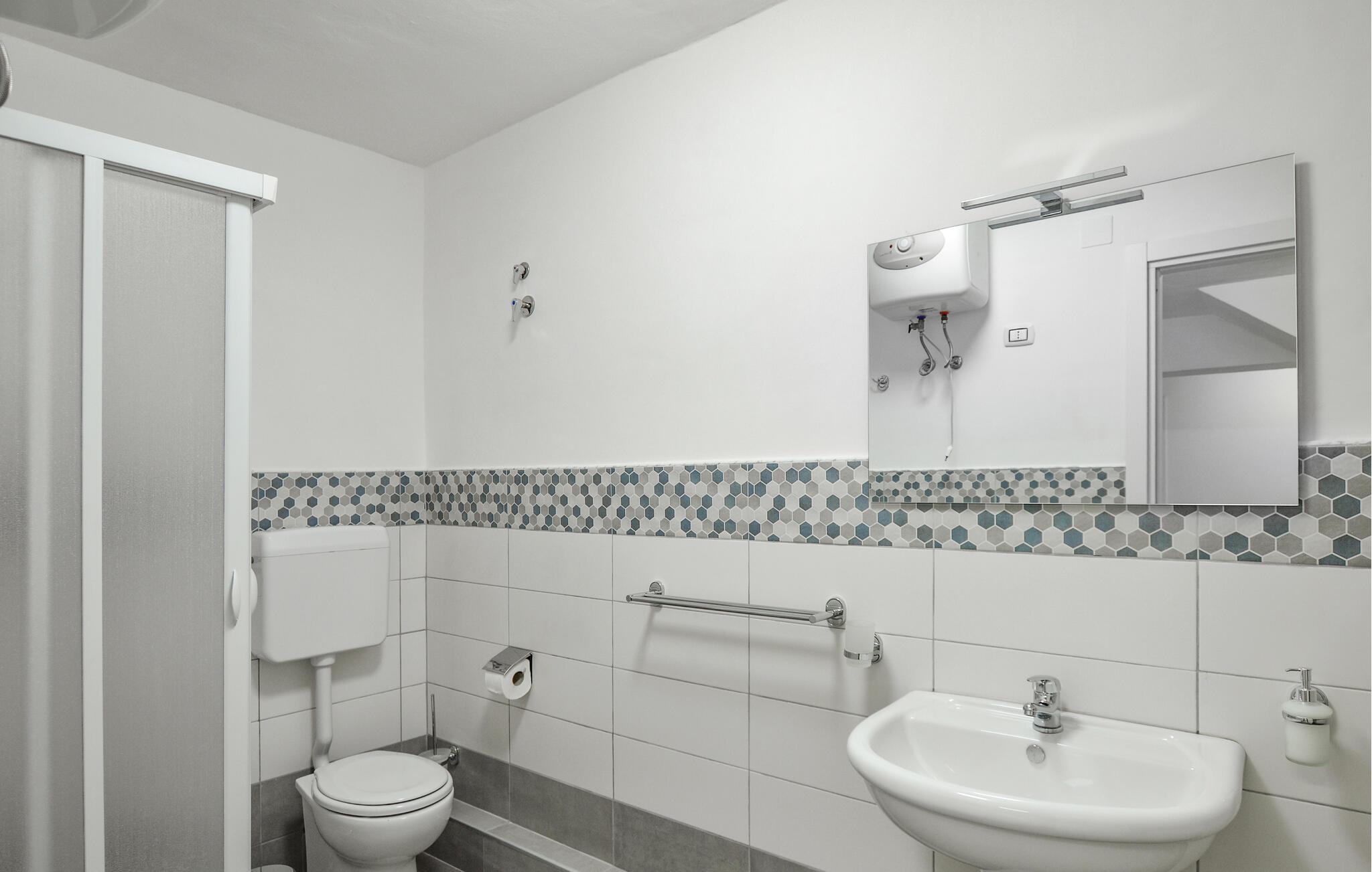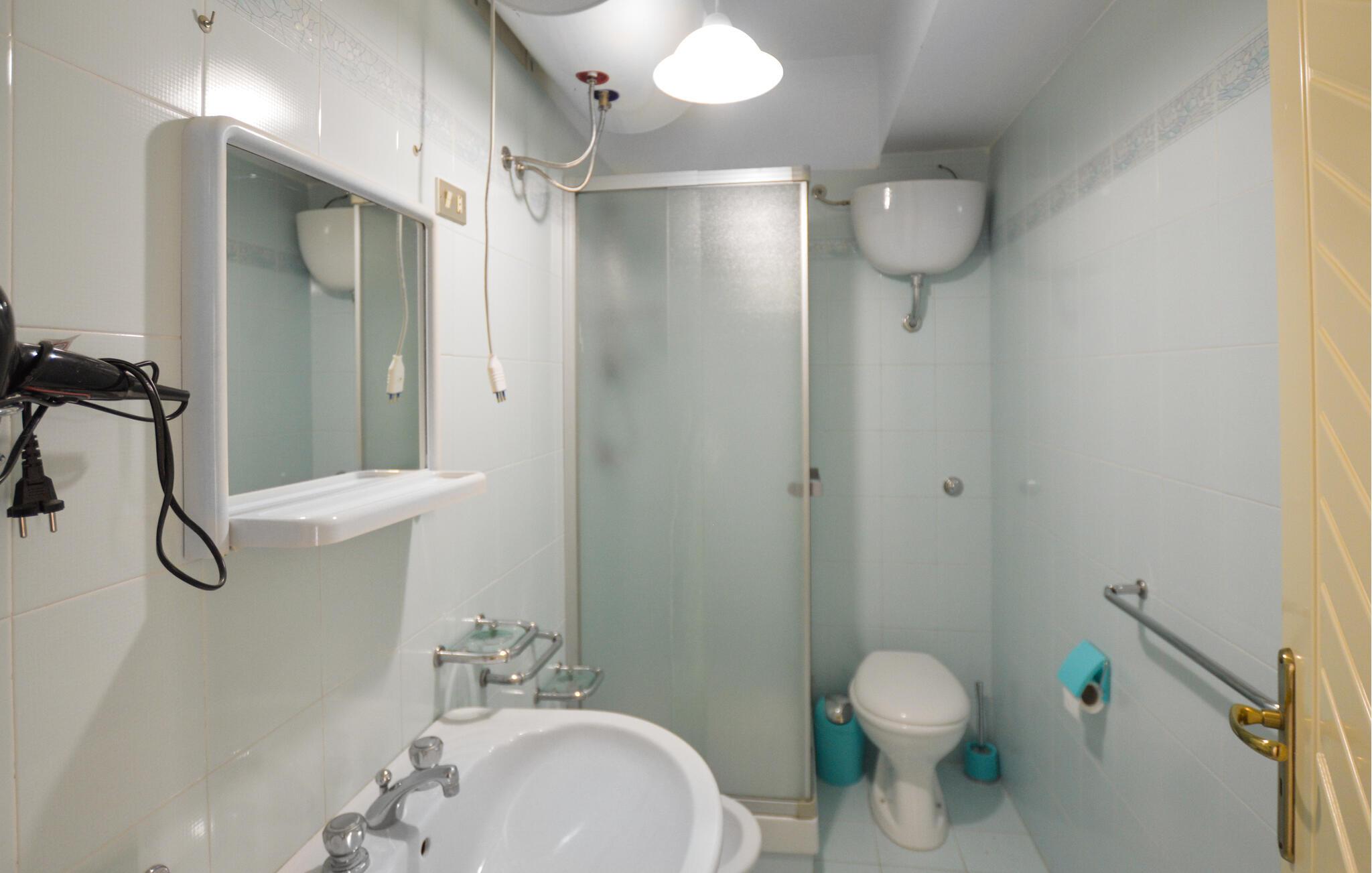 - WC mit warmem und kaltem Wasser, Dusche
