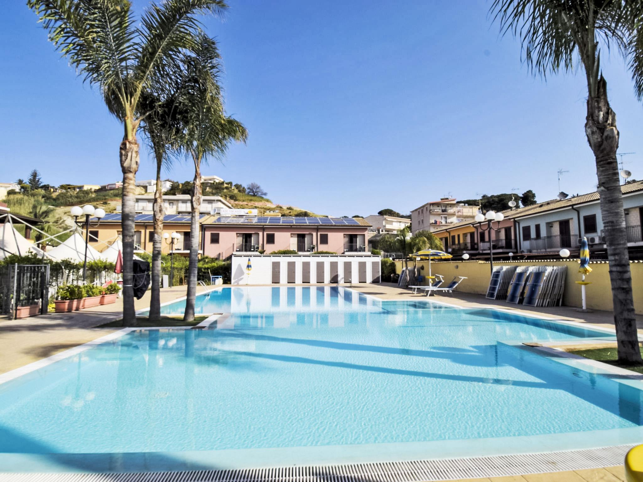 Please note: the bar and the restaurant are opened from May to September. Residence "L'Ancora". 19 houses in the residence. 3 km from the centre of Porto Empedocle, 11 km from the centre of Agrigento, from the sea, 10 m from the beach. For shared use: property 3'000 m2 (fenced), swimming pool (196 m2, depth 50 - 200 cm, seasonal availability: 01.Jun. - 30.Sep. pool opening hours: 09:00-19:00). Unconventional pool shape. Shower/WC in the pool area, garden furniture, pool maintenance by the owner/gardener. In the complex: reception, restaurant, bar, breakfast room, WiFi, table football, washing machine (extra) (for shared use), heating available only from 01.Dec. - 31.Mar.. Parking on the premises. Grocery 200 m, supermarket 3 km, restaurant, bar 5 m, bus stop 3 km, railway station "Agrigento" 18 km, ferry "Porto Empedocle" 3 km, sandy beach "Lido Azzurro" 10 m. Nearby attractions: Scala dei Turchi Patrimonio Unesco 3 km, Cattedrale di Sale di Realmonte 4.5 km, Casa Natale di Luigi Pirandello 6 km, Valle dei Templi di Agrigento 10 km, Piazza Armerina Villa Romana del Casale 102 km, Catania 176 km. Well-known lakes can easily be reached: Lago Arancio 78 km. Please note: car recommended.