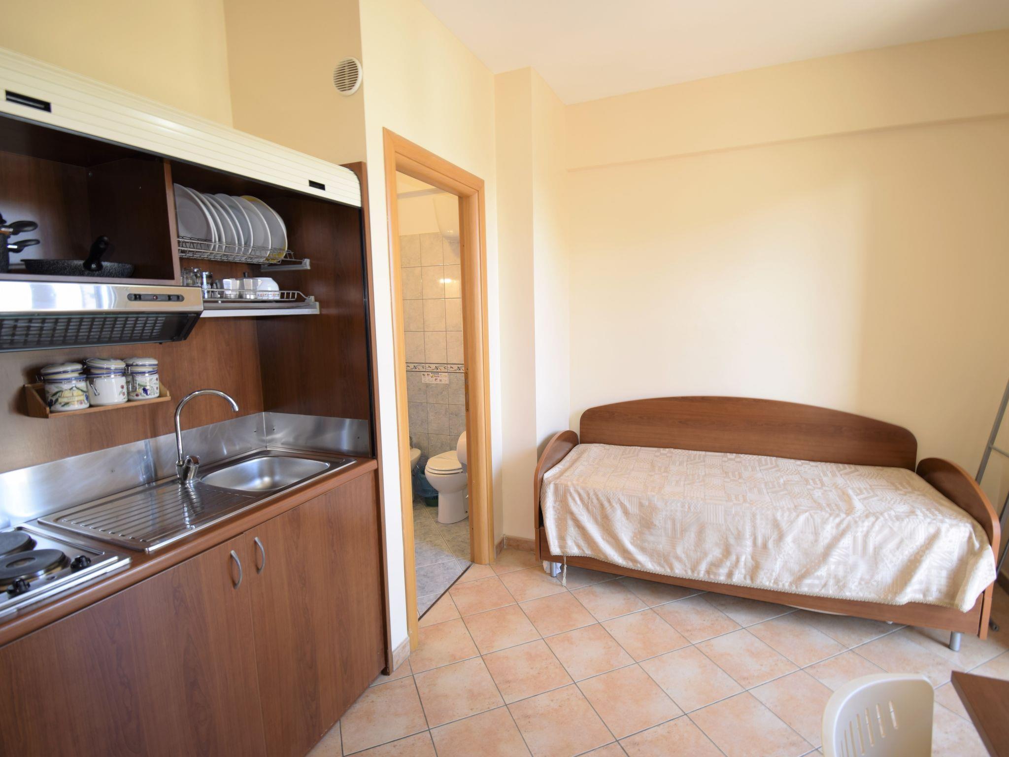 2-room apartment 30 m2 on 1st floor. Simple and practical furnishings: living/dining room with 1 x 2 bunk beds, TV (flat screen). Exit to the balcony. 1 double bedroom with air conditioning and forced-air heating. Small kitchenette (2 hot plates). Shower/bidet/WC. Heating, forced-air heating. Heating available only from 01.12. to 31.03. Small balcony 3 m2. Balcony furniture. Facilities: hair dryer. Internet (WiFi, free). Parking (1 car). Please note: fridge without freezer. Smoke alarm, fire extinguisher. IT084028B45ZYBHTGH