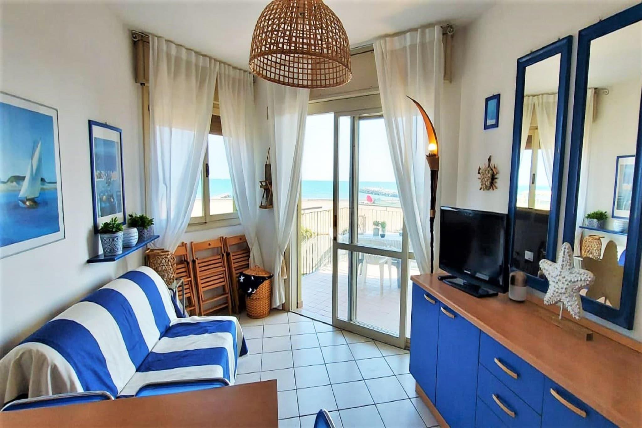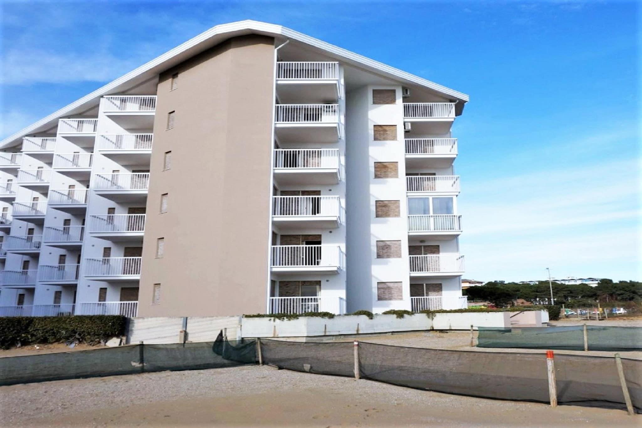 Experience this bright and practical apartment set on the first floor of a residential complex on the beach, which offers a relaxed base for a seaside stay, just moments from the beach and the lively coastal atmosphere of Porto Santa Margherita. The living room is comfortably arranged with a double sofa bed, TV, dining table, and a welcoming seating area where you can unwind after a day outdoors. The open kitchen, fitted with a hob, microwave, and fridge-freezer, allows you to prepare simple meals and enjoy flexible dining during your stay. The bedroom features a comfortable double bed, while the fully equipped bathroom ensures everyday convenience. A private terrace extends the living space outdoors, offering a pleasant spot for morning coffee, quiet reading time, or evening relaxation in the fresh sea air. Air conditioning keeps the apartment cool during warm summer days, and private parking adds to the ease of your stay. With the beach, promenade, cafés, and restaurants all within easy reach, the location makes it simple to enjoy everything this coastal resort has to offer. From here, you can spend your days on wide sandy beaches, explore cycling paths along the coast, enjoy water sports, or take a short trip to the colourful historic centre of Caorle, offering beautiful walking routes and beautiful beaches, such as the Spiaggia Tartaruga, a stone's throw away. Cozy bars and restaurants are within walking distance, and spend a day in Venice. The border with neighbouring Slovenia is also not far away, which means that a holiday in 2 countries is possible. Many other interesting tourist attractions worth exploring in the region.