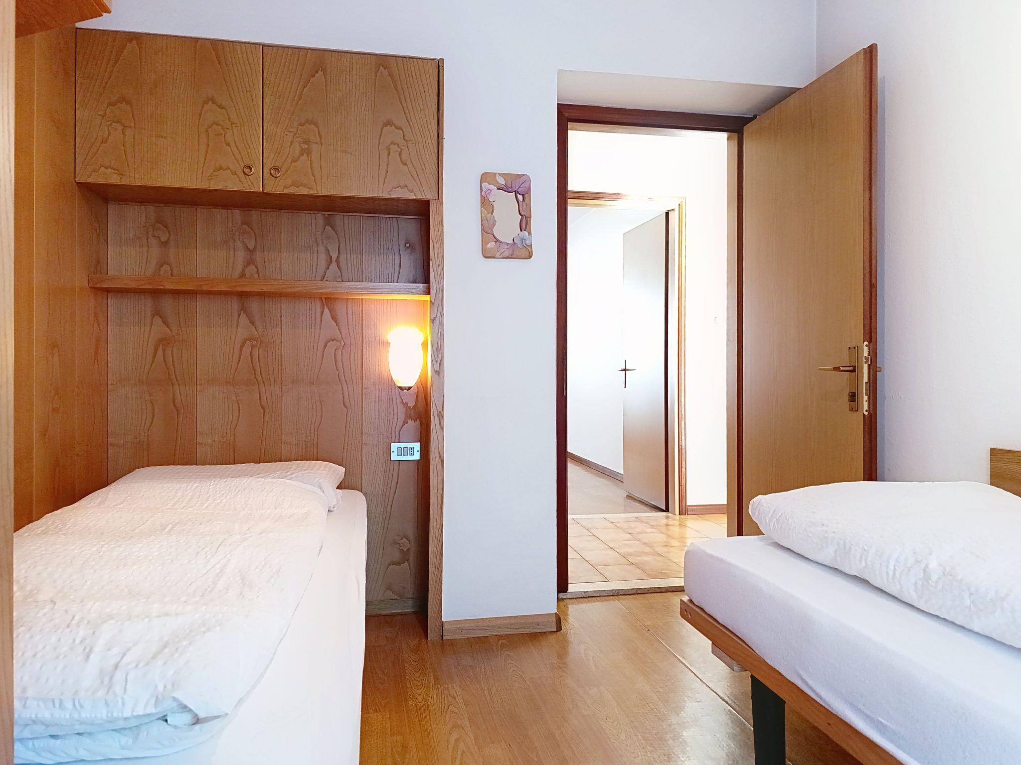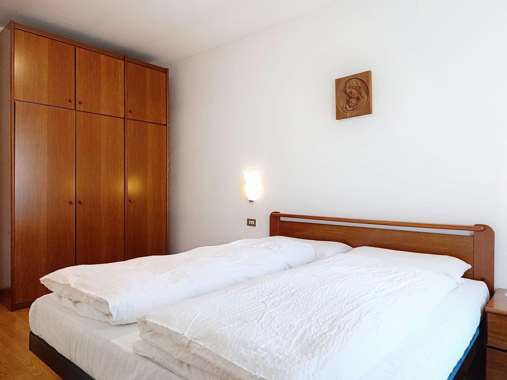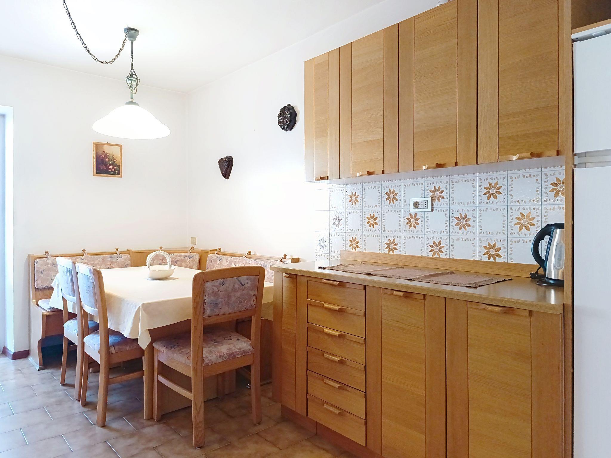 "Cesa Marco", 5-room apartment on 1st floor. Simple furnishings: entrance hall. 1 room with 1 bed. Exit to the terrace. 1 room with 1 double bed. Exit to the balcony. 1 room with 2 beds. Exit to the terrace. 1 room with 1 double bed. Exit to the terrace. Living room with Scandinavian wood stove (only for decoration), TV. Exit to the balcony. Kitchen (4 hot plates, oven, dishwasher) with dining table. Exit to the balcony. Bath/bidet/WC, shower/bidet/WC. Heating available only from 01.12. to 01.05. Very beautiful view of the mountains and the town. Facilities: washing machine, hair dryer. Internet (WiFi, free). Parking (2 cars). Please note: non-smokers only. Smoke alarm, fire extinguisher, no lift. IT022250C28KAV6VGC