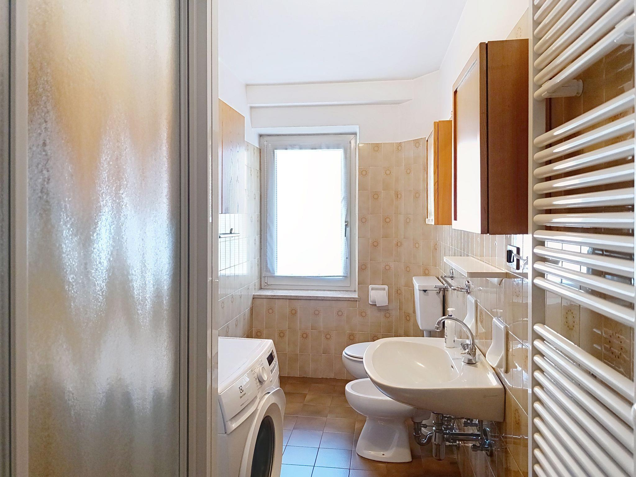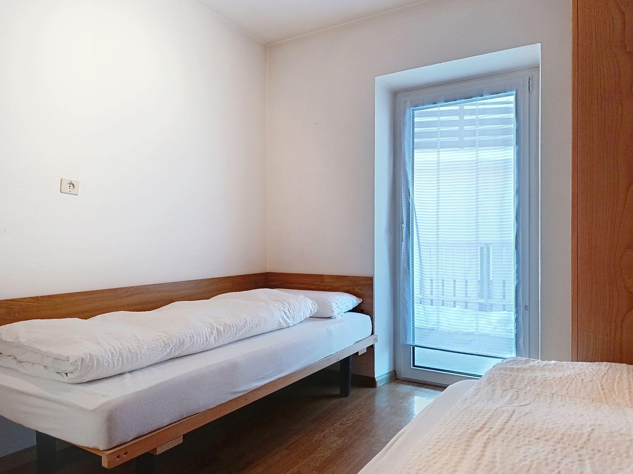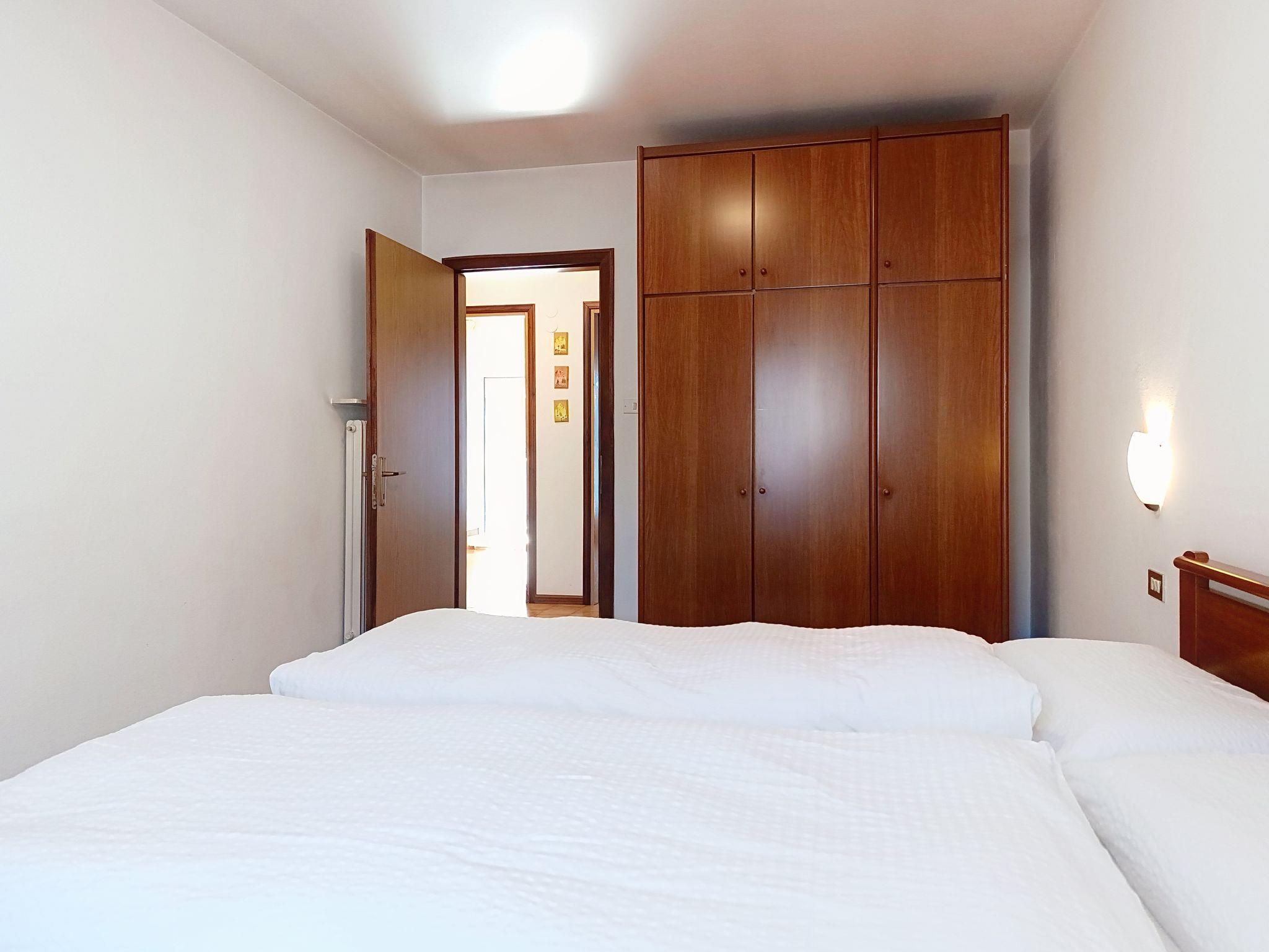 "Cesa Marco", 5-room apartment on 1st floor. Simple furnishings: entrance hall. 1 room with 1 bed. Exit to the terrace. 1 room with 1 double bed. Exit to the balcony. 1 room with 2 beds. Exit to the terrace. 1 room with 1 double bed. Exit to the terrace. Living room with Scandinavian wood stove (only for decoration), TV. Exit to the balcony. Kitchen (4 hot plates, oven, dishwasher) with dining table. Exit to the balcony. Bath/bidet/WC, shower/bidet/WC. Heating available only from 01.12. to 01.05. Very beautiful view of the mountains and the town. Facilities: washing machine, hair dryer. Internet (WiFi, free). Parking (2 cars). Please note: non-smokers only. Smoke alarm, fire extinguisher, no lift. IT022250C28KAV6VGC