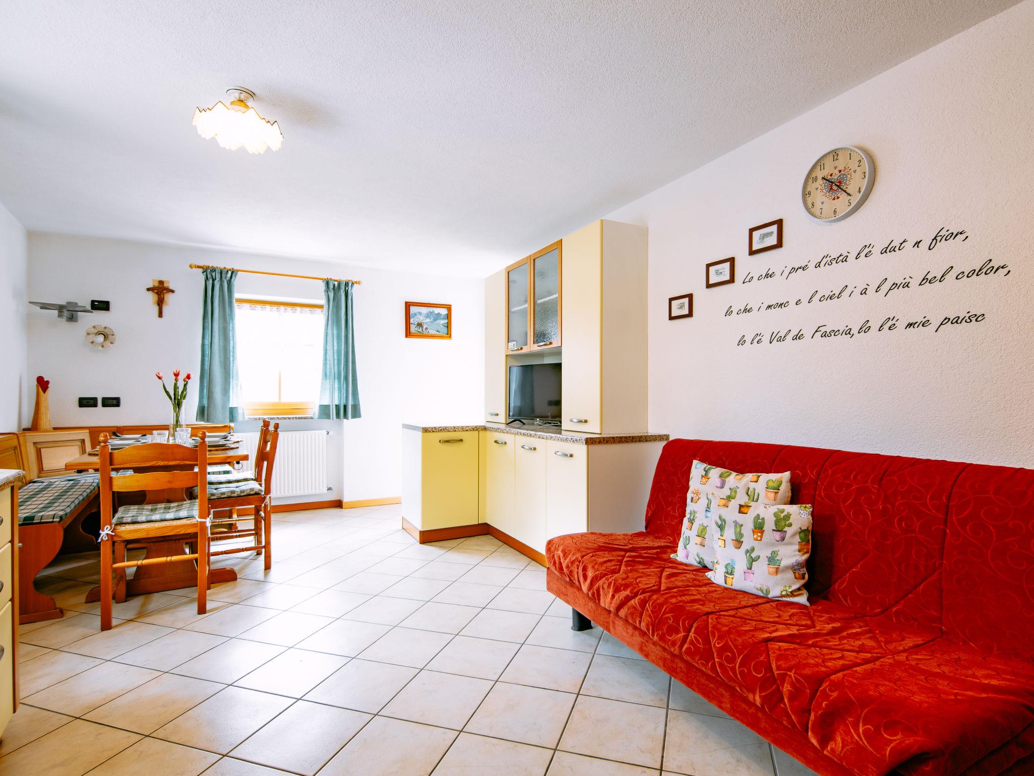 Muncion 5 km from Pozza di Fassa: Apartment house "El Tobia", 1'472 m a.s.l.. In the district of Muncion 5.5 km from the centre of Pozza di Fassa, 3.3 km from the centre of Pera di Fassa, 45 km from the centre of Bolzano. In the house: storage room for skis, ski boot dryer. In Winter: please take snow chains. Grocery 3.3 km, supermarket 5.5 km, bus stop "Pera di Fassa" 3 km, indoor swimming pool 10 km. Golf course (9 hole) 16 km, walking paths from the house 5 m, chair lift 3.3 km, gondola lift 5.2 km. Hiking paths: Gardeccia 3 km, Sasso Lungo, Campitello 8 km.
