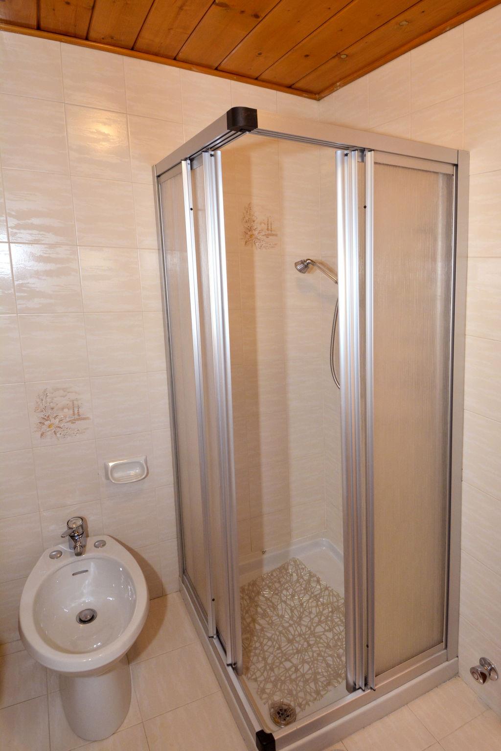 "Deluca", 4-room apartment 90 m2 on 3rd floor. Bright, practical and wooden furniture furnishings: living/dining room with dining table and satellite TV. 1 room with 2 beds (80 cm). 1 room with 2 beds (80 cm), hand-basin. 1 room with 3 beds (80 cm), shower/WC. Kitchen (oven, dishwasher, 4 ceramic glass hob hotplates, kettle, freezer, electric coffee machine) with small dining table. Exit to the balcony. Bath/WC. Oil heating. 2 balconies. Balcony furniture, deck chairs (2). Beautiful view of the mountains. Facilities: washing machine, baby cot. Internet (WiFi, free). Please note: non-smokers only. IT022250C2RY39TAMV