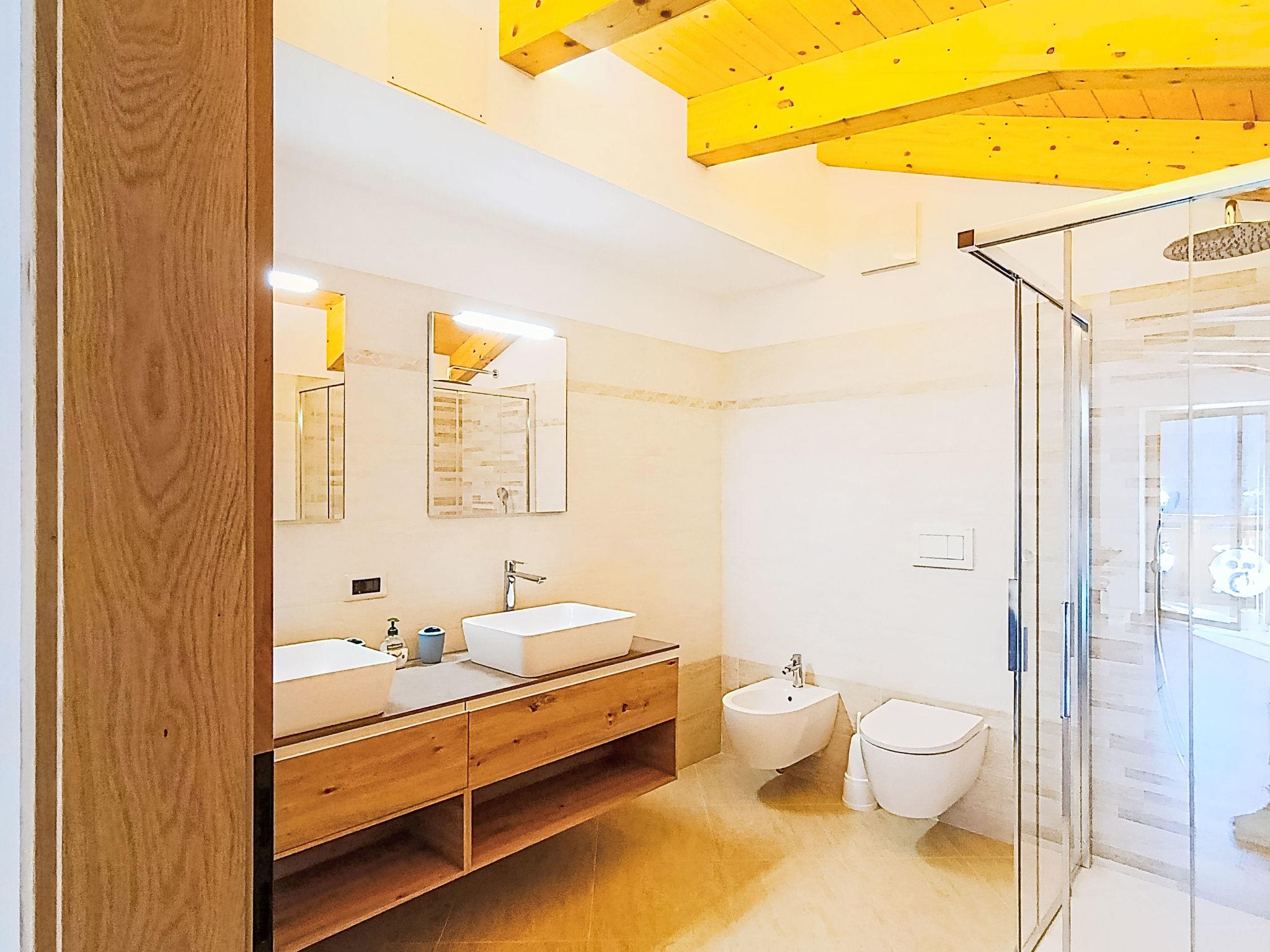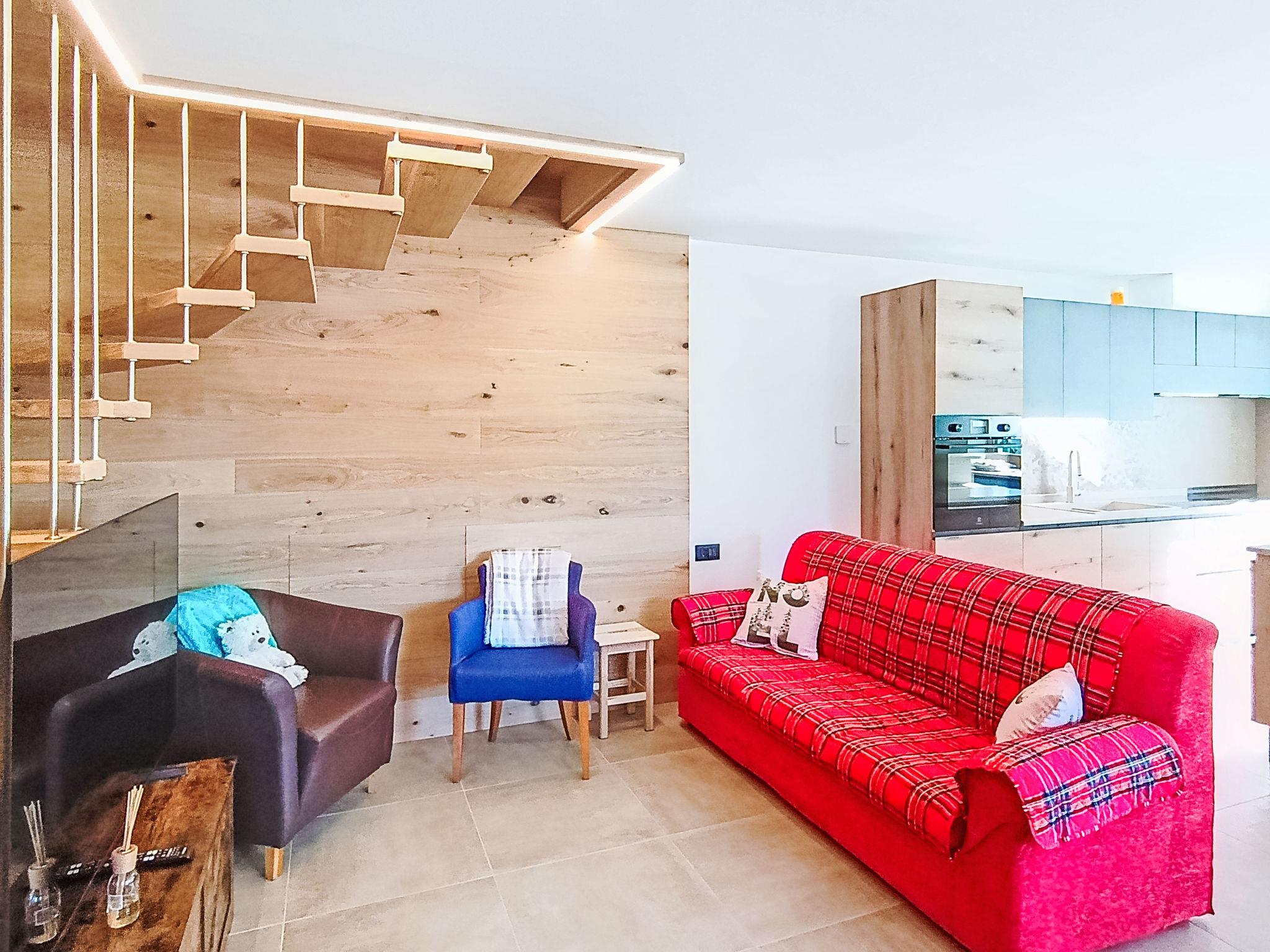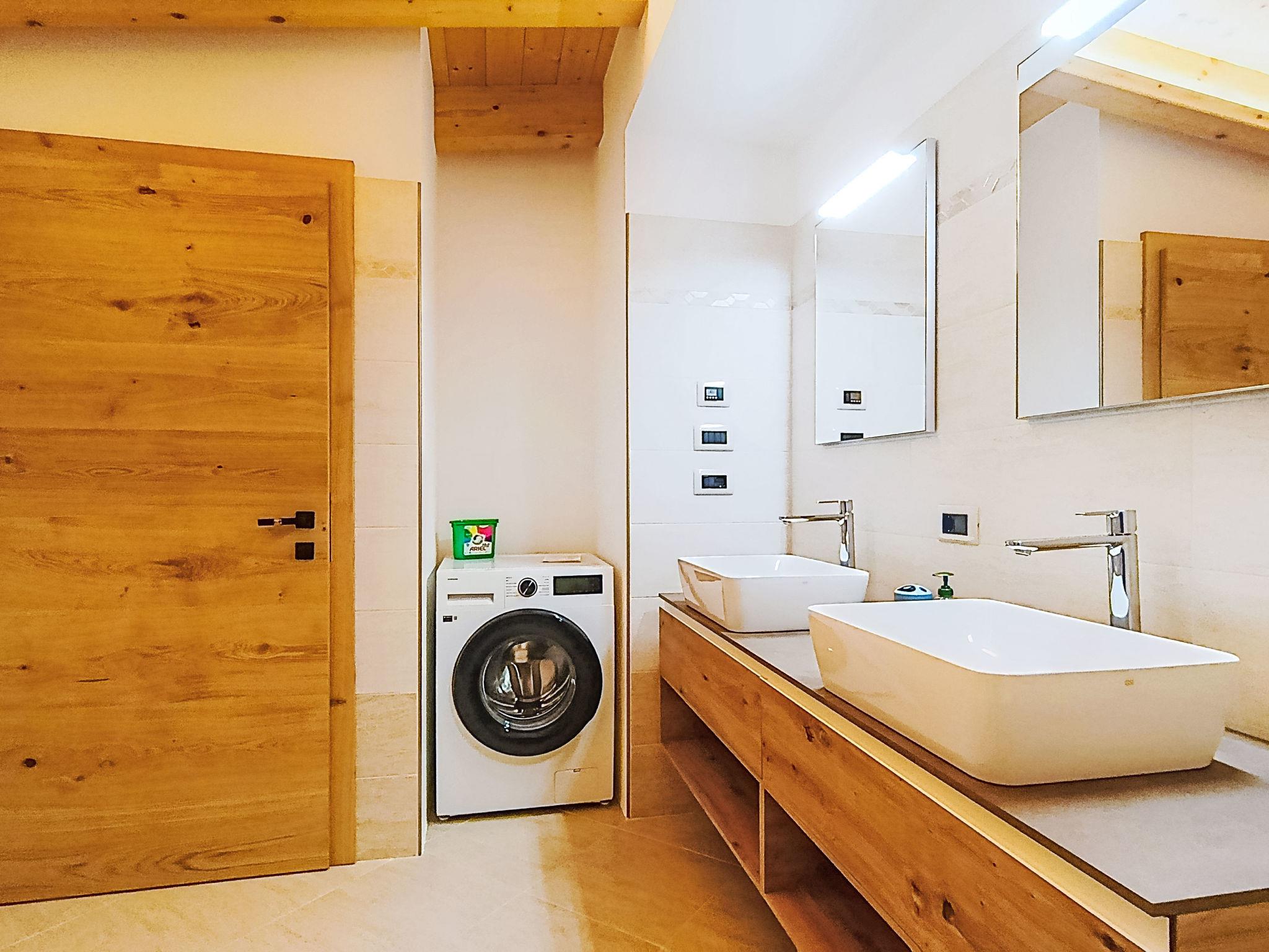 "Valeria", 5-room maisonette 130 m2. Spacious and bright, modern and cosy furnishings: living/dining room with TV. Exit to the balcony. Large kitchen (oven, dishwasher, 5 induction hot plates, toaster, kettle, freezer) with bar. Exit to the balcony. Bathroom. Floor heating. Upper floor: 1 room with 2 beds. Exit to the balcony. 1 room with 2 beds. 1 double bedroom. 1 double bedroom with hand-basin and shower/bidet/WC. Shower/bidet/WC, double hand-basin. 2 large balconies. Terrace furniture, sitting area. Very beautiful panoramic view of the mountains and the ski run. Facilities: washing machine, iron, baby cot for up to 2 year olds, hair dryer. Internet (WiFi, free). Parking (2 cars). Please note: non-smokers only. Fire extinguisher, no lift. IT022250C2VQXVLD8J