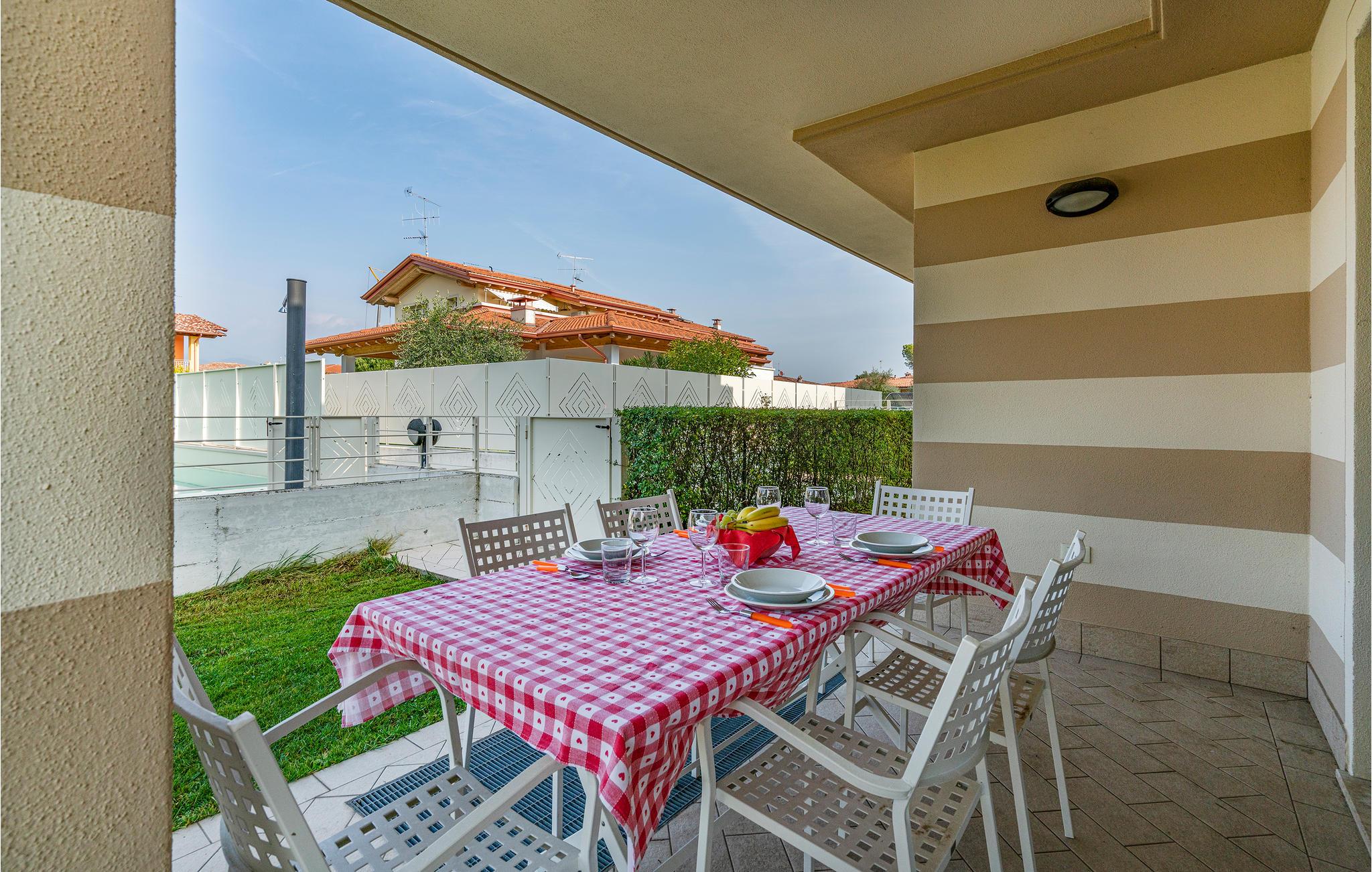 Wenn Sie auf der Suche nach Entspannung und Genießen im Norditalien sind, wäre diese Ferienwohnung im Erdgeschoss vielleicht etwas für Sie. Unweit vom südwestlichen Ufer des Gardasees gelegen bietet diese Wohnung Ihnen einen idealen Ort für eine entspannende und ruhige Zeit für Sie und Ihre Familie. Die Wohnung ist in hellen und roten Farben eingerichtet. Vom Wohnzimmer aus gelangen Sie auf die Terrasse, wo Sie am Esstisch gemeinsam frühstücken können. Zum Haus gehören ein eingezäunter Garten und einer Außenpool, wo Sie ins Wasser springen oder sich nebenan auf den Liegestühlen entspannen können.
