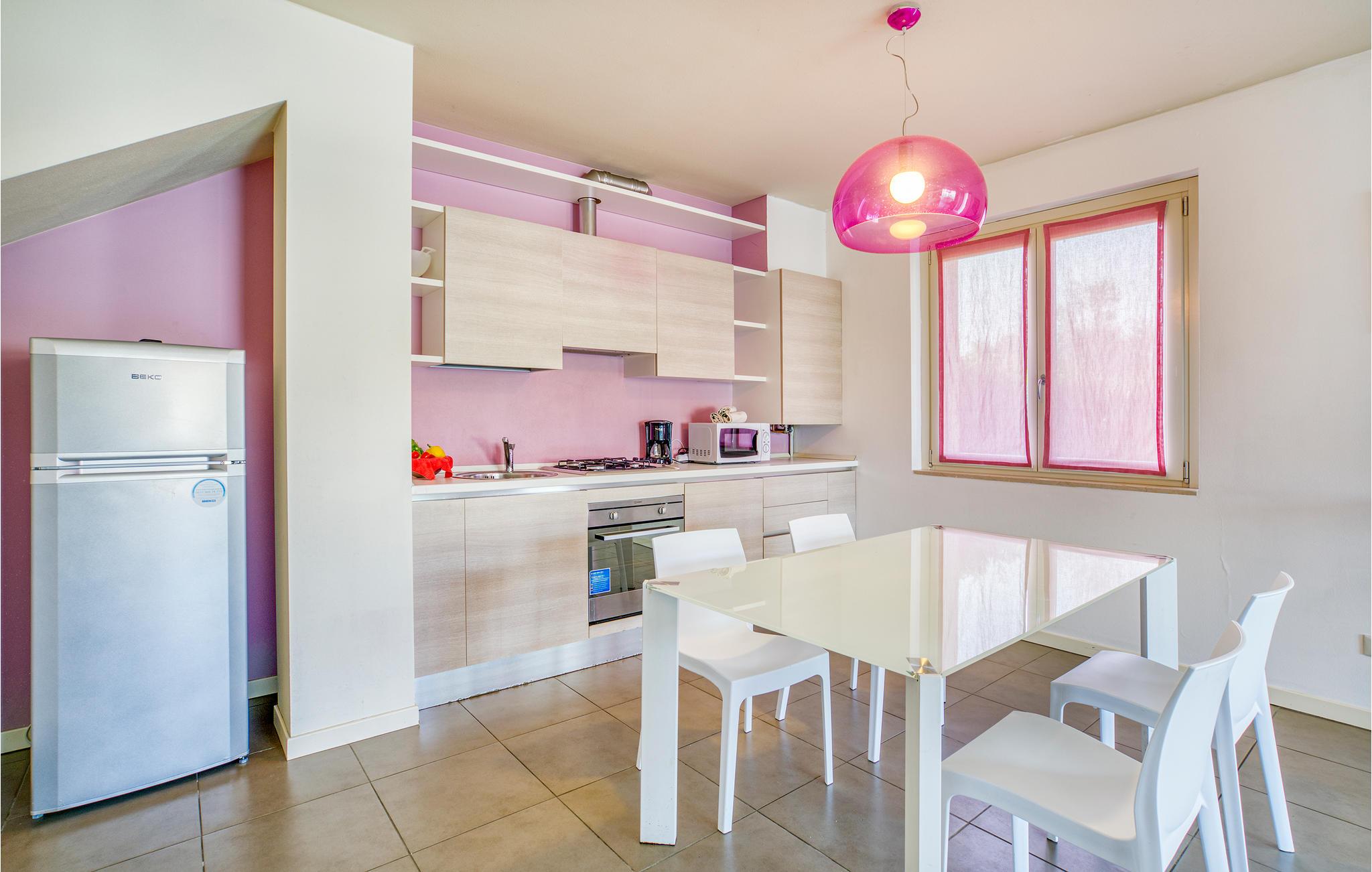 Wenn Sie auf der Suche nach Entspannung und Genießen im Norditalien sind, wäre diese Ferienwohnung vielleicht etwas für Sie. Unweit vom südwestlichen Ufer des Gardasees gelegen bietet diese Wohnung Ihnen einen idealen Ort für eine entspannende und ruhige Zeit für Sie und Ihre Familie. Die Wohnung liegt im Erdgeschoss und ist in hellen und roten Farben eingerichtet. Vom Wohnzimmer aus gelangen Sie auf die Terrasse, wo Sie am Esstisch gemeinsam frühstücken können. Zum Haus gehören ein eingezäunter Garten und einer Außenpool, wo Sie ins Wasser springen oder sich nebenan auf den Liegestühlen entspannen können.