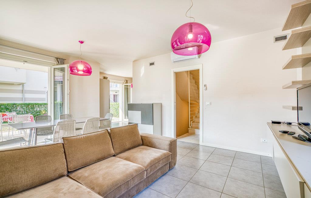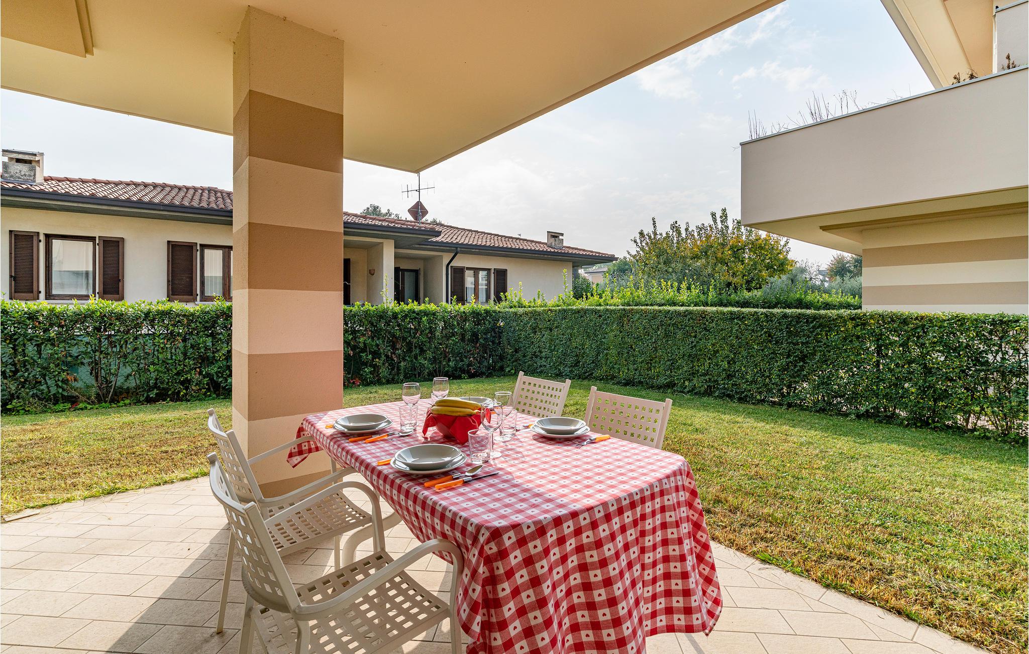 Wenn Sie auf der Suche nach Entspannung und Genießen im Norditalien sind, wäre diese Ferienwohnung vielleicht etwas für Sie. Unweit vom südwestlichen Ufer des Gardasees gelegen bietet diese Wohnung Ihnen einen idealen Ort für eine entspannende und ruhige Zeit für Sie und Ihre Familie. Die geräumige, zweistöckige Wohnung ist in hellen Farben eingerichtet und eines der Badezimmer hat Badewanne. Vom Wohnzimmer aus gelangen Sie auf die Terrasse, wo Sie am Esstisch auf der kleinen Terrasse gemeinsam frühstücken können. Auf der ersten Etage haben Sie außerdem Zugang zu einem Balkon. Zum Haus gehören ein eingezäunter Garten und einer gemeinsame Außenpool, wo Sie ins Wasser springen oder sich nebenan auf den Liegestühlen entspannen können.