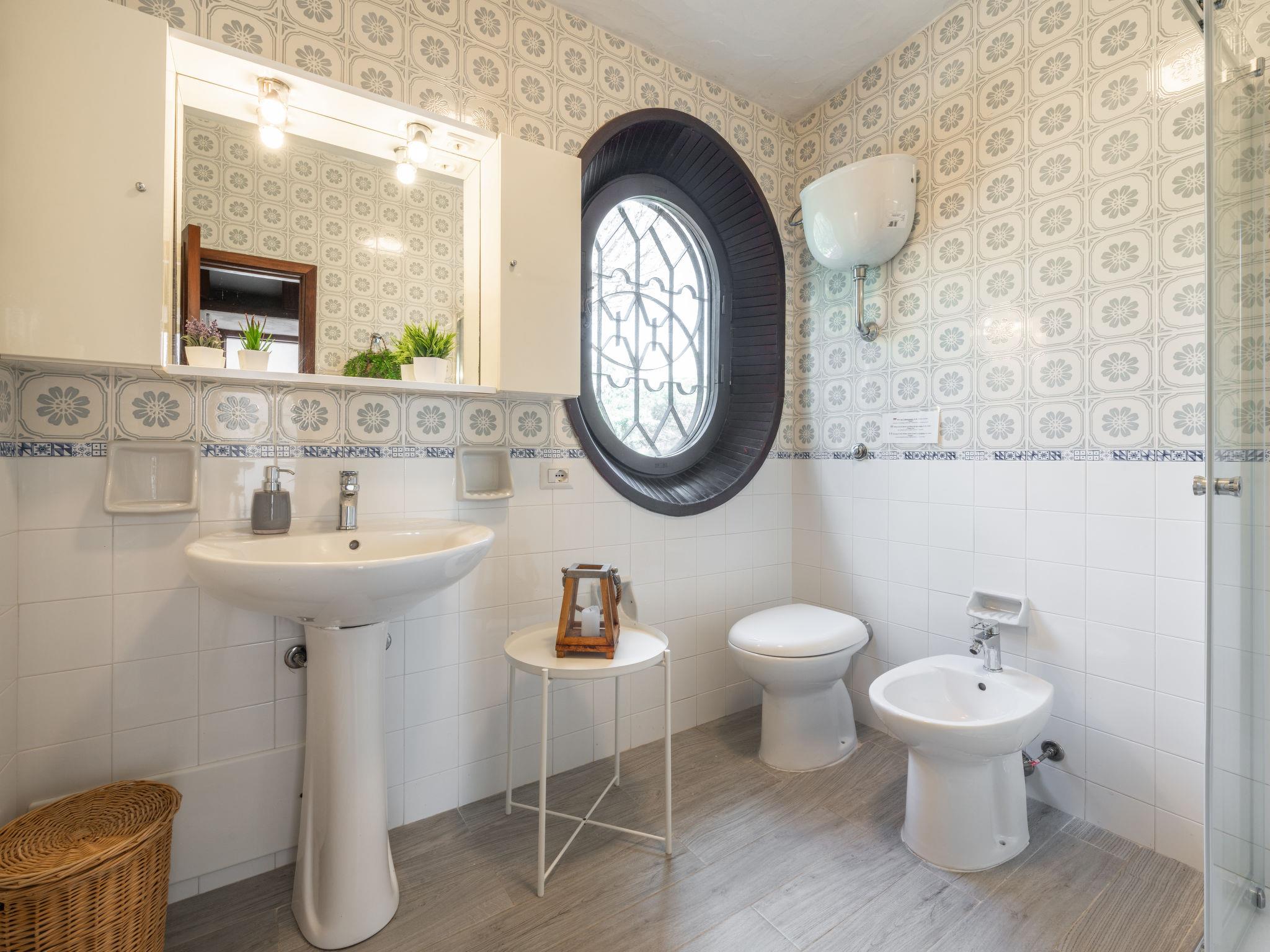 "Villa Grete", 6-room villa 140 m2 on 2 levels. Comfortable and tasteful furnishings: living/dining room with satellite TV. Exit to the terrace. 2 rooms, each room with 1 double bed with air conditioning. Kitchen (4 hot plates, oven, dishwasher, kettle, microwave, electric coffee machine). Bath/bidet/WC, shower/bidet/WC. On the lower ground floor: 2 rooms, each room with 2 beds and air conditioning. Shower/bidet/WC. Terrace 10 m2, roofed, large patio roofed, garden. Balcony furniture, barbecue, deck chairs. Marvellous view of the sea. Facilities: washing machine, children's high chair, baby cot, hair dryer. Internet (WiFi). Parking. IT092050C2000T9675
