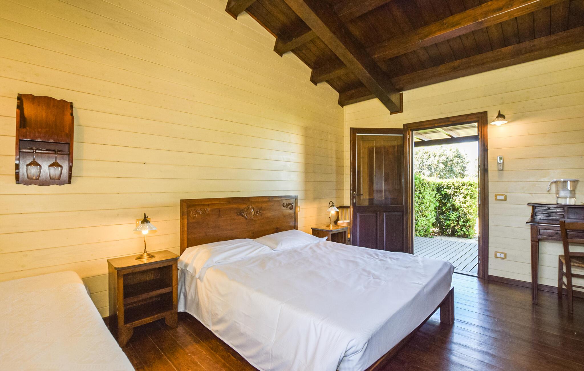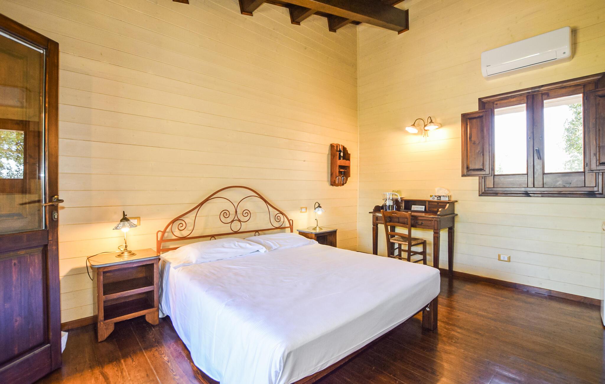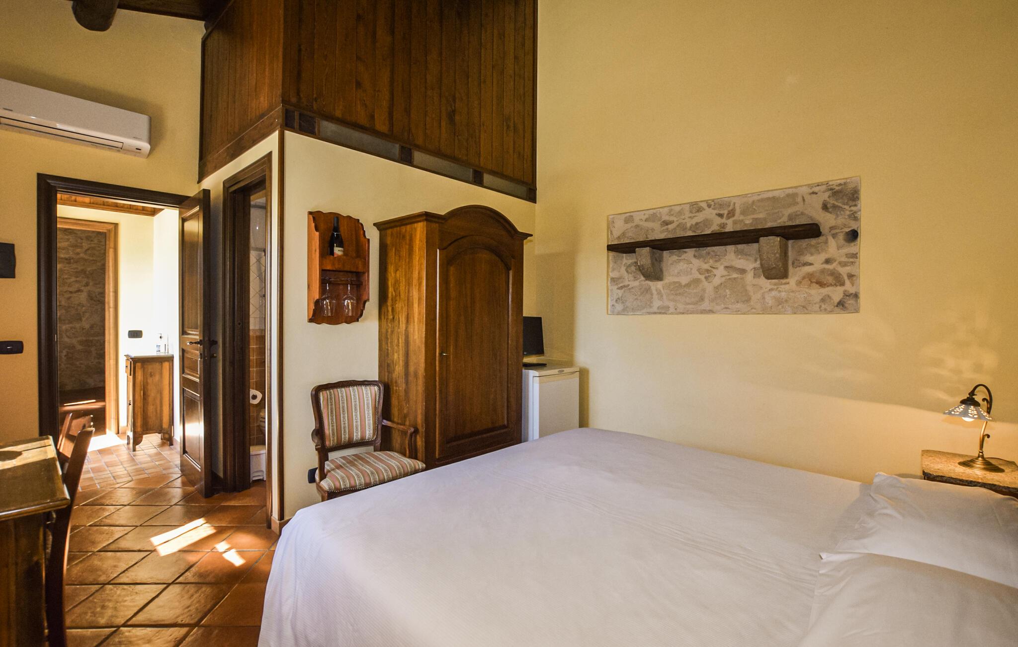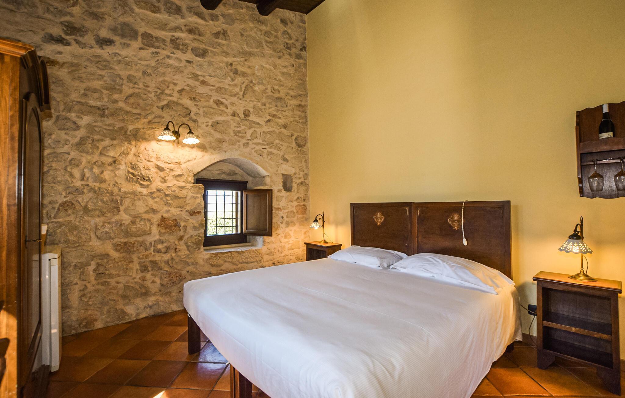 Das großzügige Anwesen bietet Ihnen eine einladende Atmosphäre mit modernen Annehmlichkeiten und traditionellen Details. Genießen Sie die stilvollen Innenräume, die durch rustikale Eleganz und gemütliche Einrichtung bestechen. Das Zusammenspiel aus weichen Farben, Steinmauern und dunklen Holzdecken und -türen schafft ein Ambiente, in dem Sie sich wohlfühlen werden und Ihre Urlaubstage genießen können.