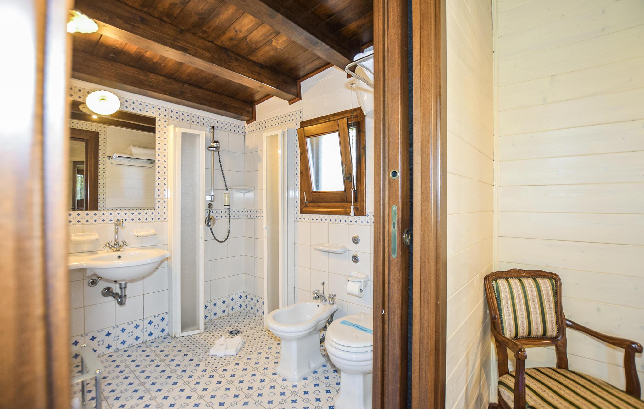 - WC mit warmem und kaltem Wasser, Dusche