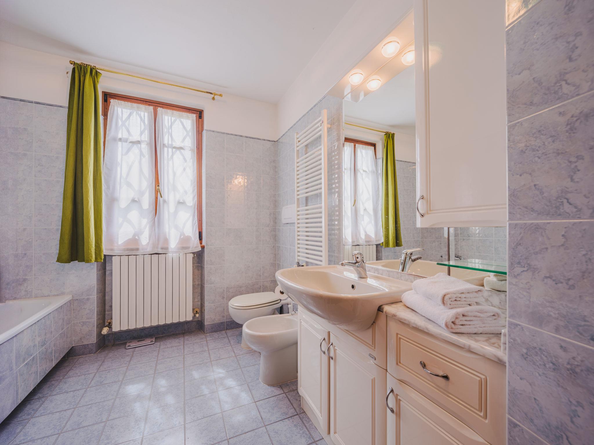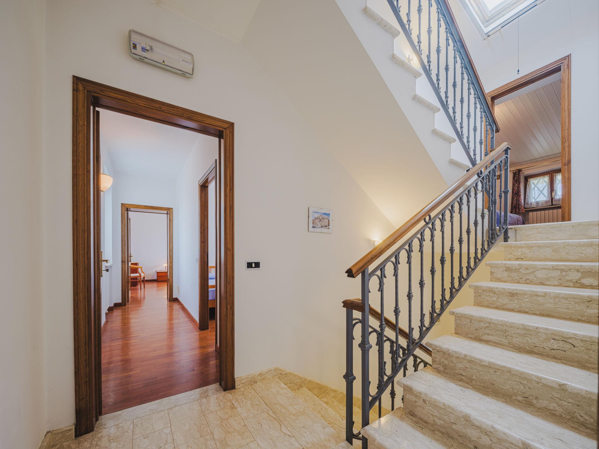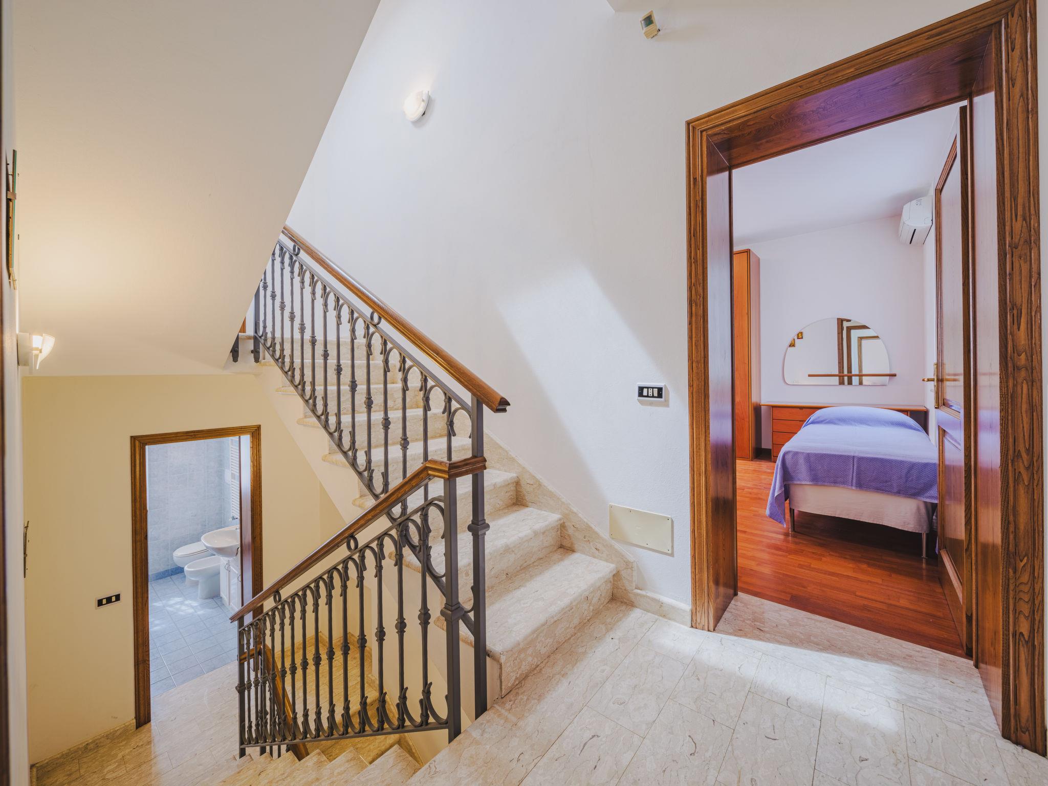 "Villa Giuliana", 6-room villa 300 m2 on 2 levels, on the ground floor. Spacious and bright, very practical and comfortable furnishings: living/dining room with TV (flat screen). Exit to the garden, to the veranda. Studio with 1 double sofabed and kitchen corner. Exit to the garden, to the veranda. Luggage room with shower/bidet/WC. Exit to the garden, to the veranda. Kitchen (oven, dishwasher, Gas stove, 4 gas rings, microwave, electric coffee machine) with dining table. Exit to the garden, to the veranda. Shower/bidet/WC. Gas heating. Heating available only from 01.11. to 15.04. Upper floor: 1 large room with 1 bed, 1 double bed and air conditioning. 1 room with 2 beds and air conditioning. 1 double bedroom with air conditioning. 1 small room with 1 bed and air conditioning. 2 showers/bidet/WC. Terrace furniture, conservatory, sitting area. Beautiful view of the garden. Facilities: washing machine, iron, hair dryer. Internet (WiFi, free). Parking (fenced 2 cars). Suitable for families. IT046028C2NPJWRJJ7